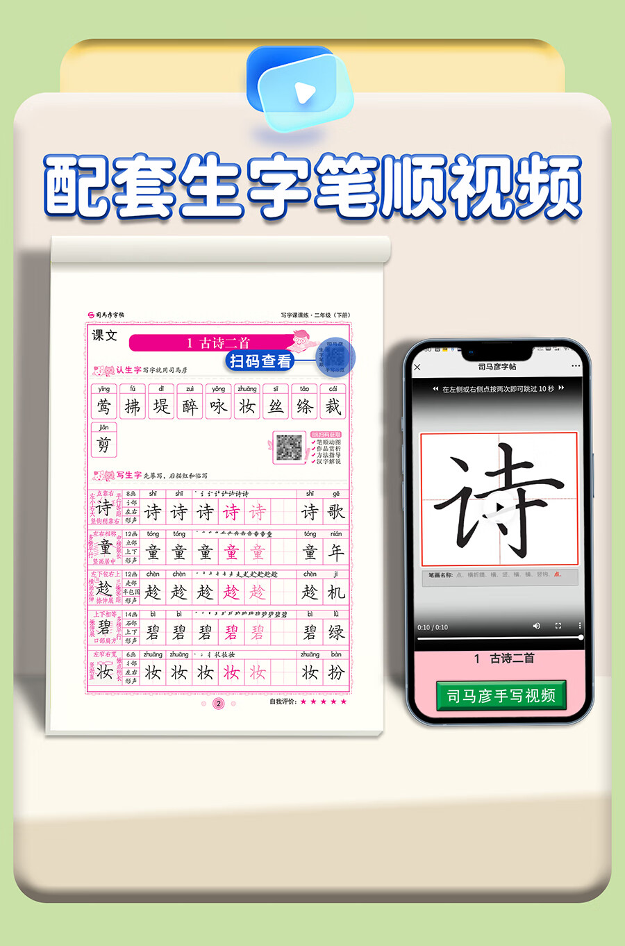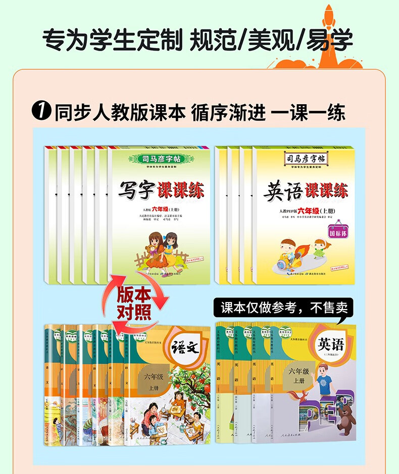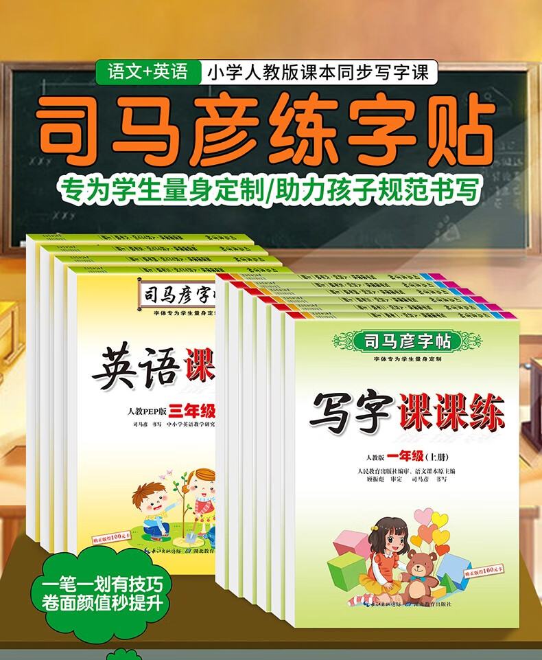 司马彦字帖同步课课练人教版上下册同步课本小学生1-6年级楷书一二三四五六年级上册下册语文英语练字帖部编人教版旗舰店写字课课练临摹PEP版同步课本练字本 一年级上册语文