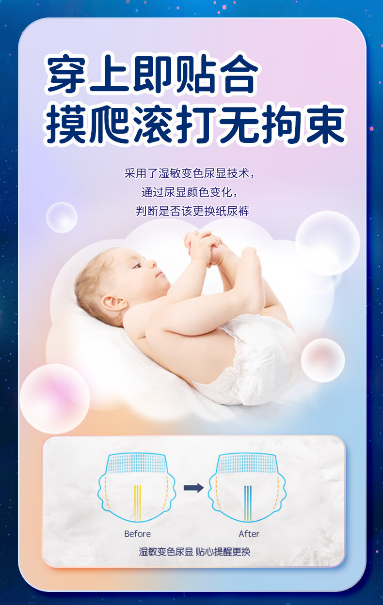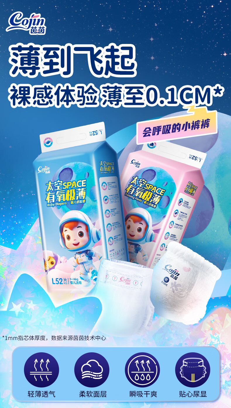 茵茵太空有氧极薄纸尿裤婴儿超薄透气干爽尿不湿 夏季不闷热 L6片-试用装