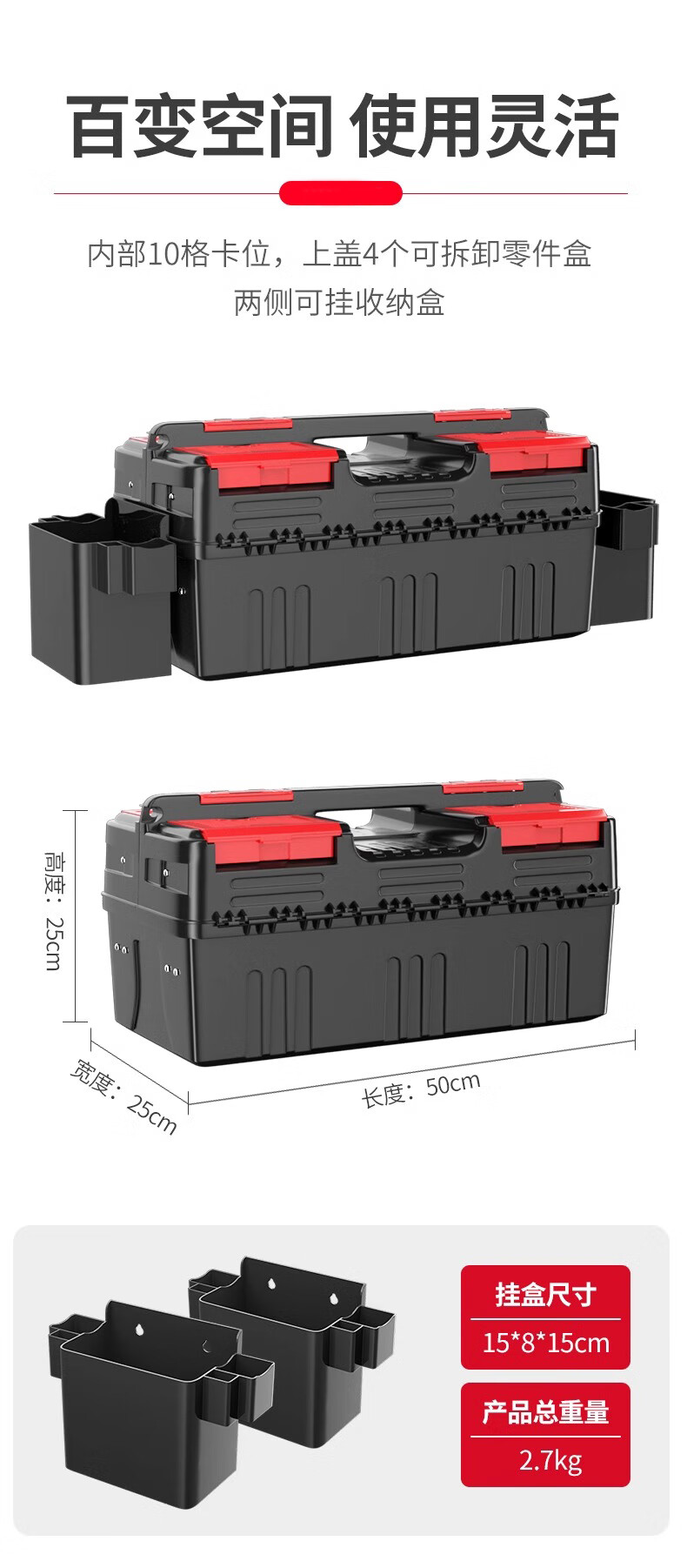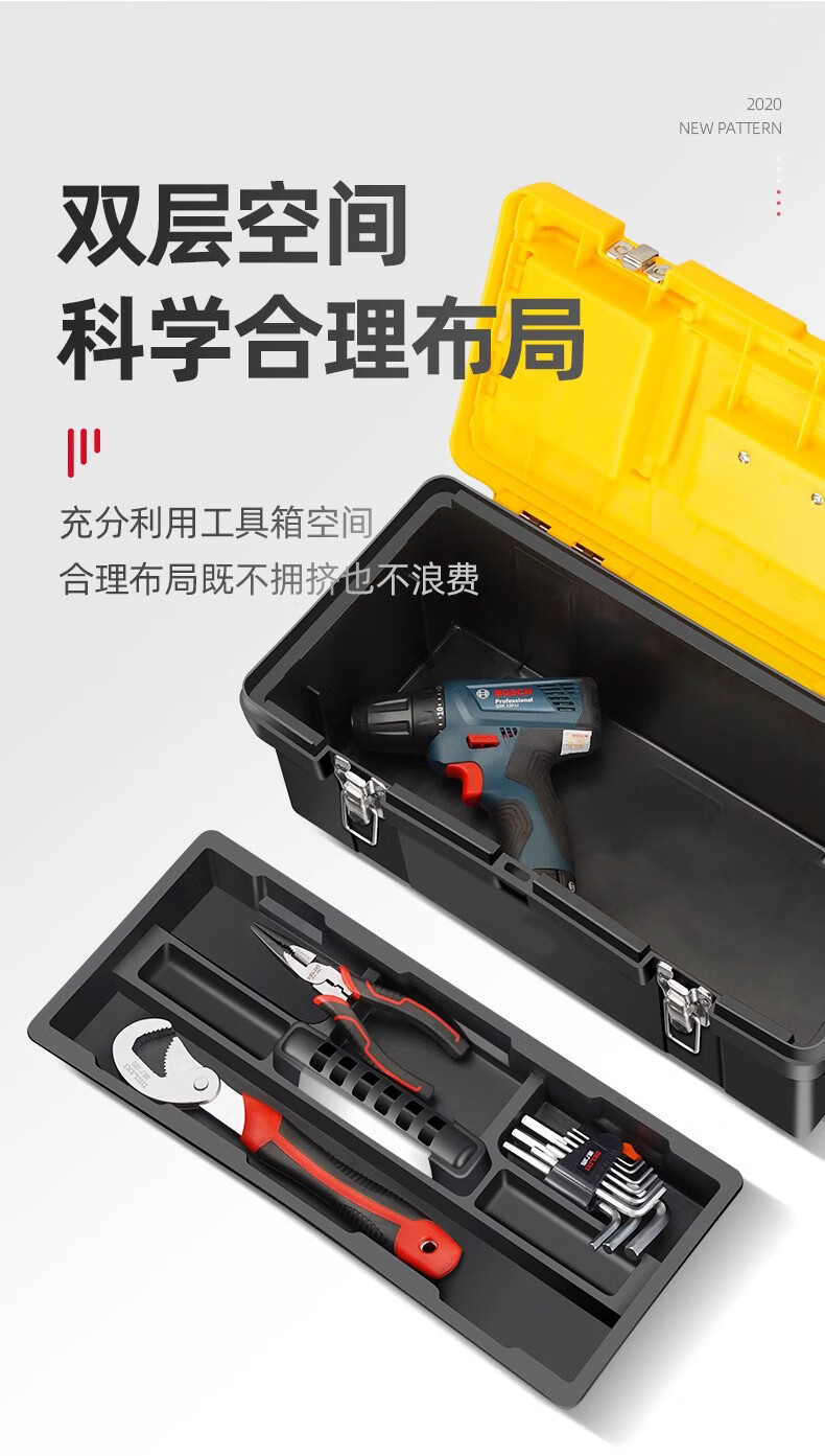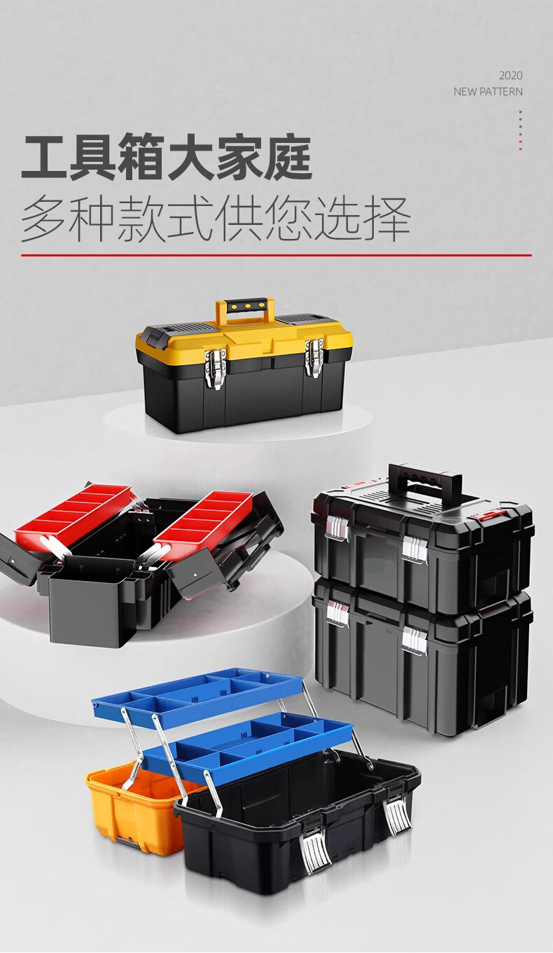 工具箱收纳盒五金大号工业级家用手提式车载多功能维修电工 20寸经典双层加厚款-全新料