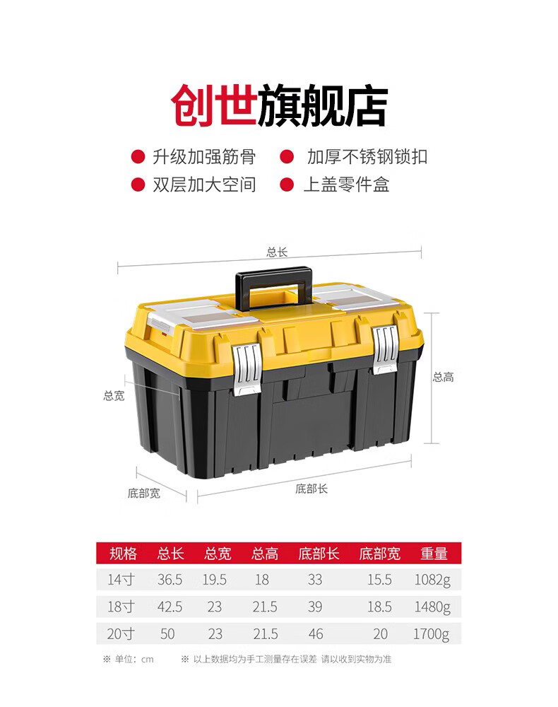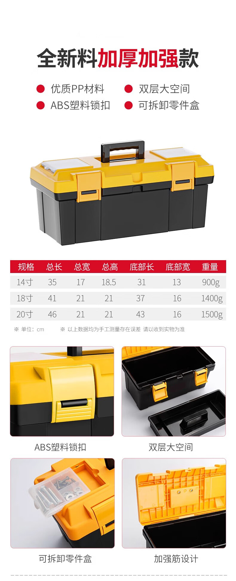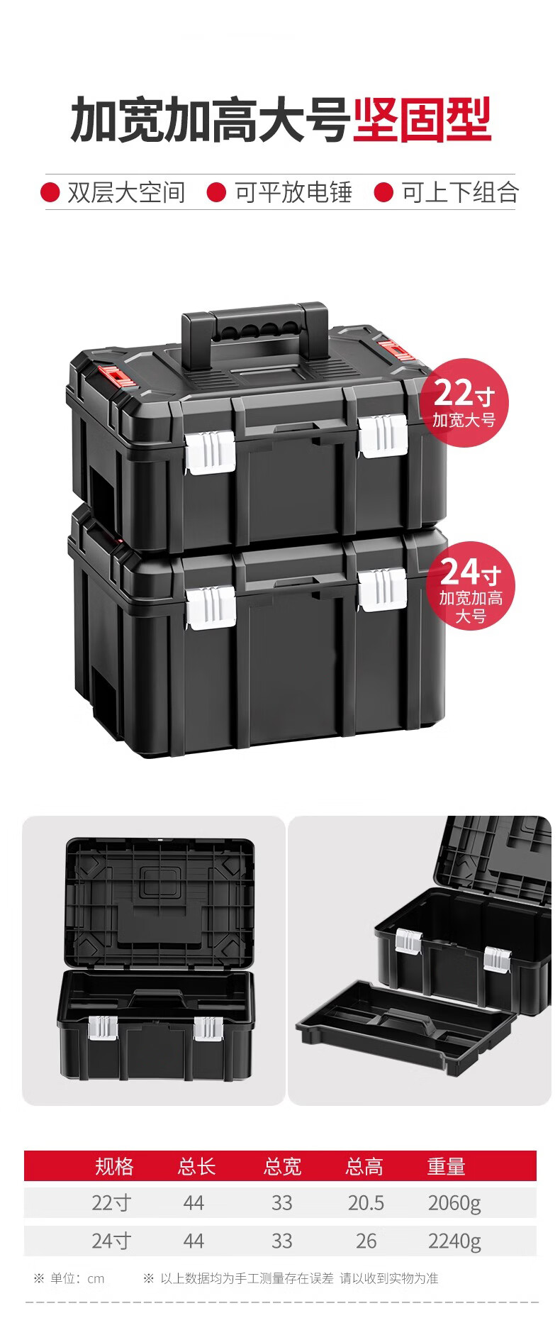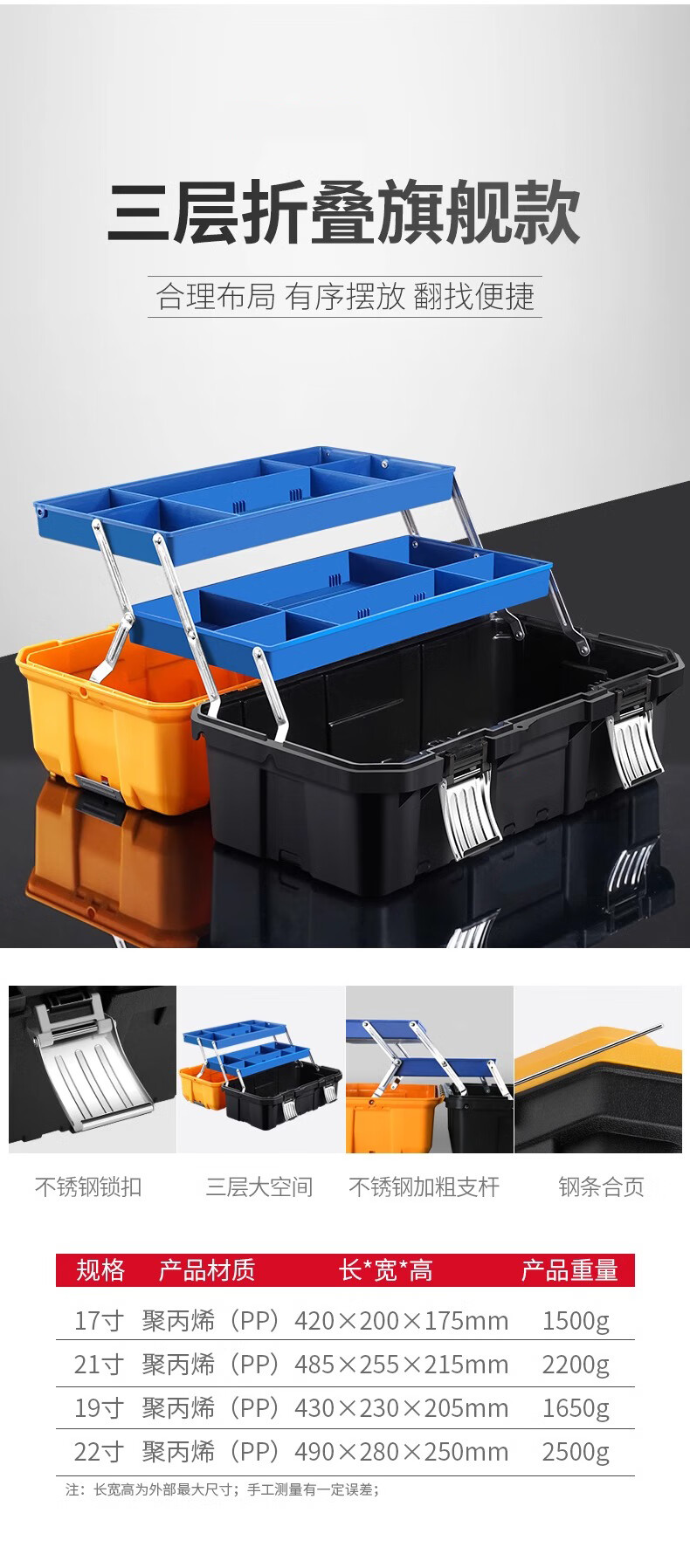 工具箱收纳盒五金大号工业级家用手提式车载多功能维修电工 20寸经典双层加厚款-全新料