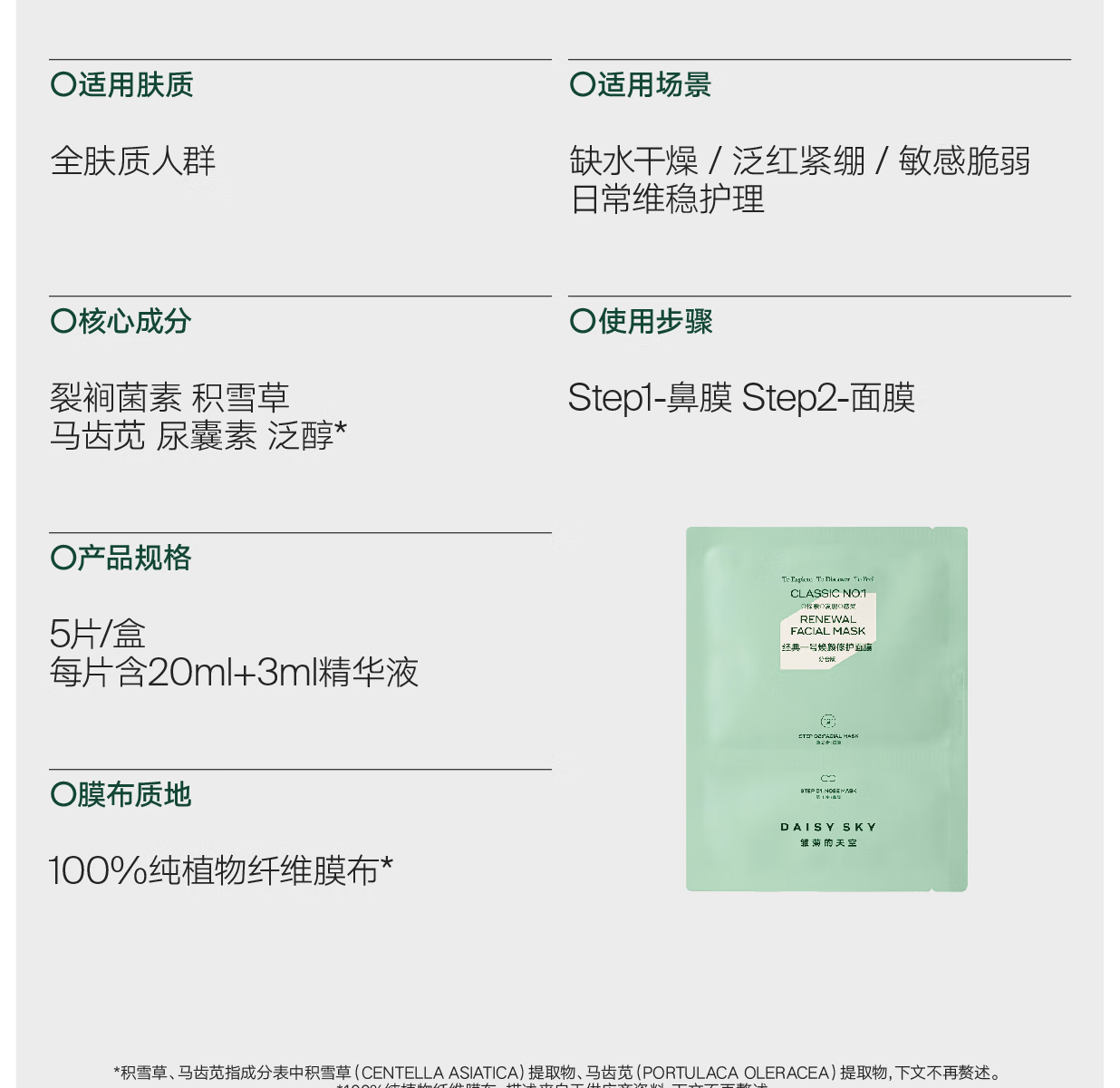 雏菊的天空经典一号焕颜修护面膜4盒装保湿舒缓修护面膜贴