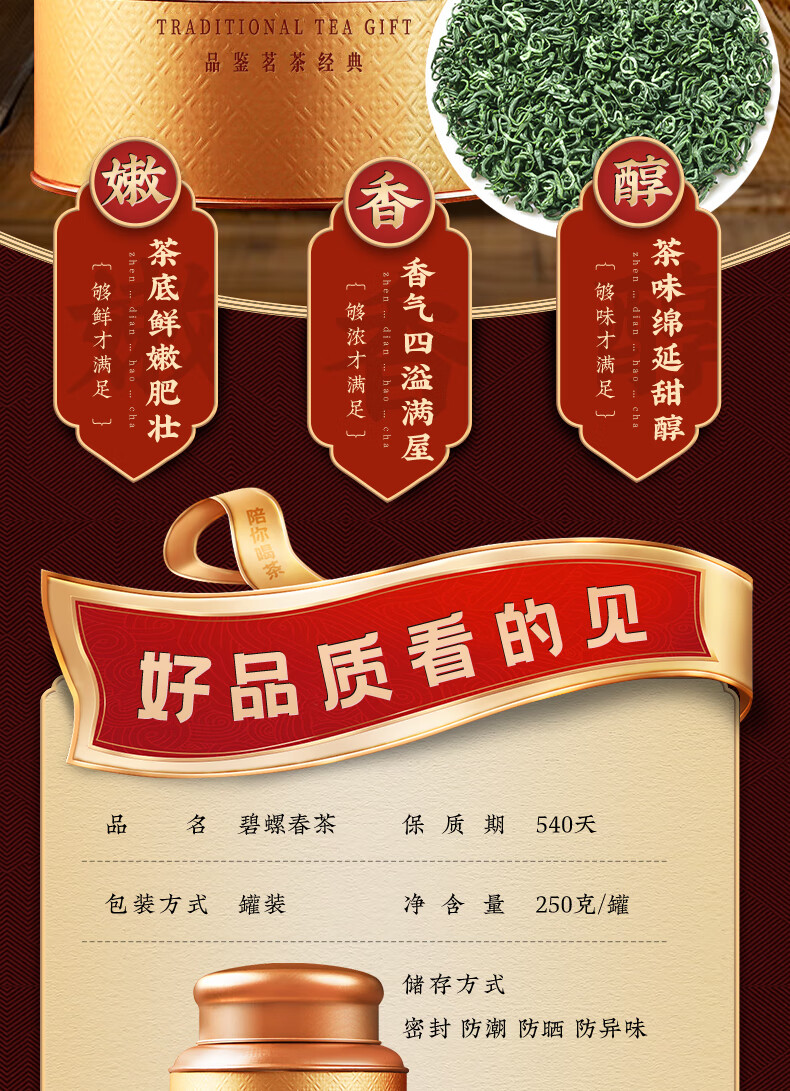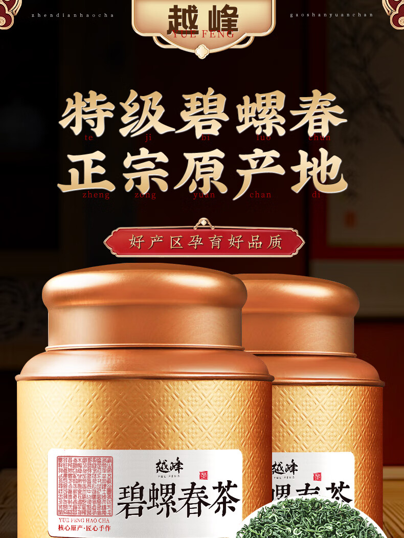越峰特级碧螺春绿茶正宗雨前花果香嫩芽浓香茶叶自己喝送礼罐装250g