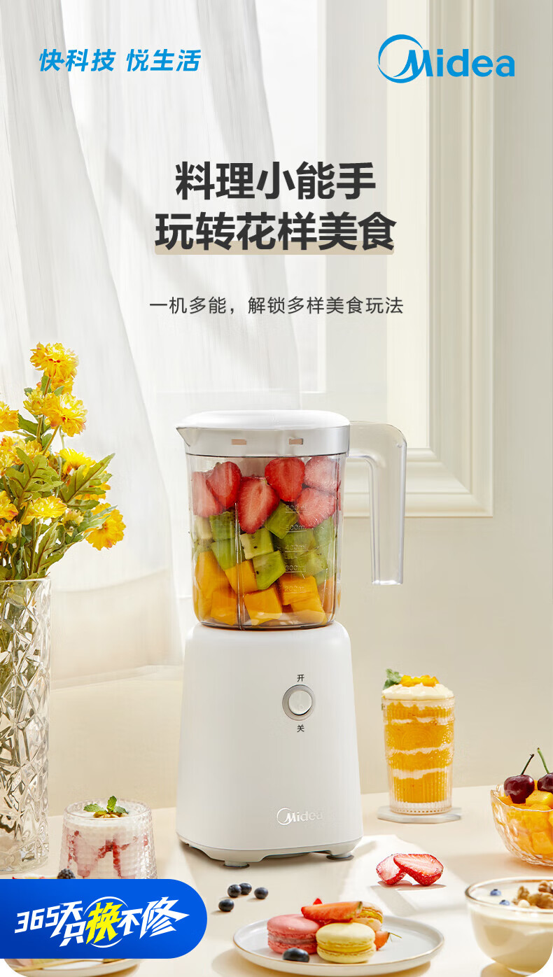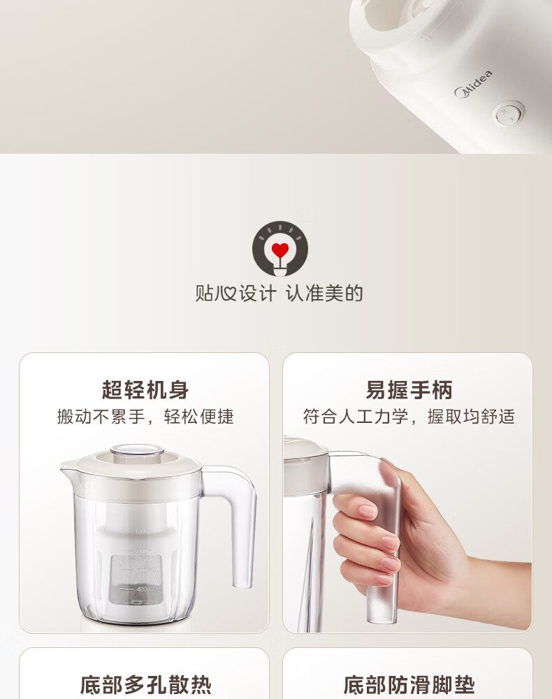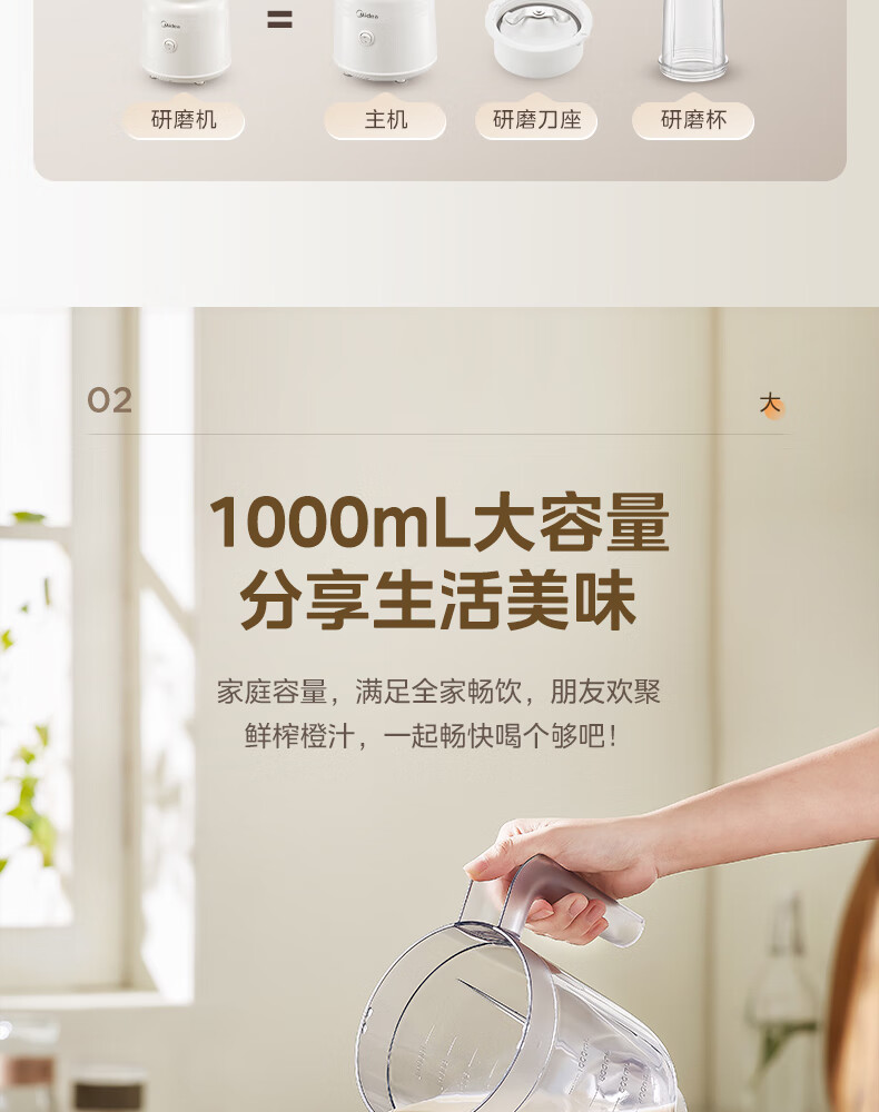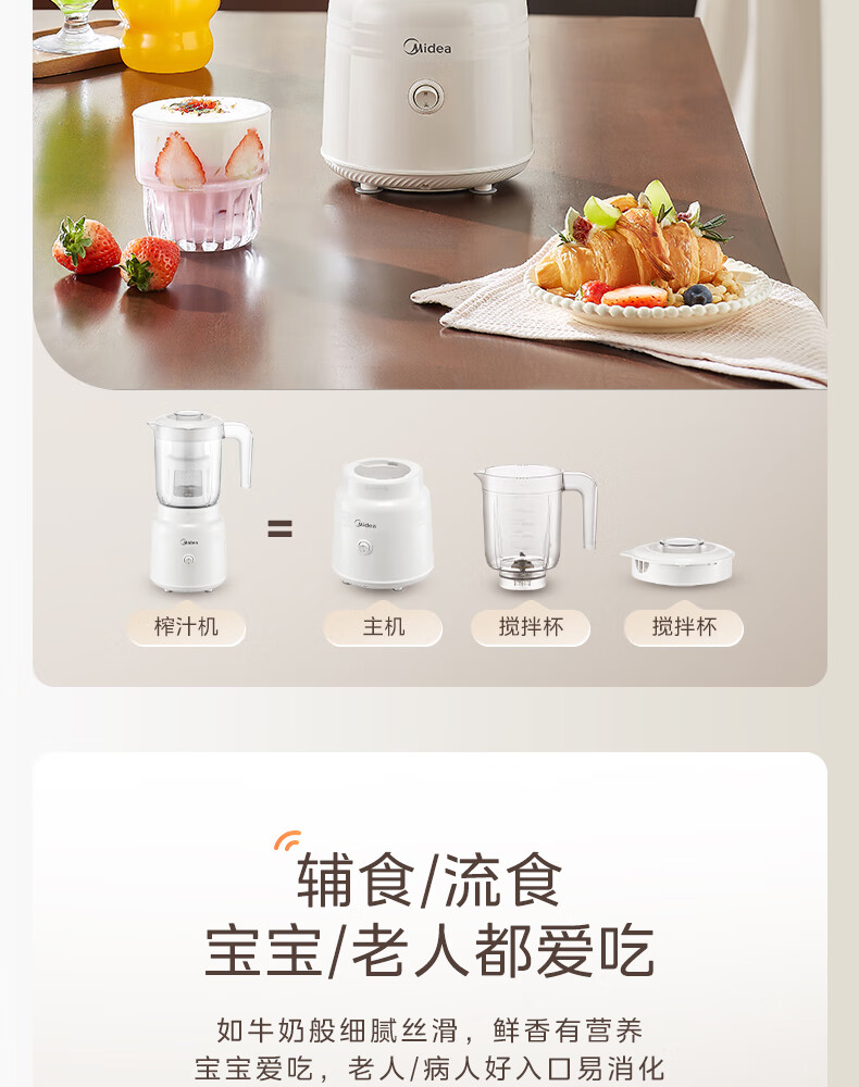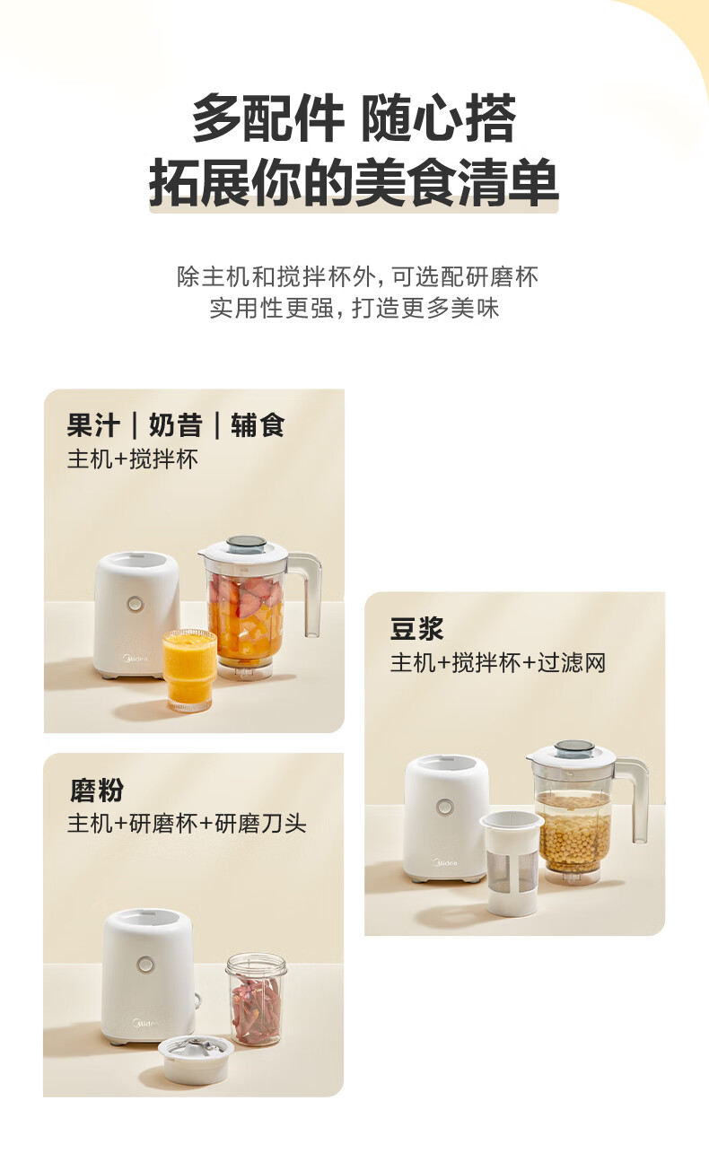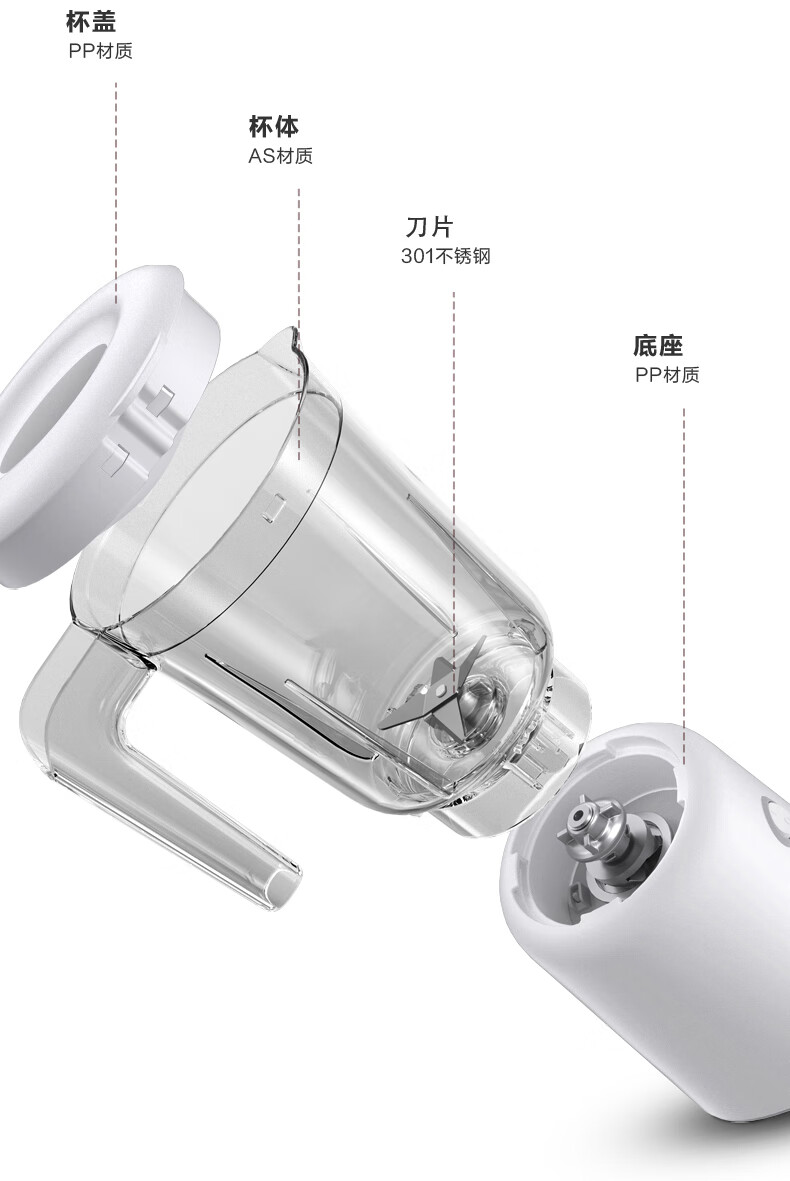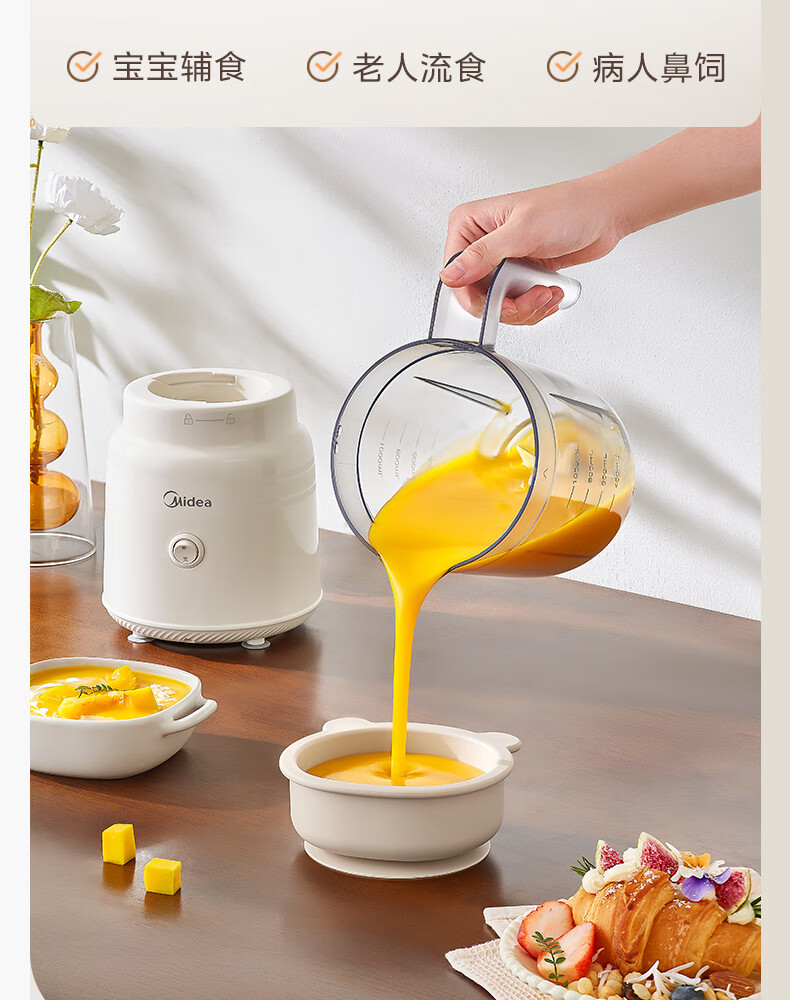 美的(Midea)榨汁机便携式料理机大容量多功能小米榨汁杯小米榨汁机水果汁机养生料理机婴儿辅食机 【四叶立体刀】MJ-WBL2501B