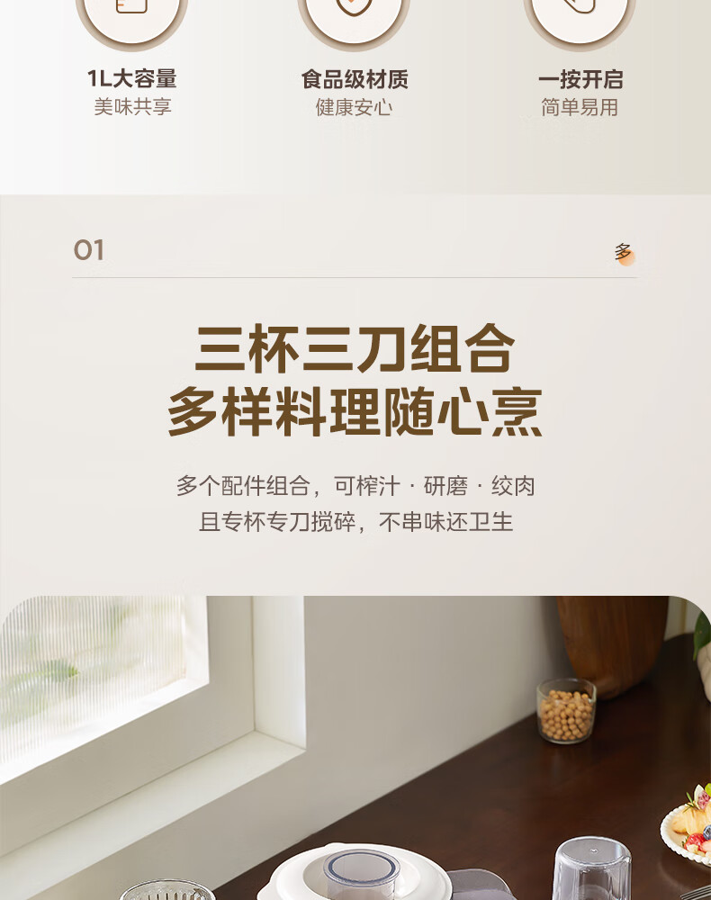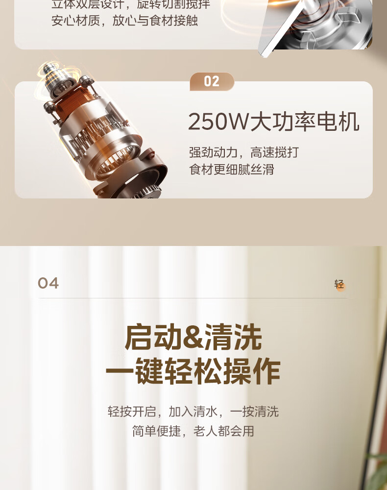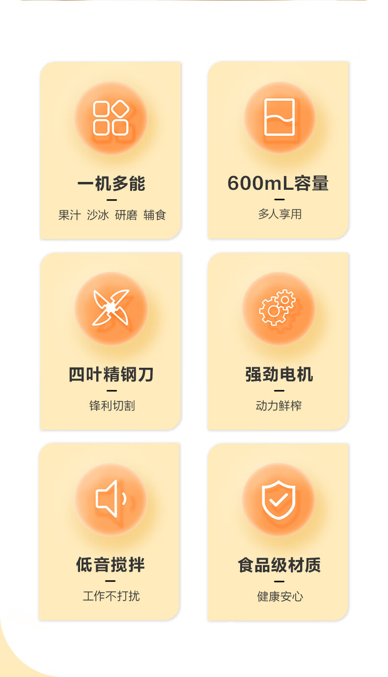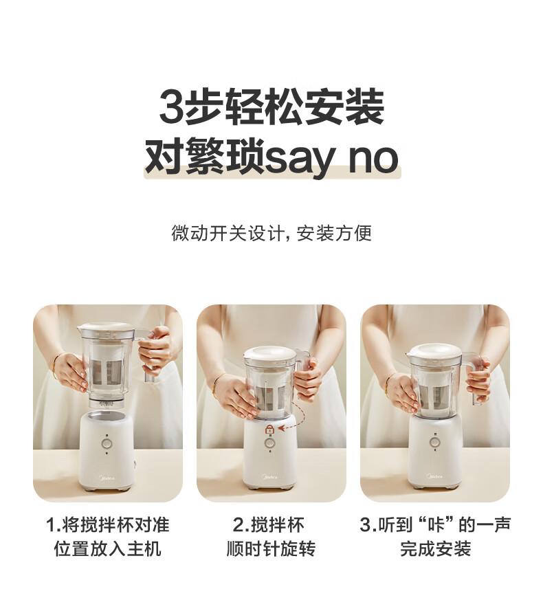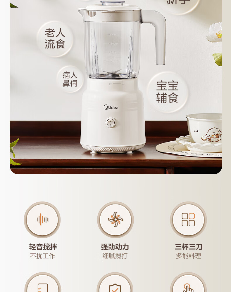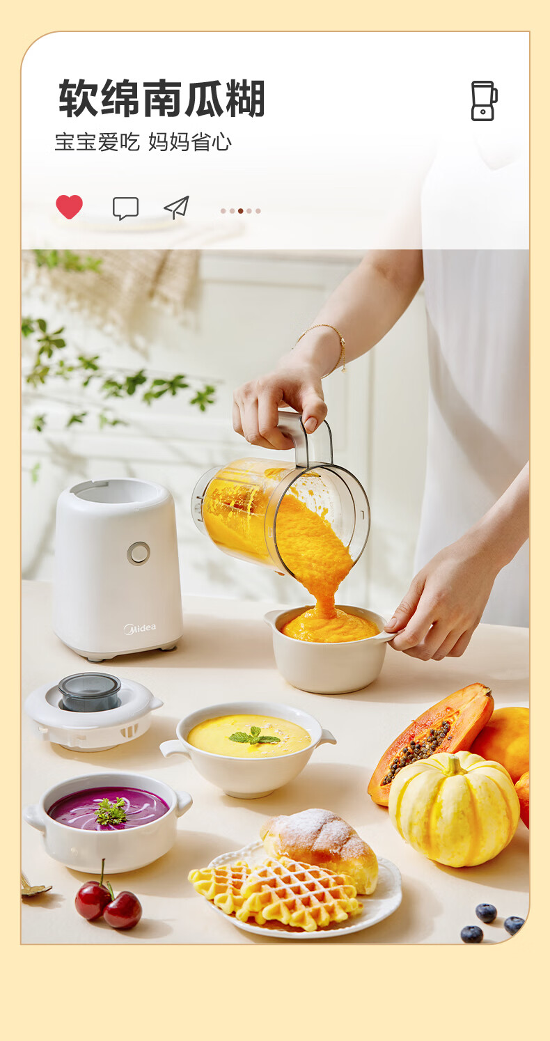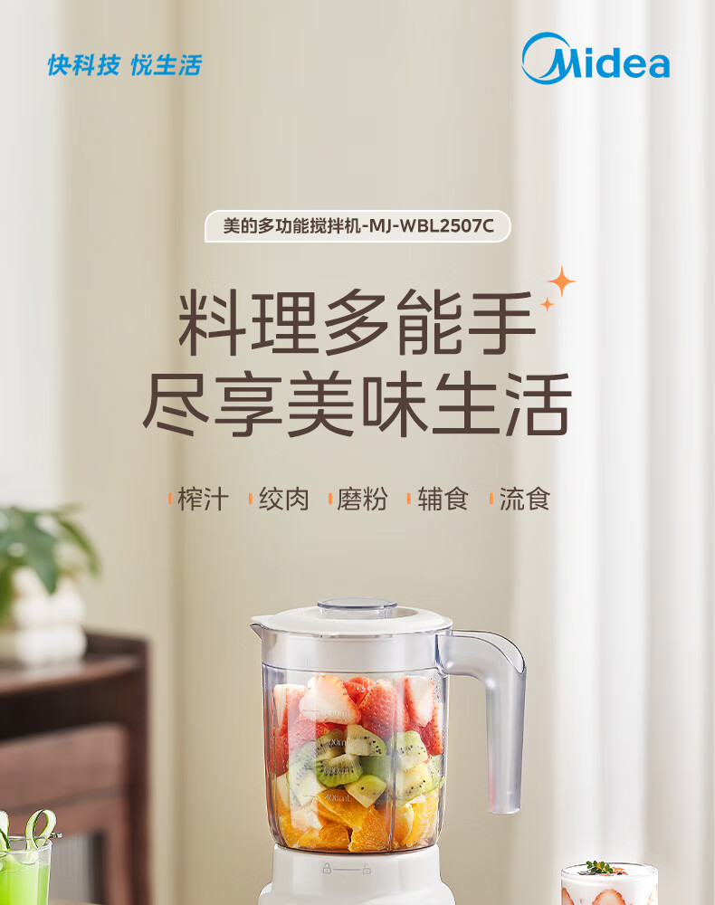 美的(Midea)榨汁机便携式料理机大容量多功能小米榨汁杯小米榨汁机水果汁机养生料理机婴儿辅食机 【四叶立体刀】MJ-WBL2501B