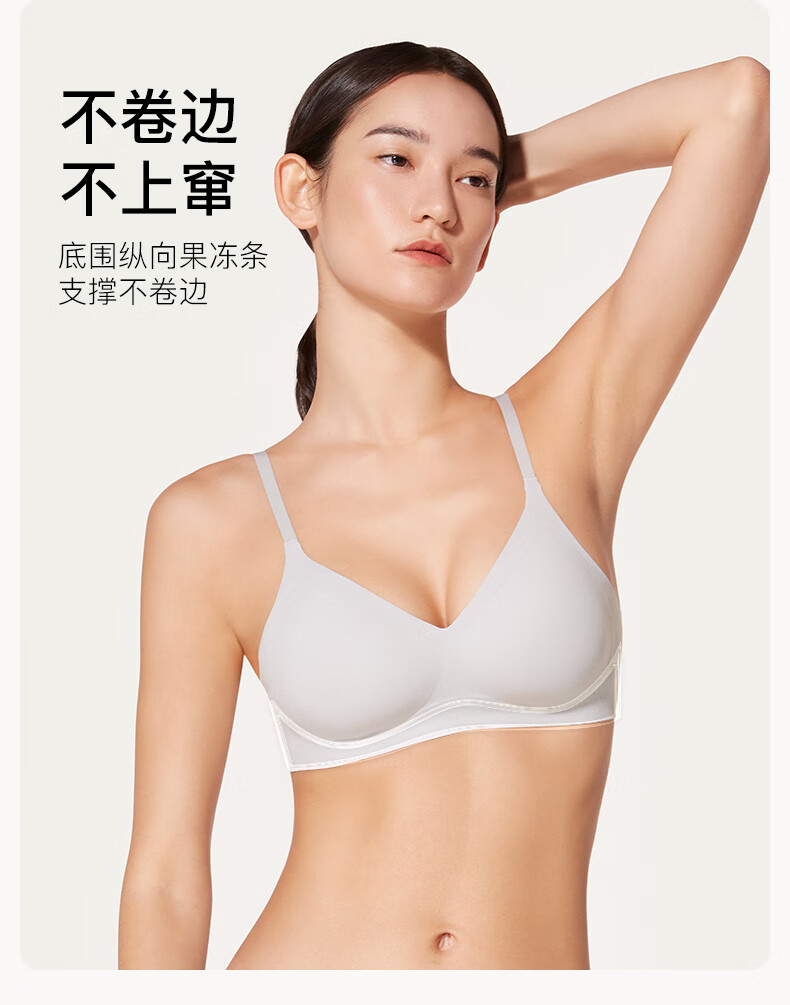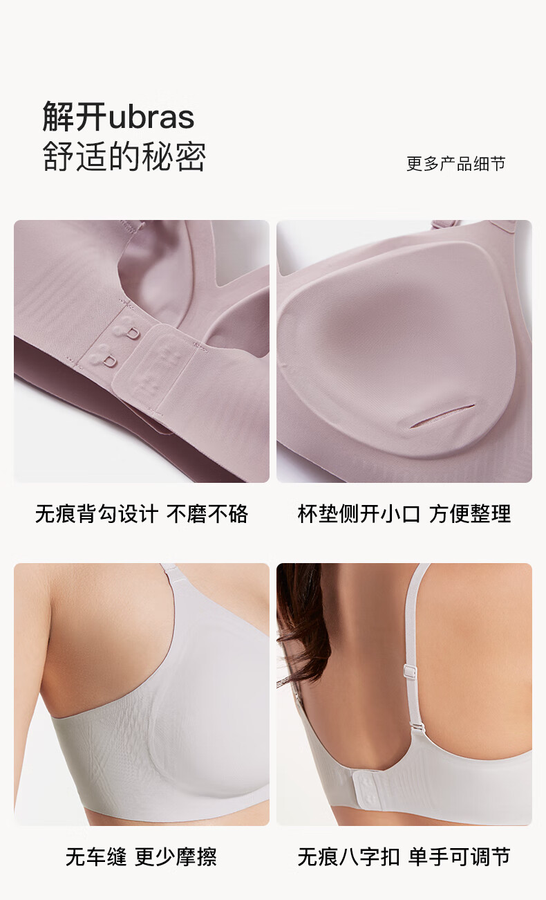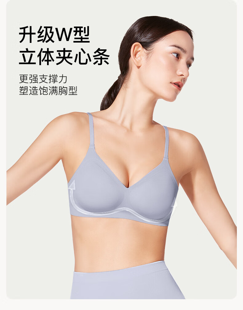ubras虞书欣同款夹心软支撑光面细肩带文胸女士内衣女背勾款奶盐蓝色M