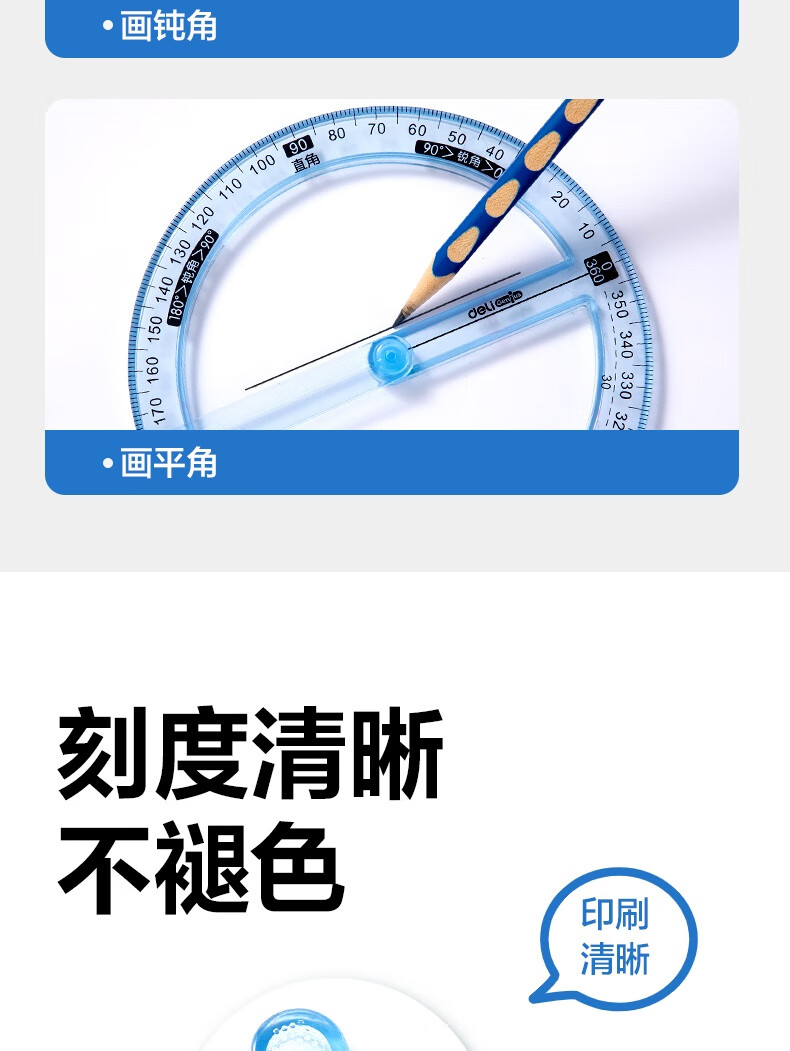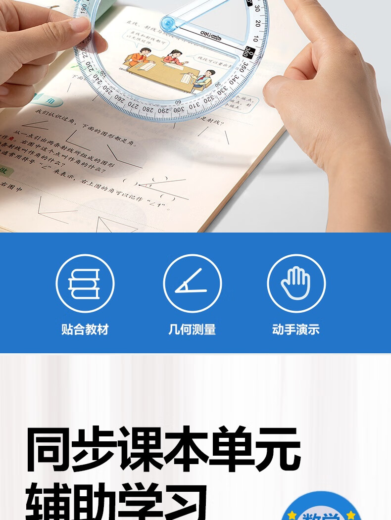 得力(deli)360°活动角 二三四年级数学量角器教具儿童学习用品角的认识学具多功能直锐钝角演示器开学礼物