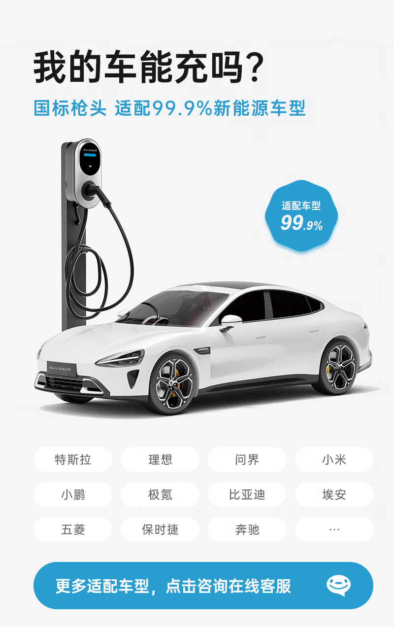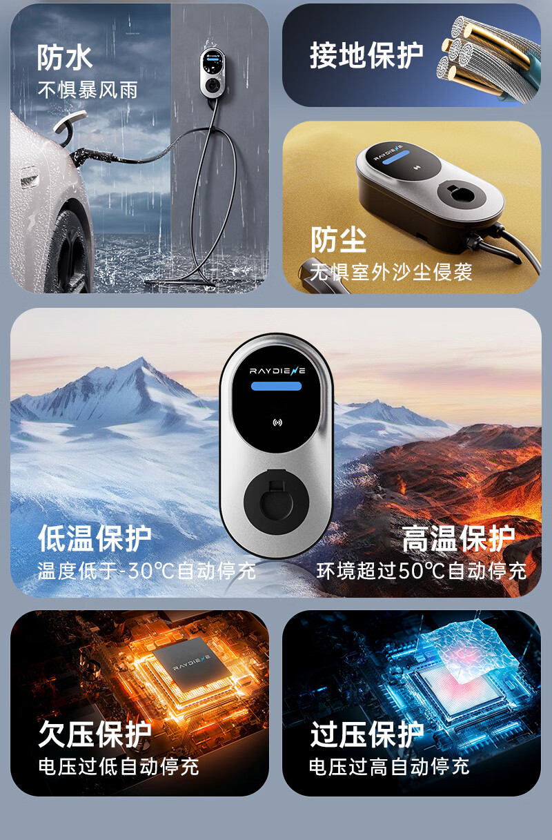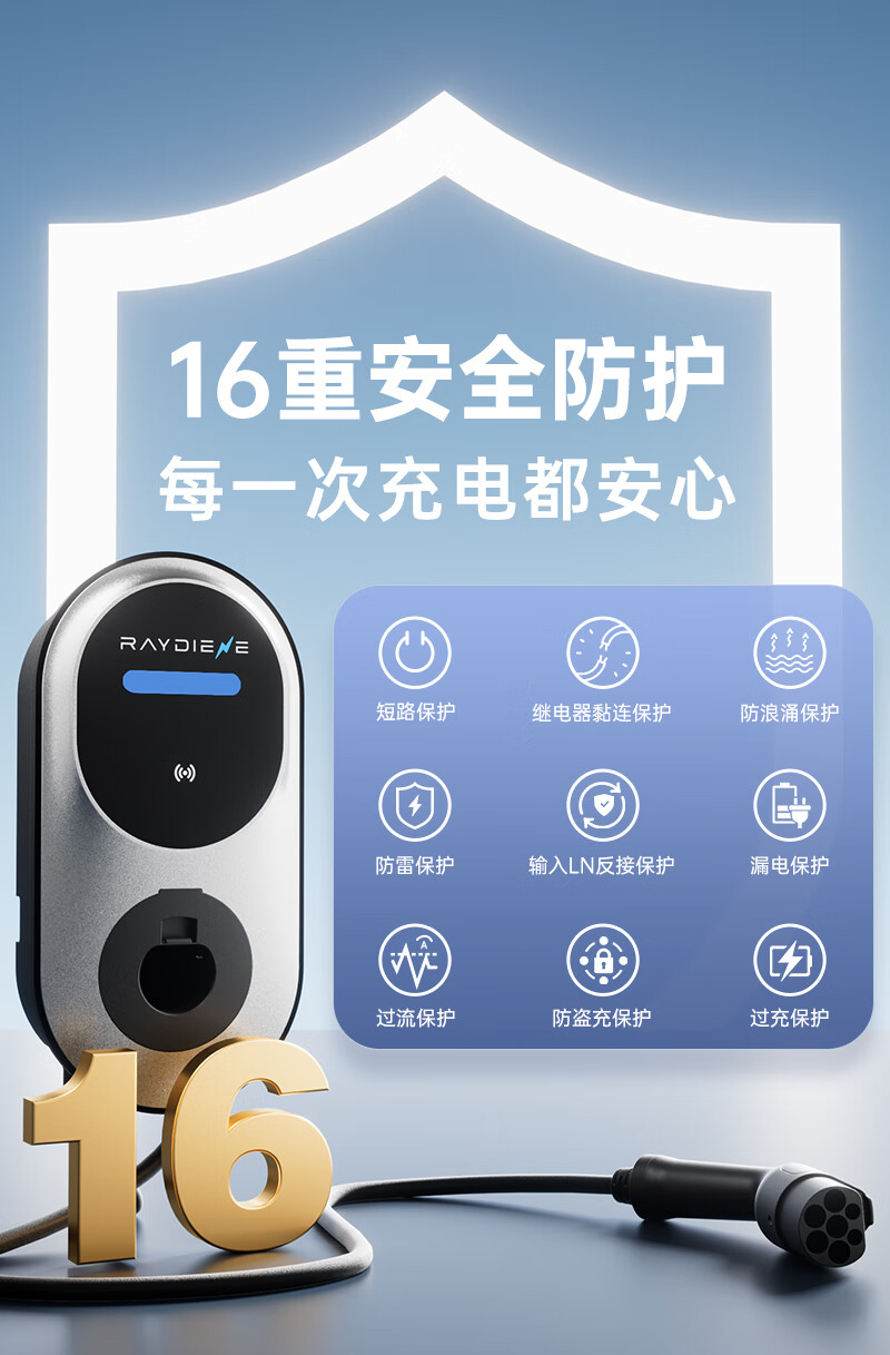 雷迪恩家用充电桩新能源7KW适配于特斯拉问界比亚迪小鹏小米 磐石7KW4G版