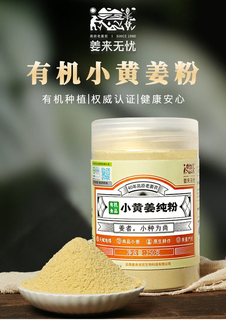 姜来无忧干姜粉食用冲泡有机纯生姜粉云南小黄姜粉原始点姜粉姜茶 250g一瓶