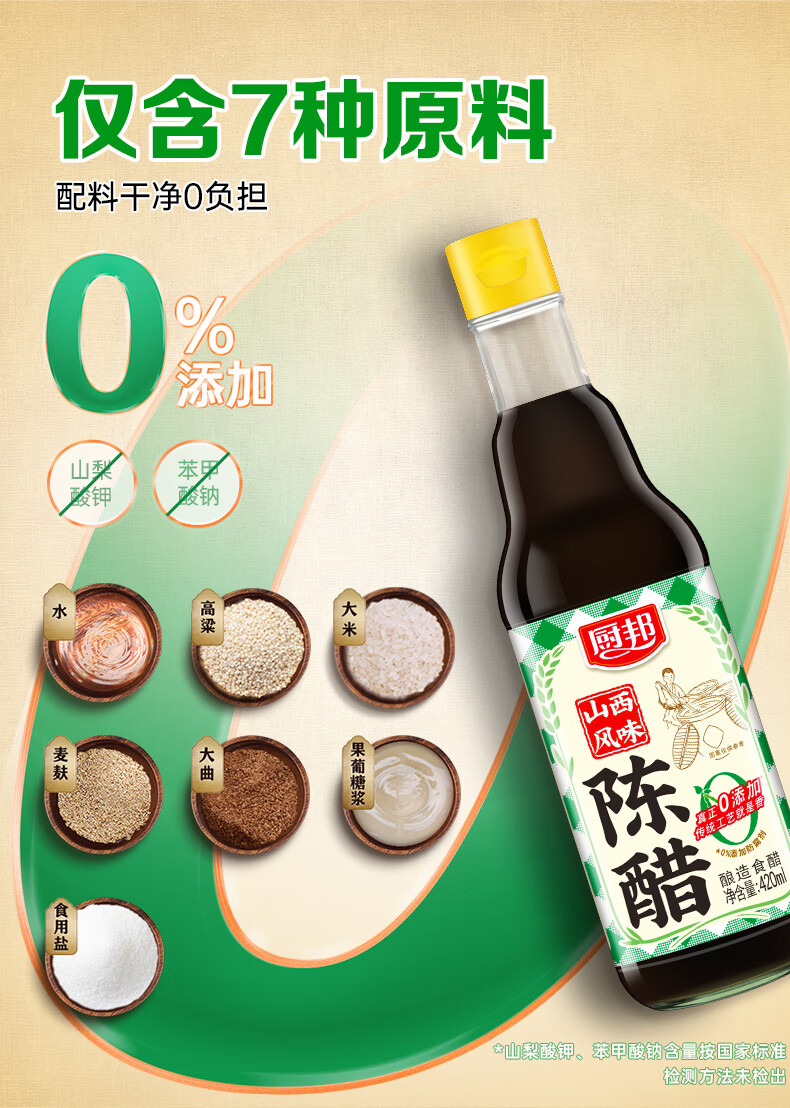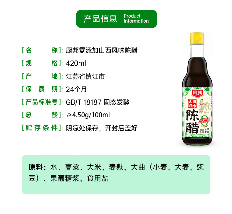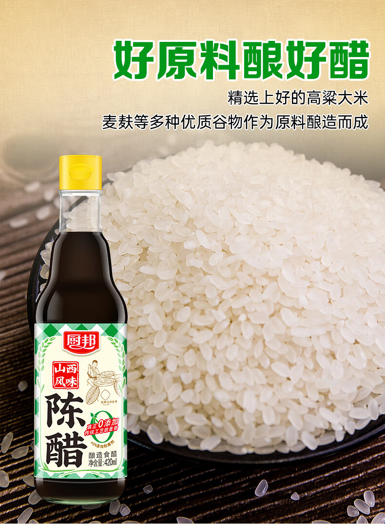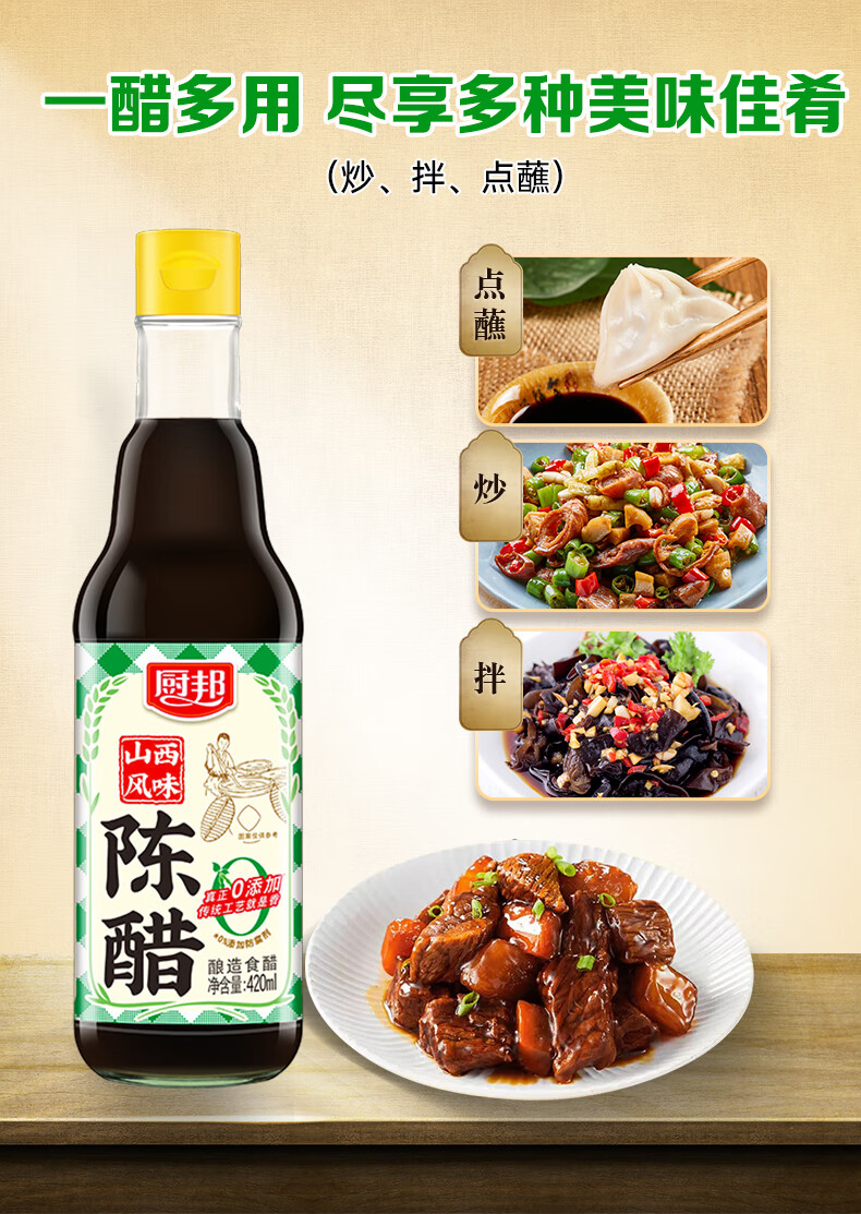厨邦山西陈醋420ml 【配料干净】陈醋食用香醋发酵浸泡腌制家用食用醋