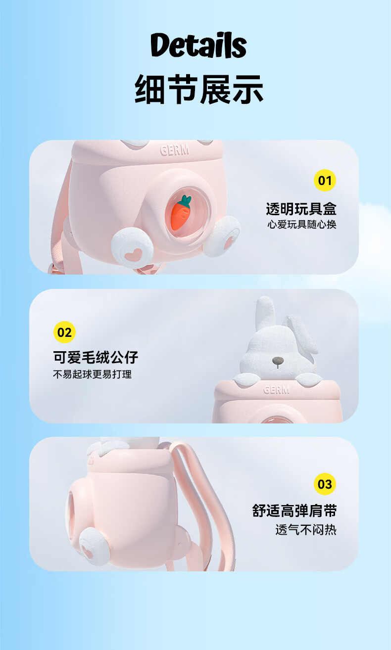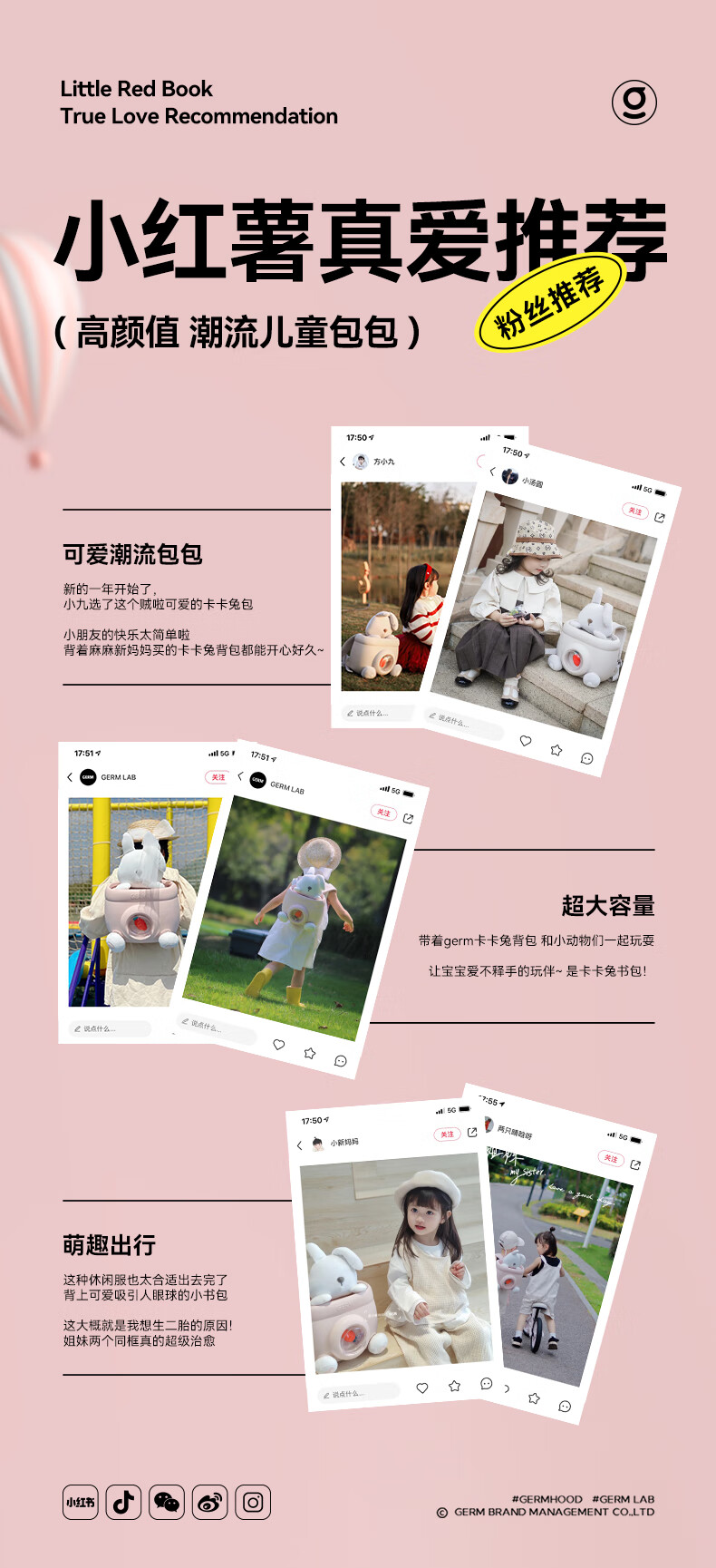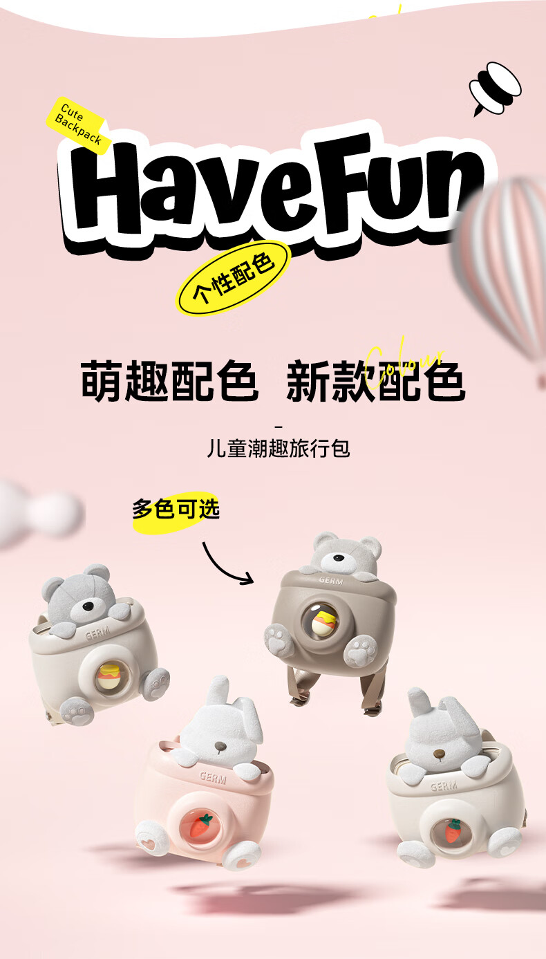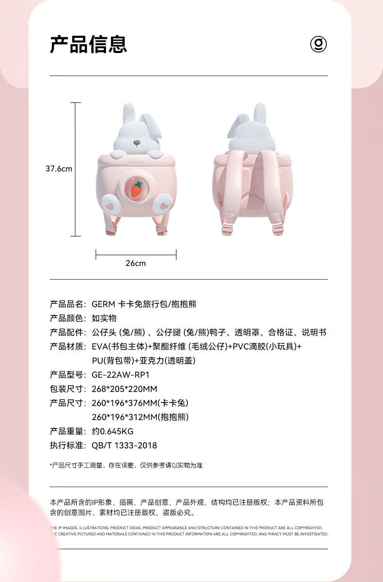 GERM幼儿园书包超轻儿童女孩男孩宝宝出游小背包可爱入学 芋芋紫【卡卡兔 礼盒包装】