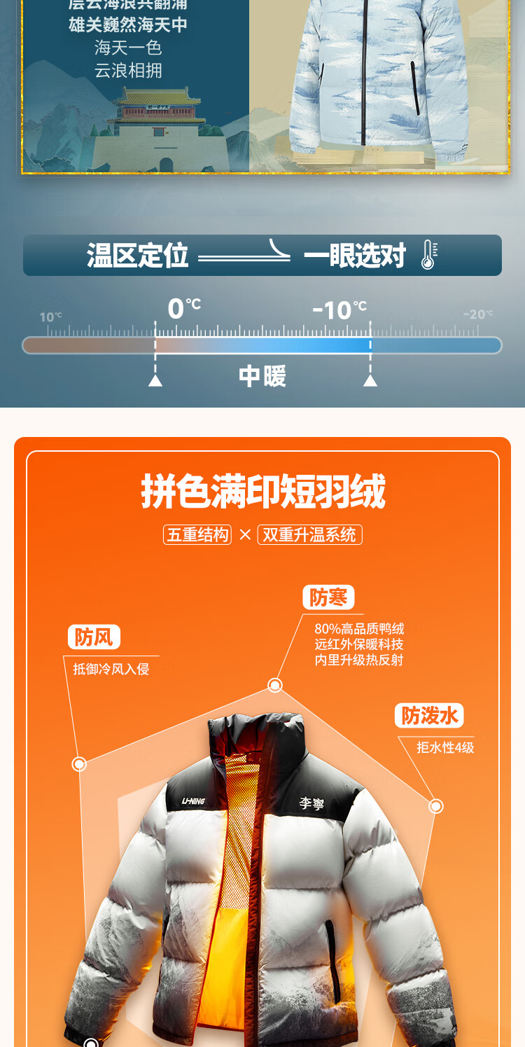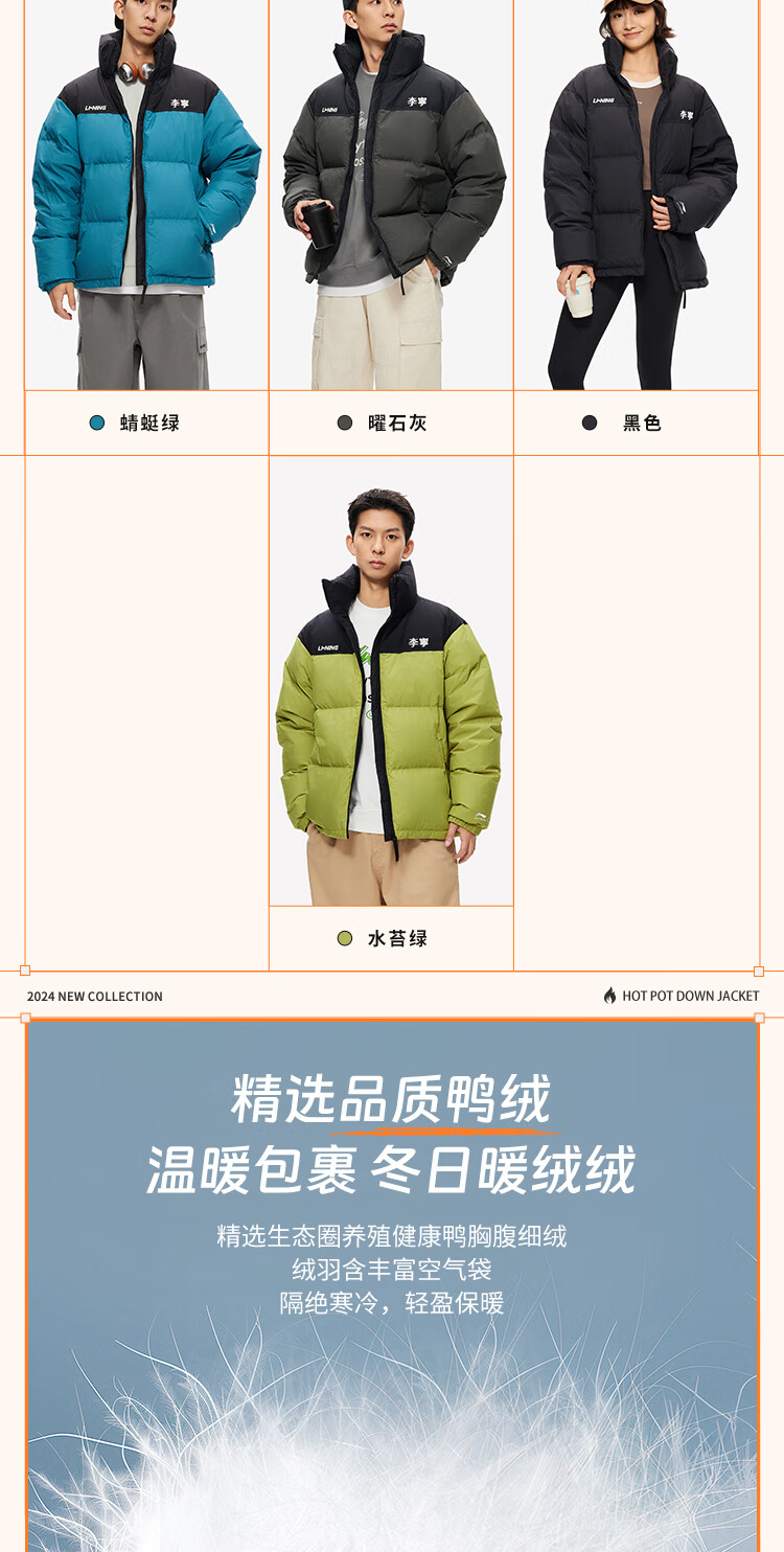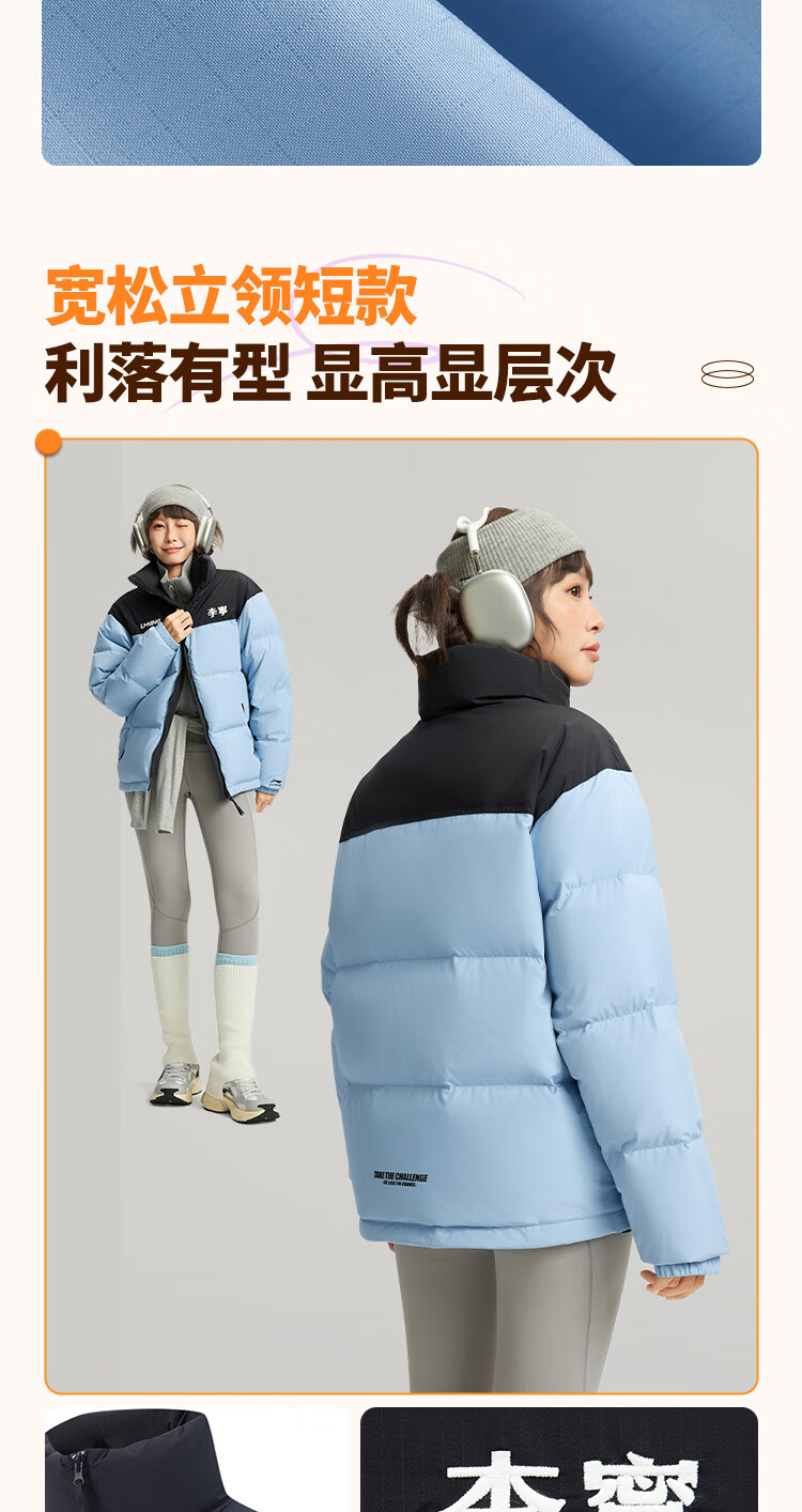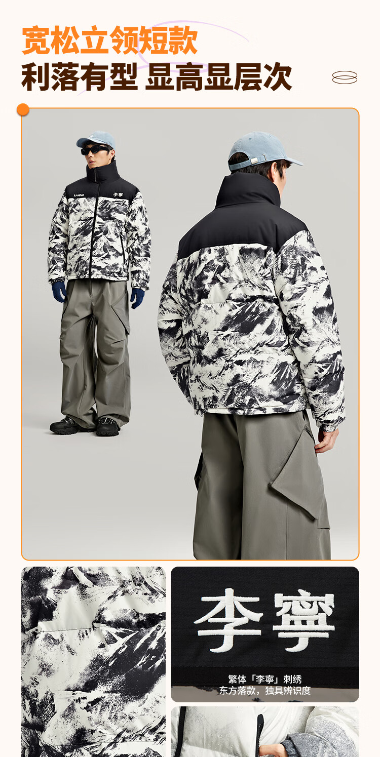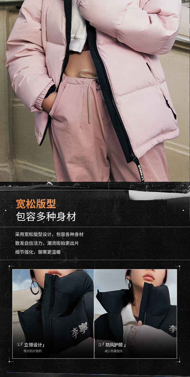 李宁溯之东方羽绒服男女防风透湿科技宽松80%鸭绒保暖外套AYMU239
