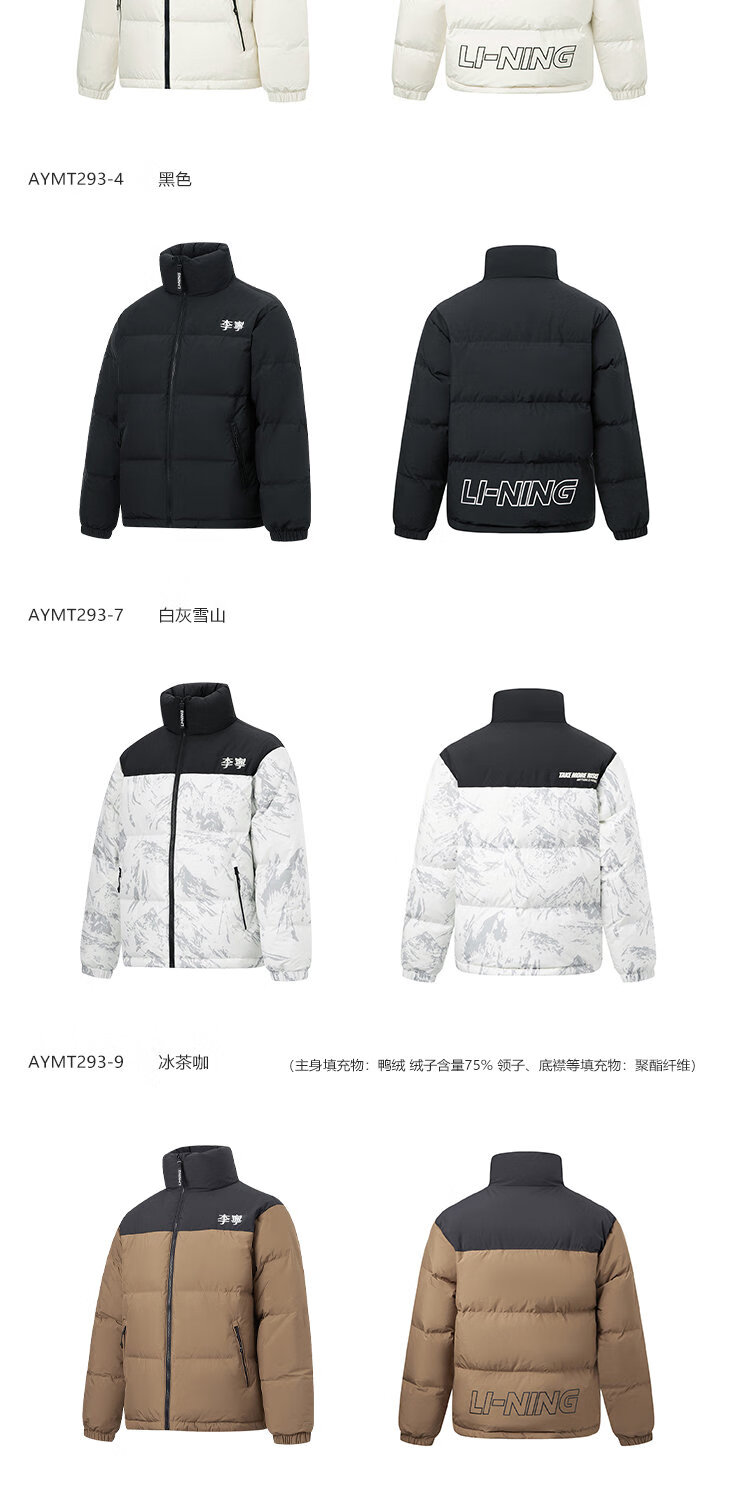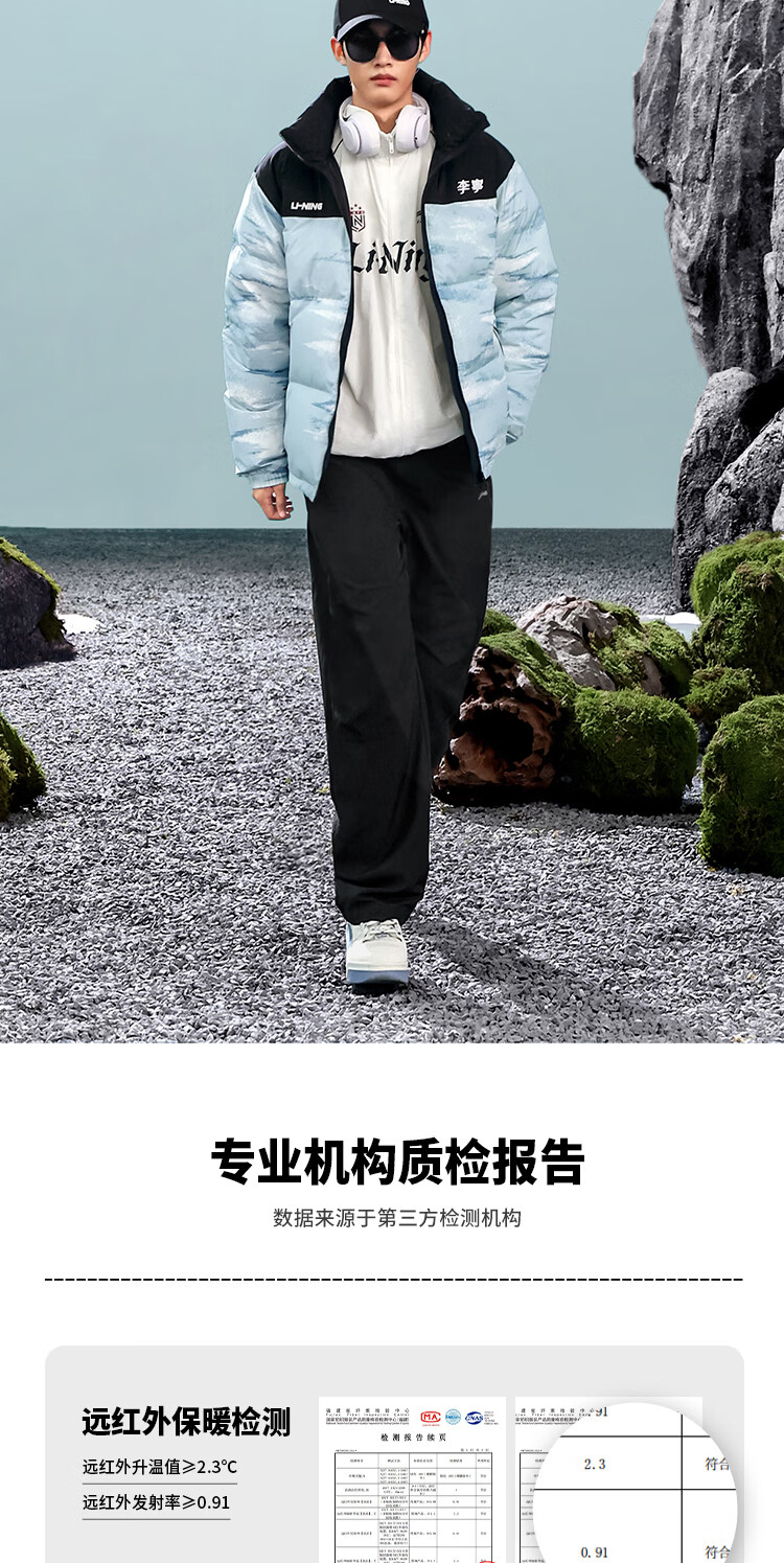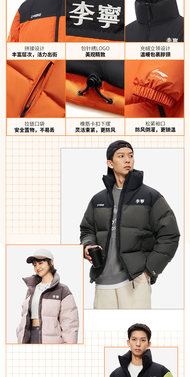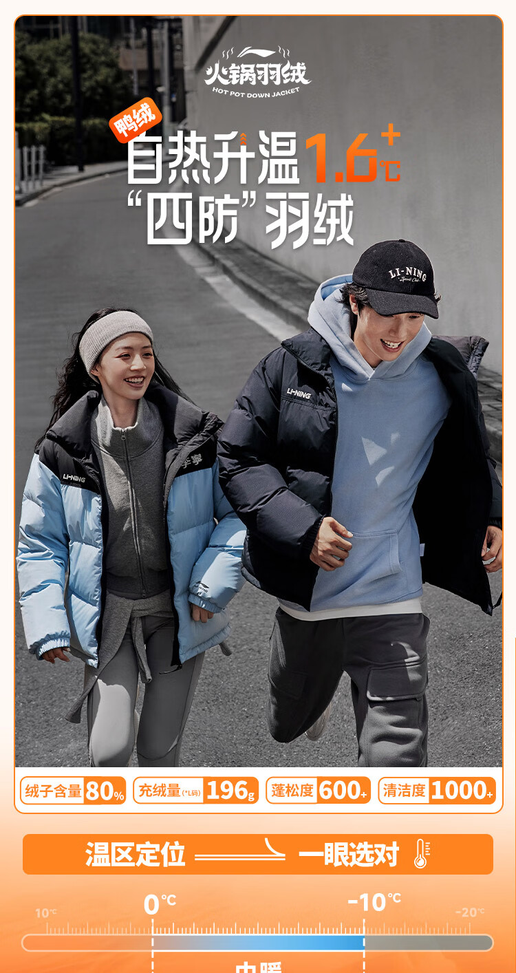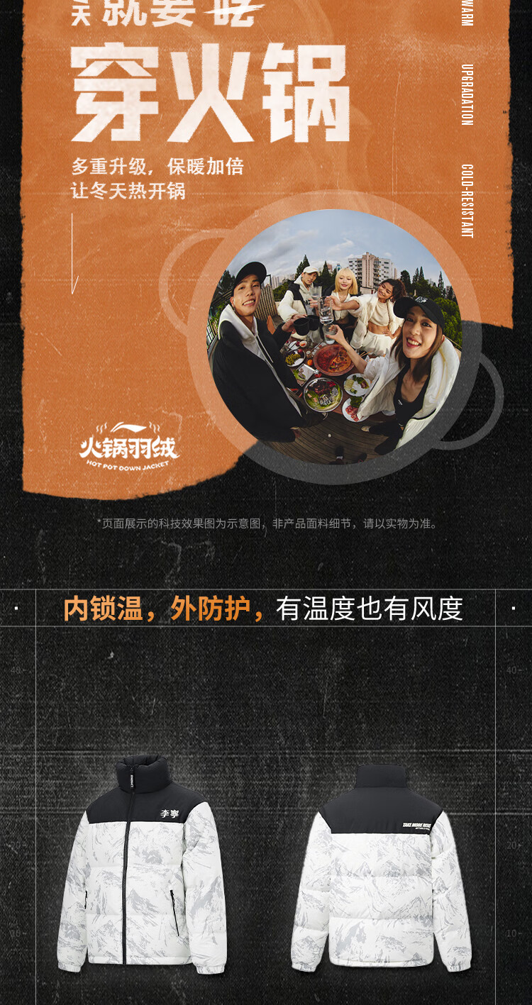 李宁溯之东方羽绒服男女防风透湿科技宽松80%鸭绒保暖外套AYMU239