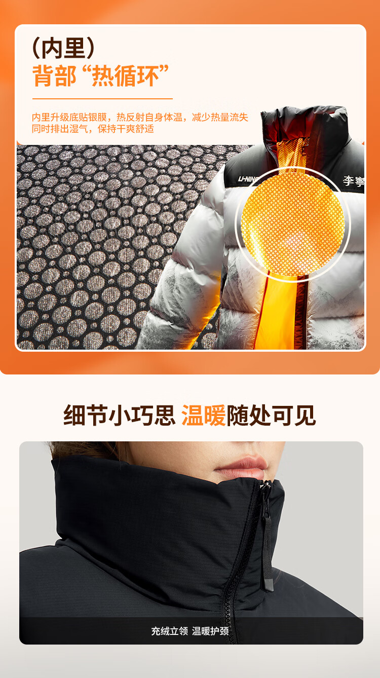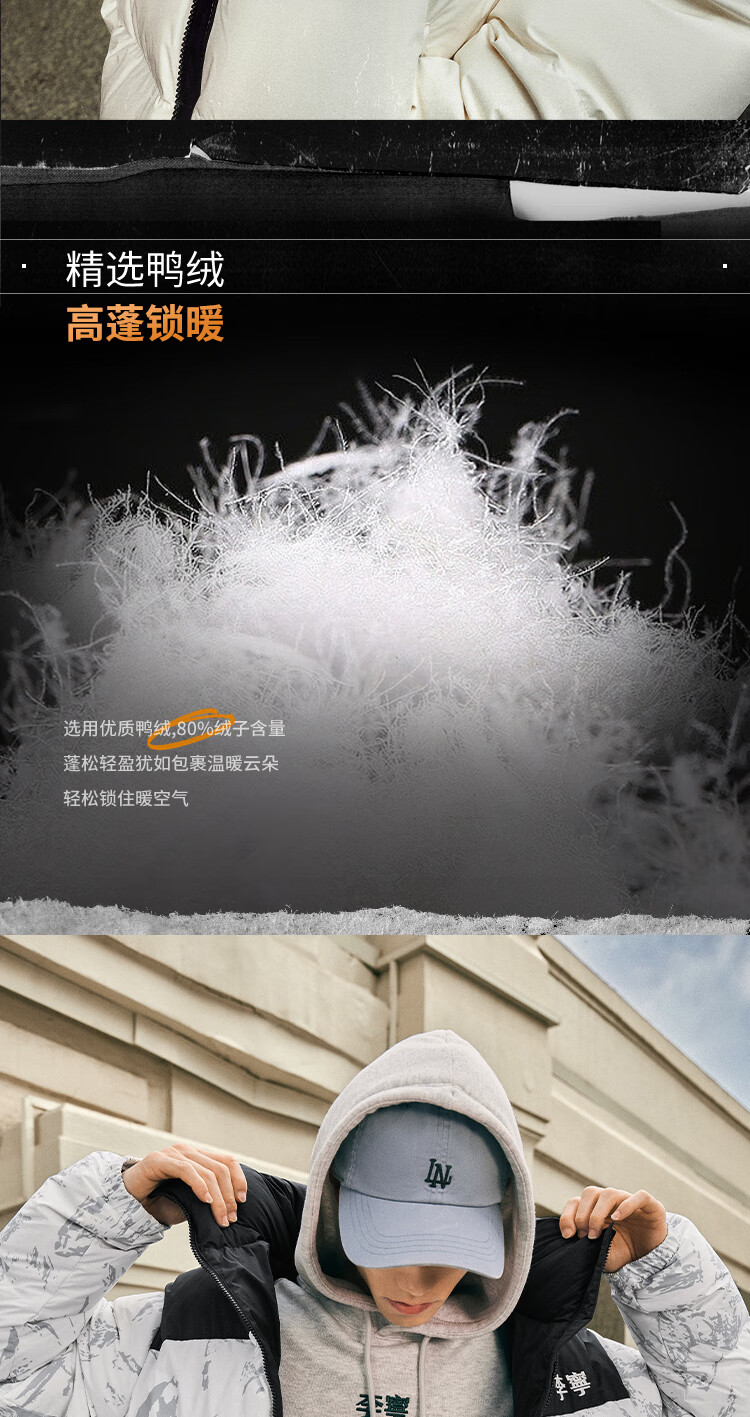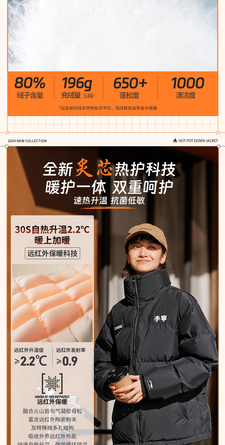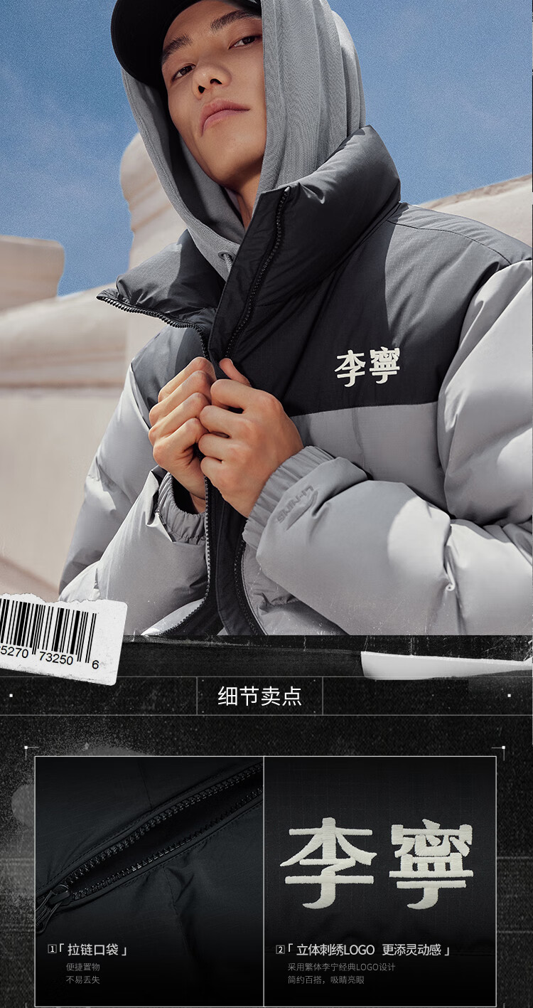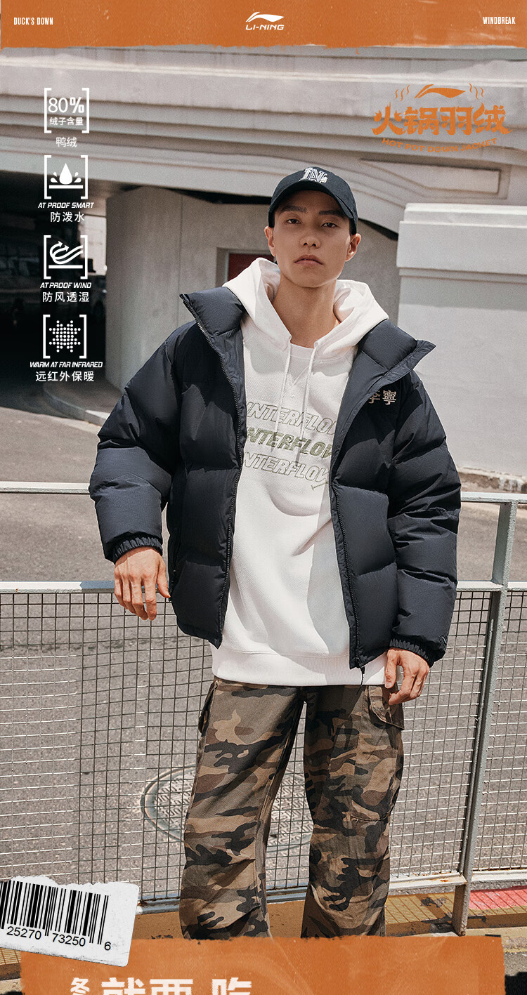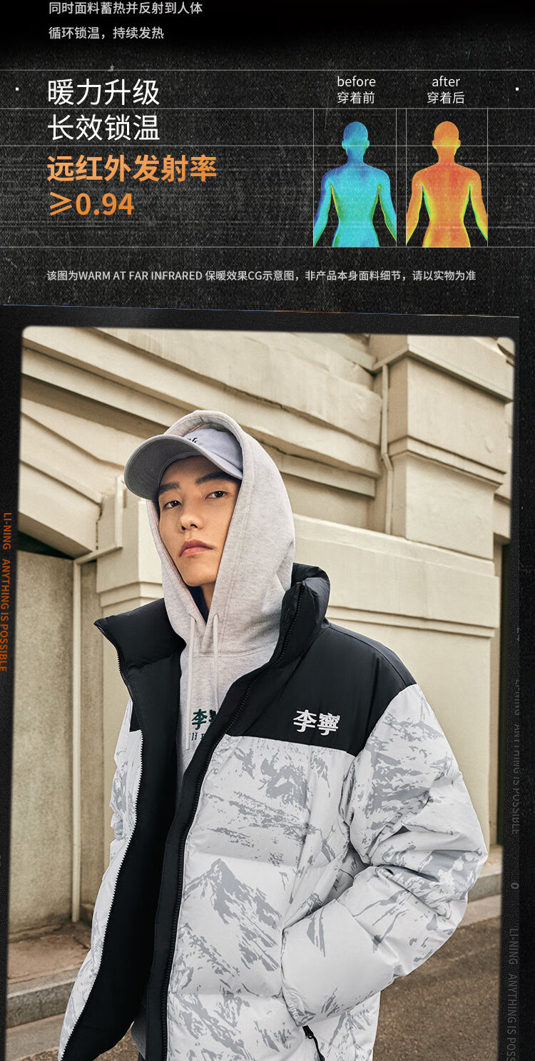 李宁溯之东方羽绒服男女防风透湿科技宽松80%鸭绒保暖外套AYMU239
