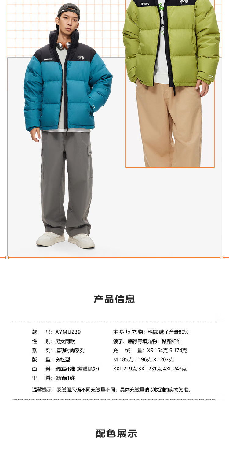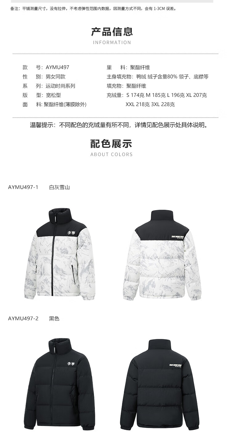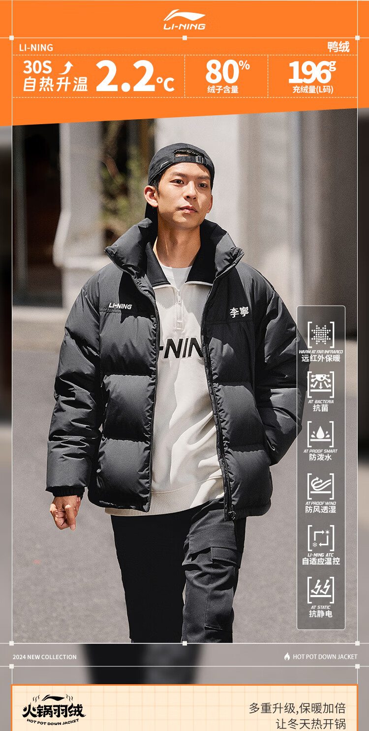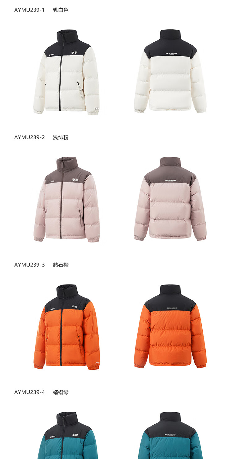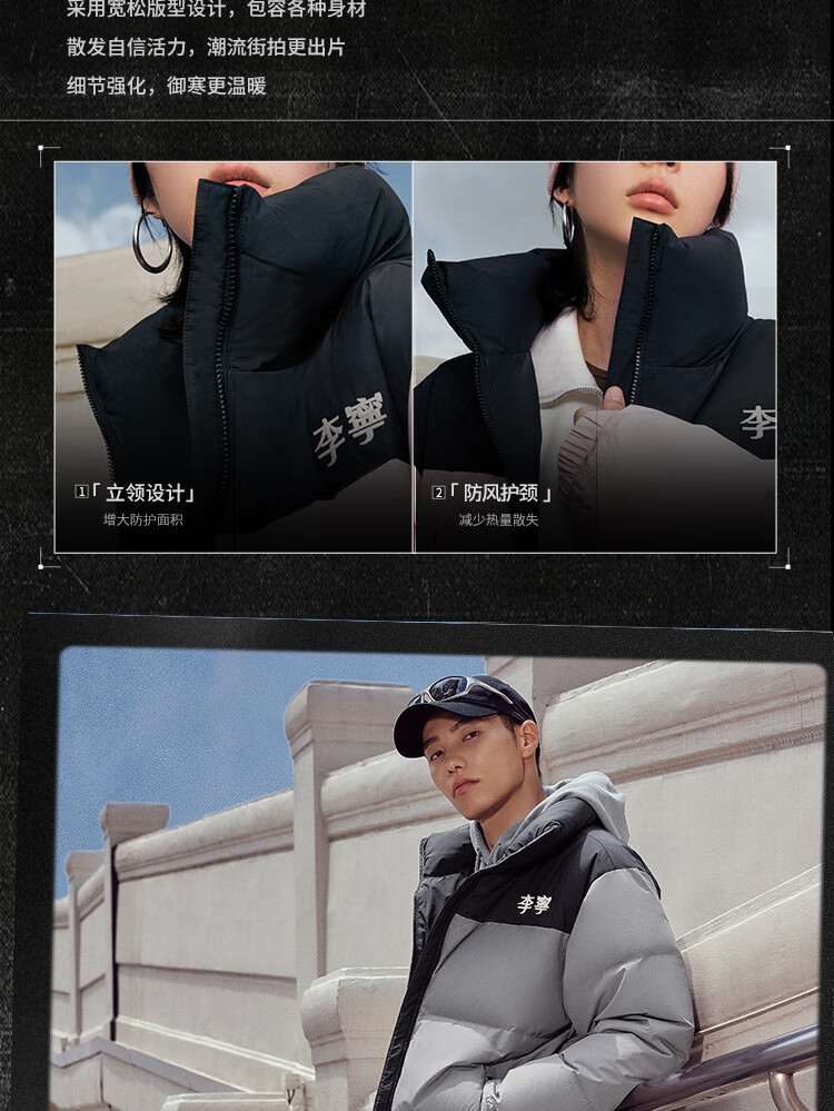 李宁溯之东方羽绒服男女防风透湿科技宽松80%鸭绒保暖外套AYMU239
