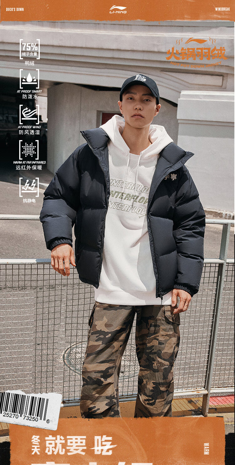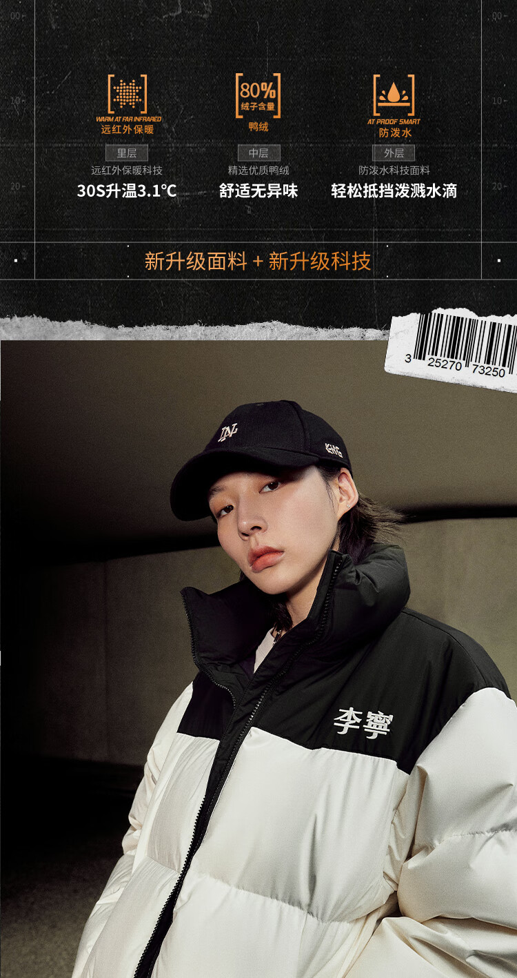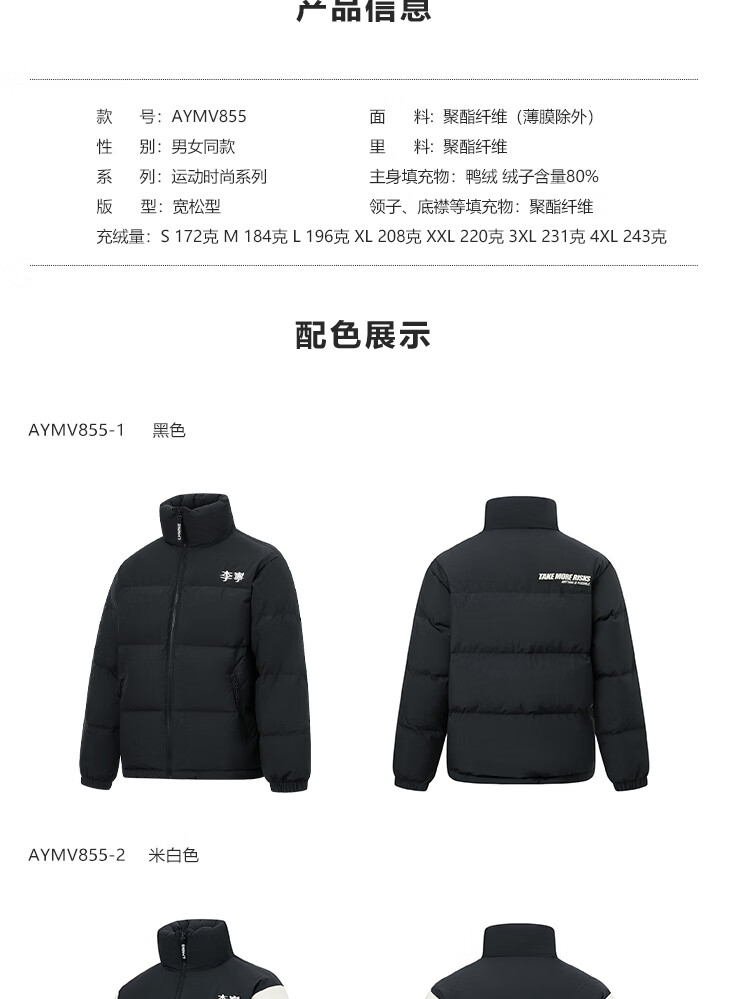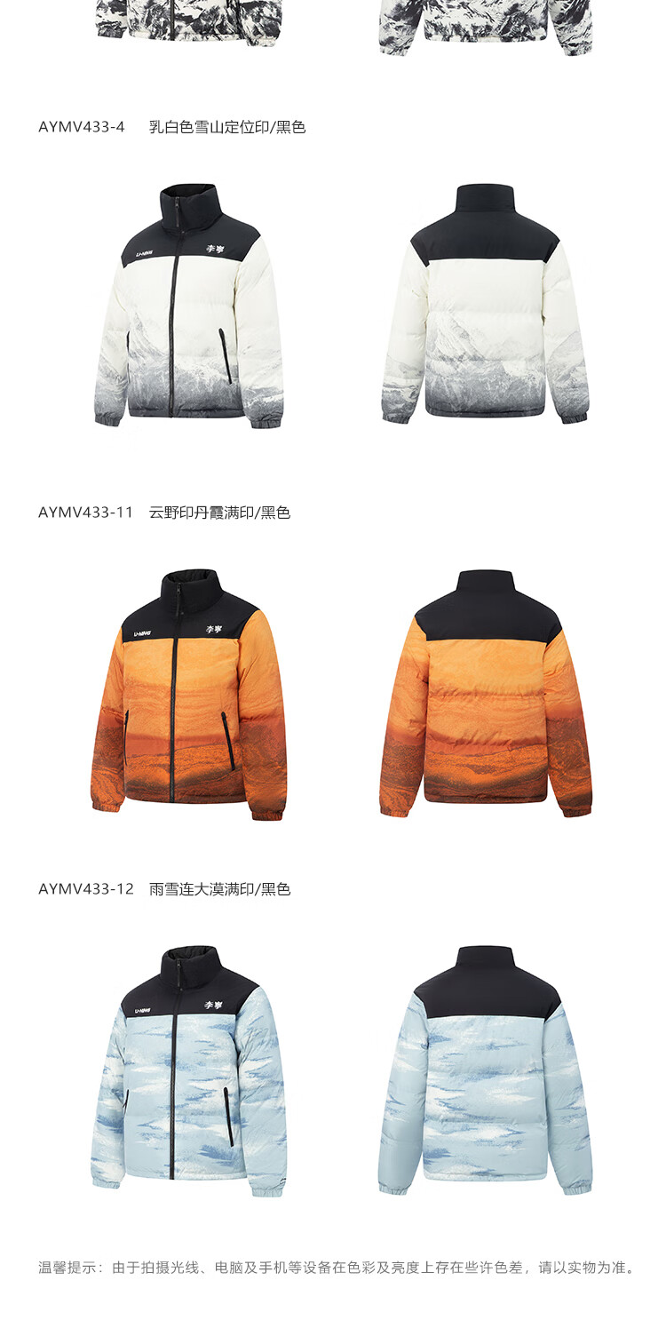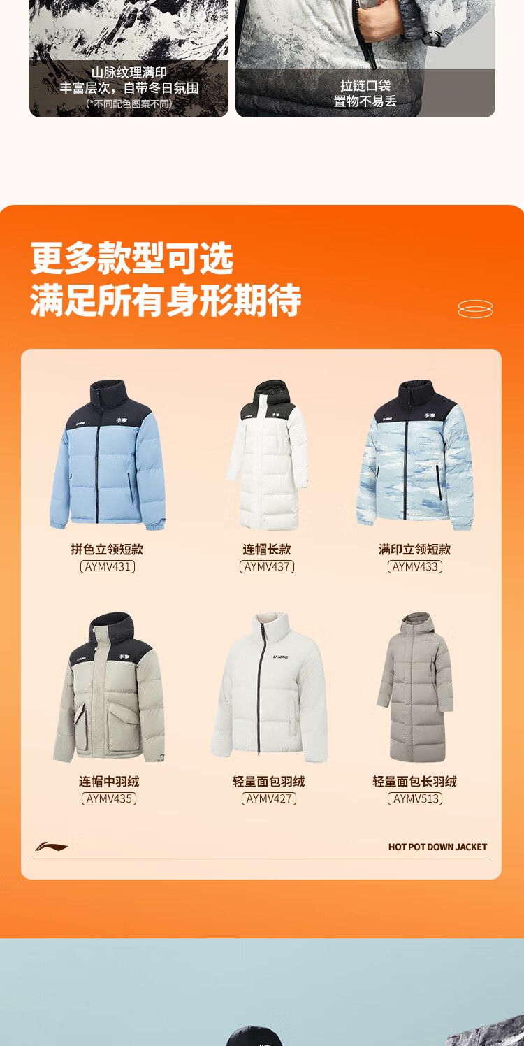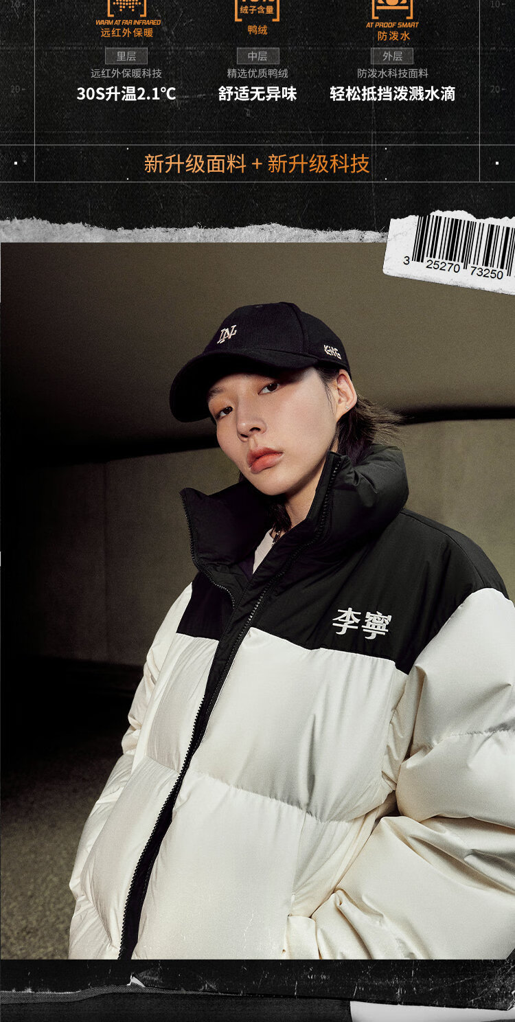 李宁溯之东方羽绒服男女防风透湿科技宽松80%鸭绒保暖外套AYMU239