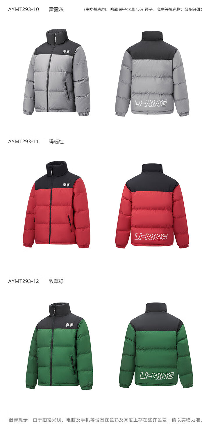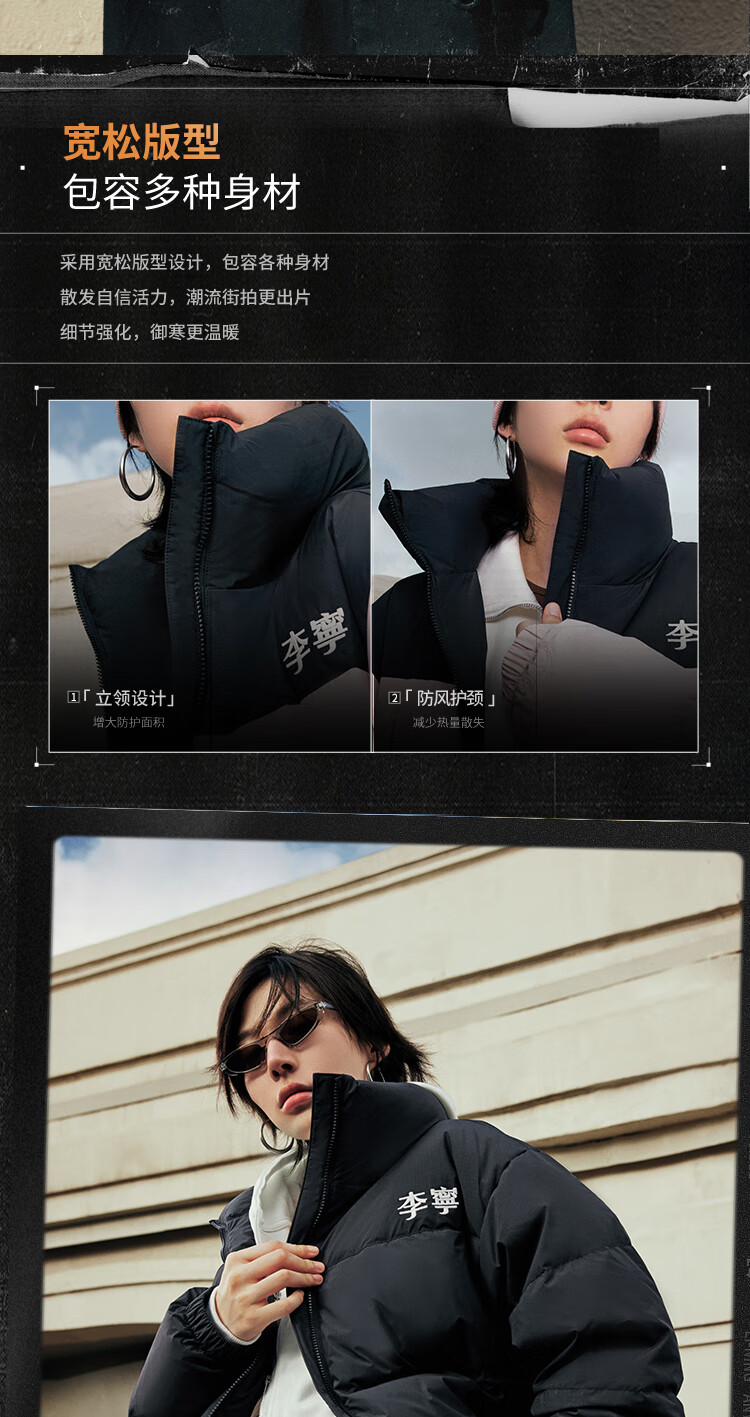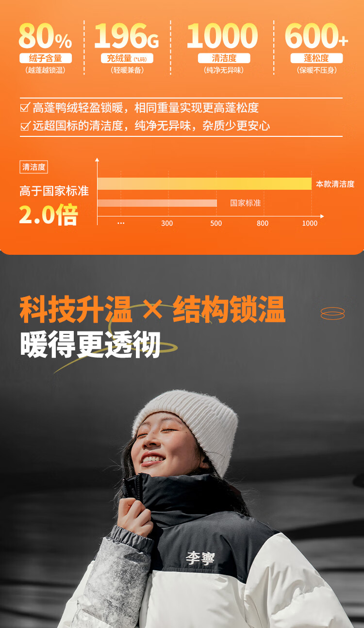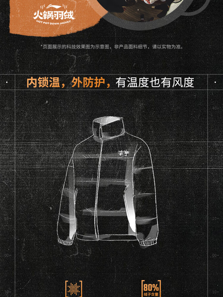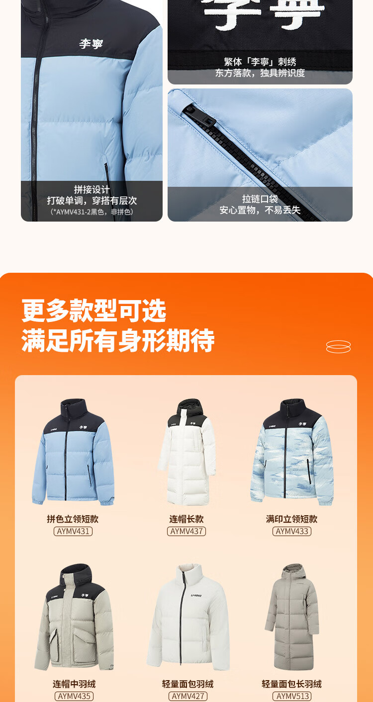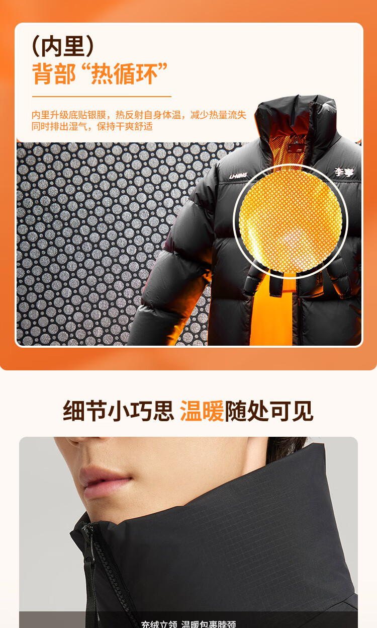 李宁溯之东方羽绒服男女防风透湿科技宽松80%鸭绒保暖外套AYMU239