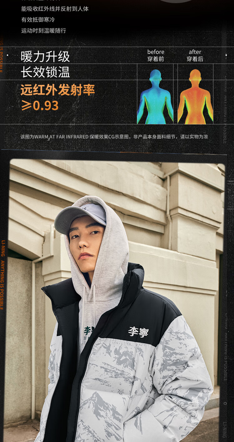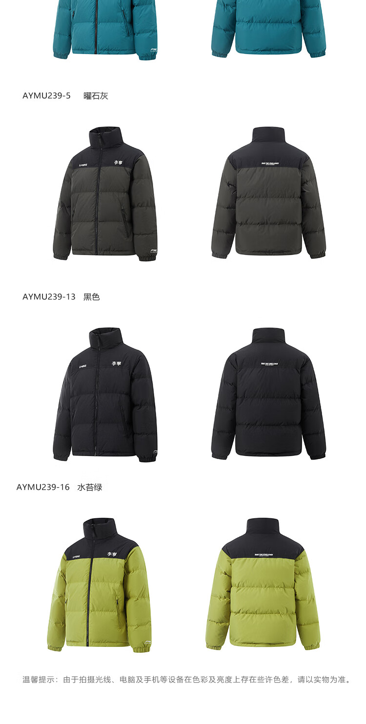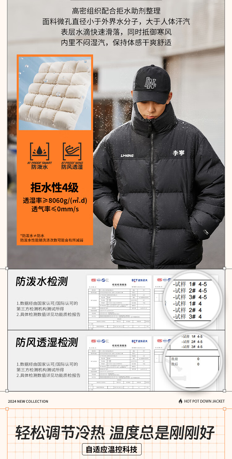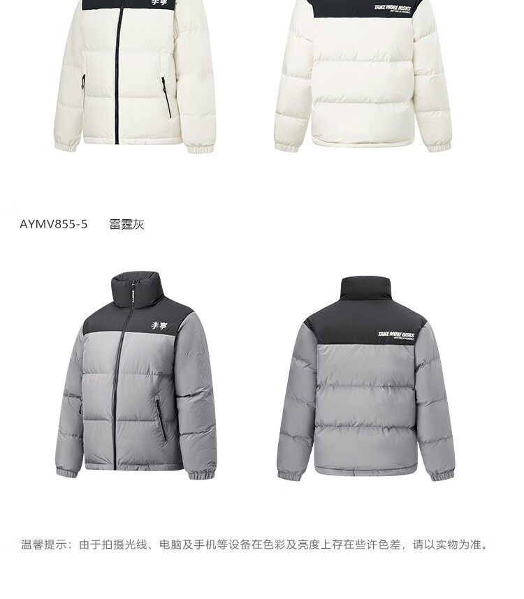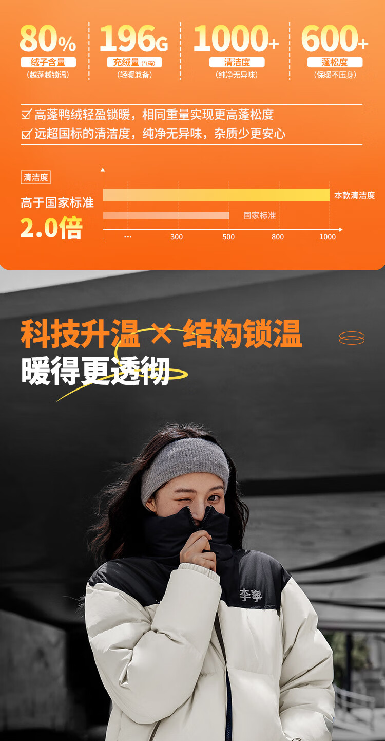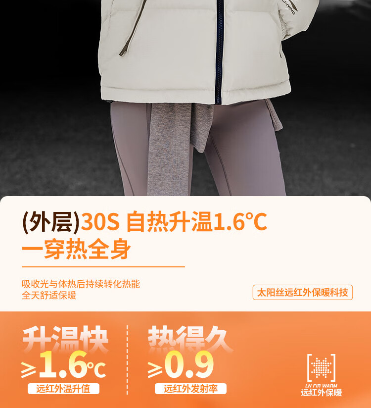 李宁溯之东方羽绒服男女防风透湿科技宽松80%鸭绒保暖外套AYMU239