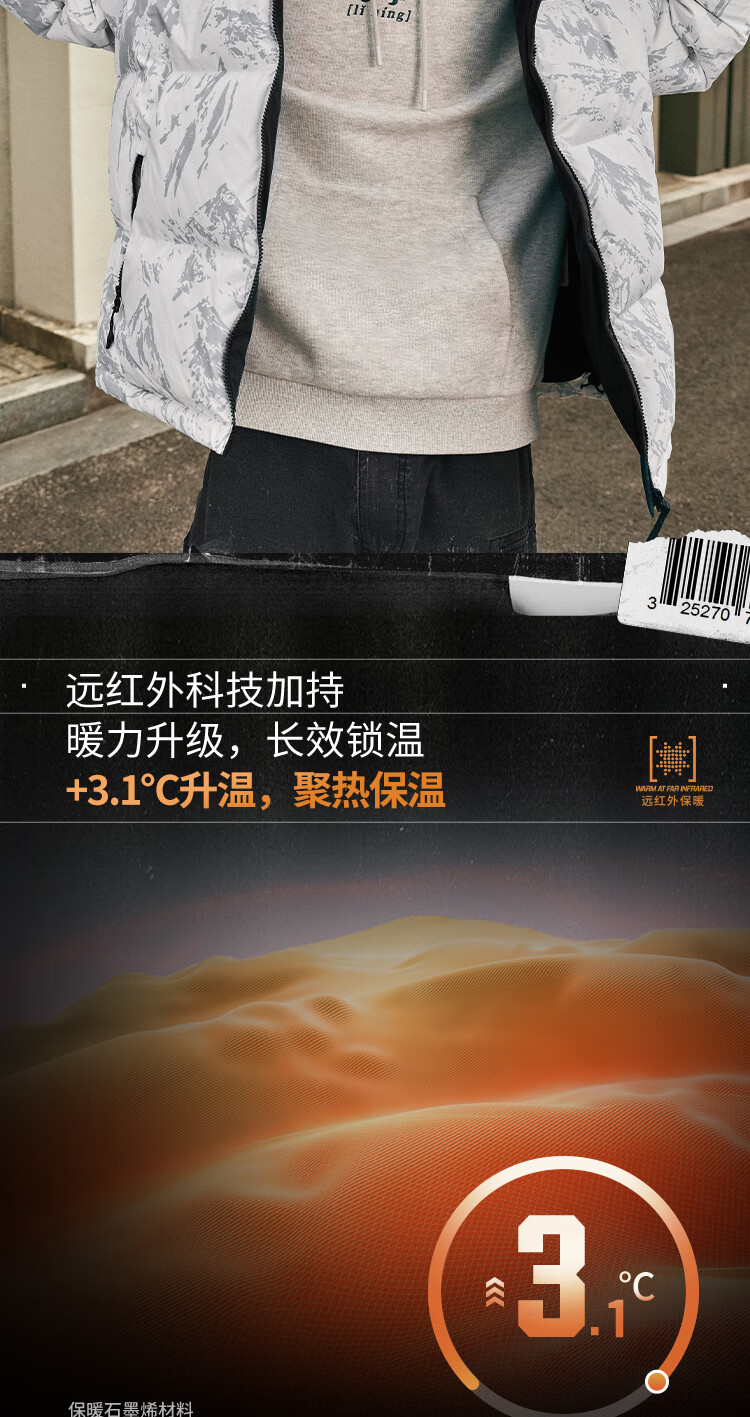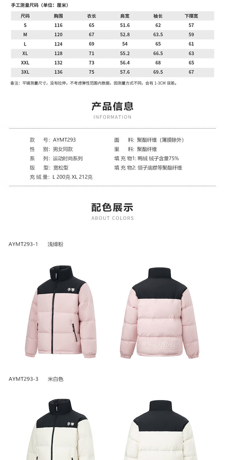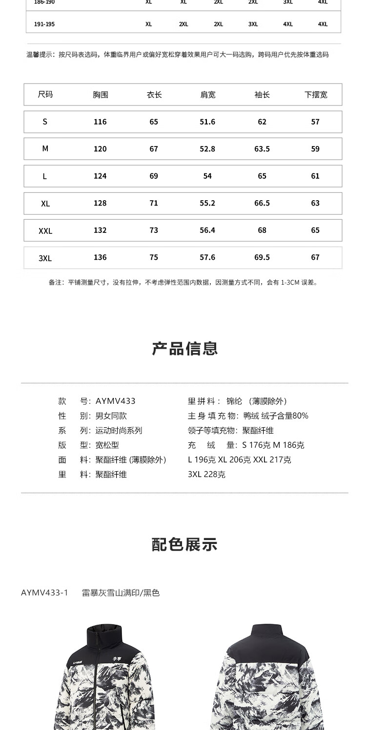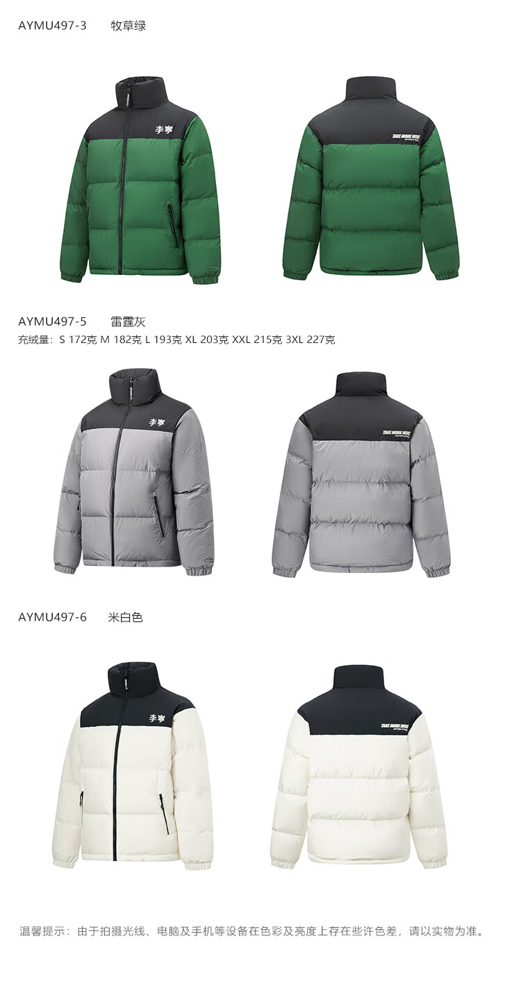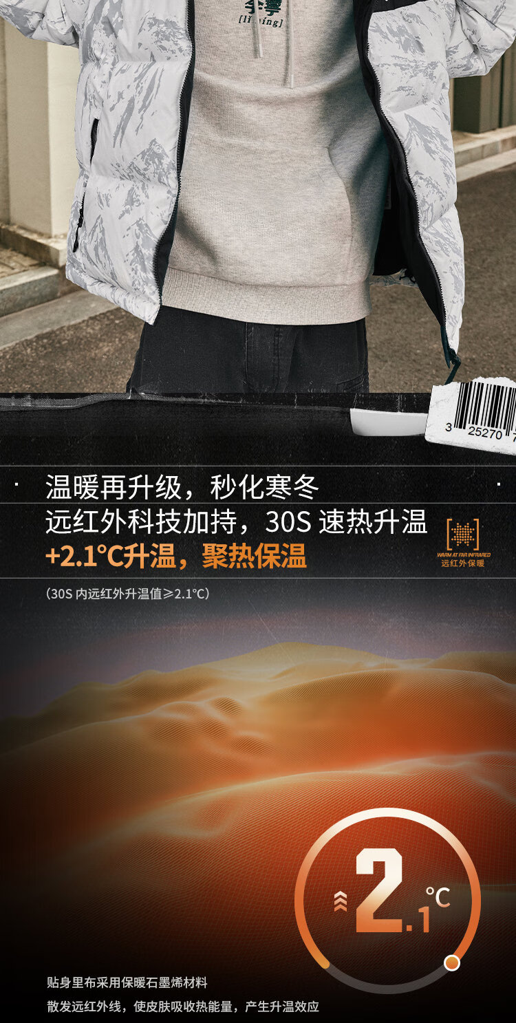 李宁溯之东方羽绒服男女防风透湿科技宽松80%鸭绒保暖外套AYMU239