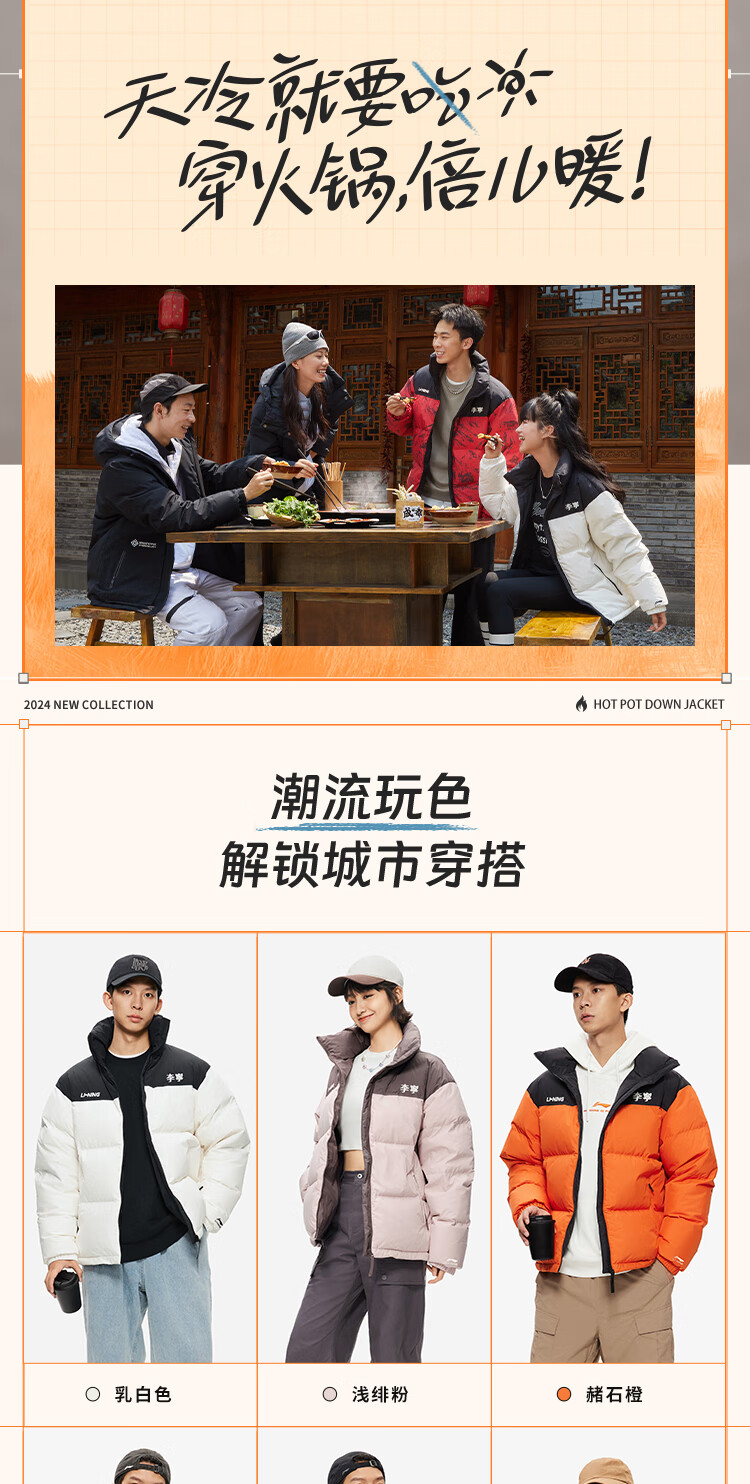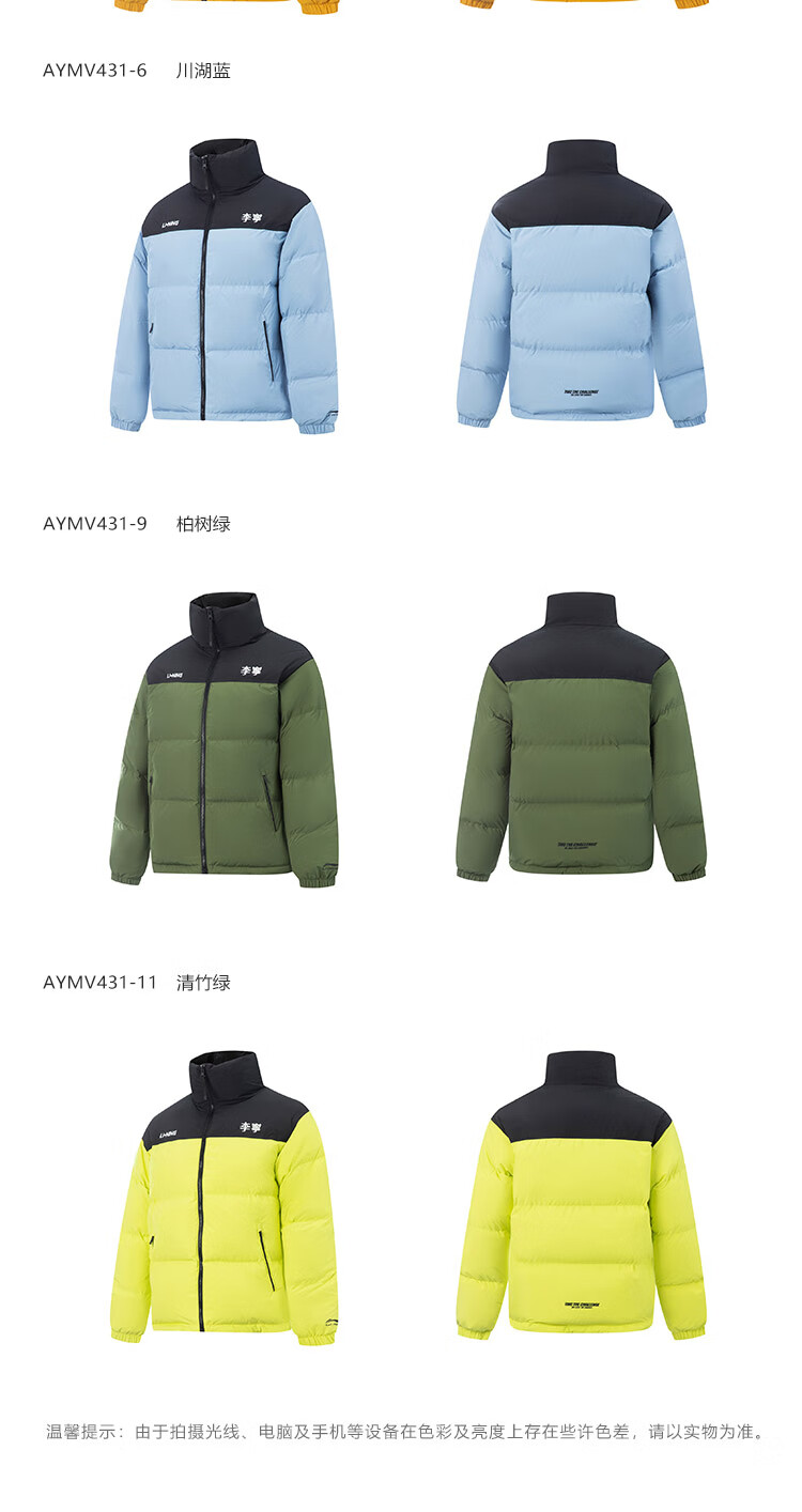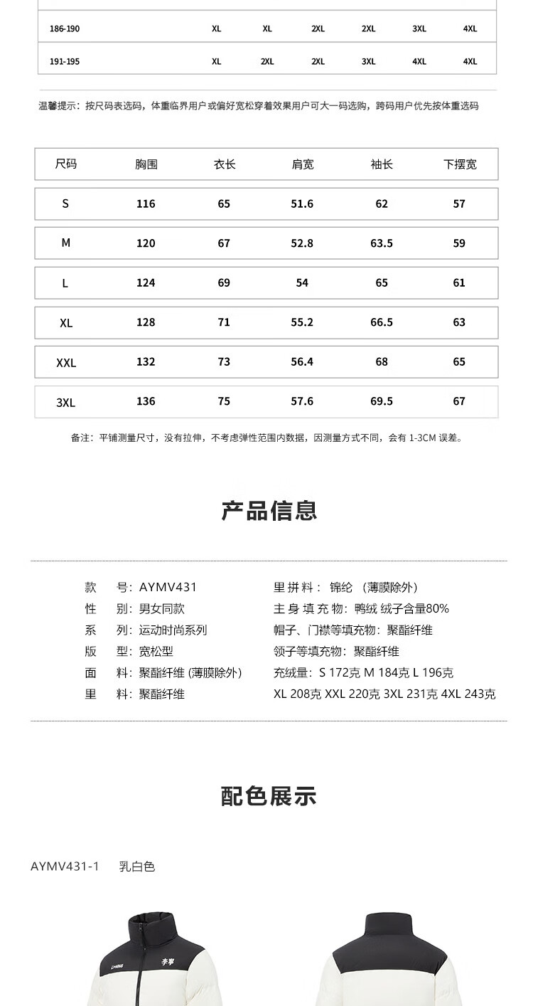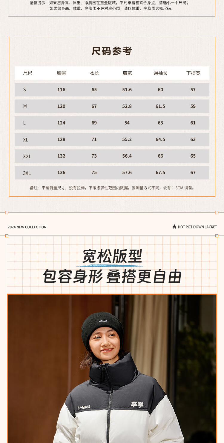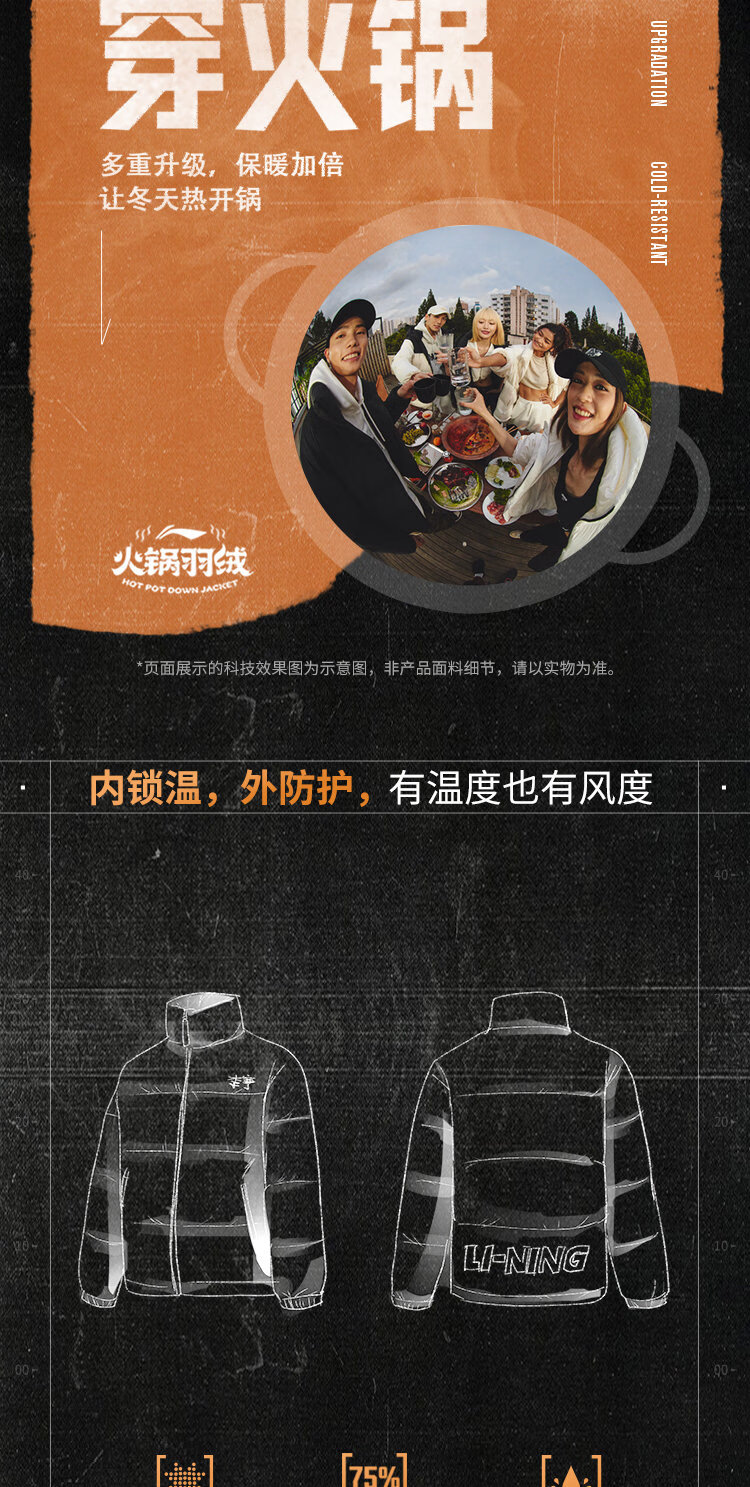 李宁溯之东方羽绒服男女防风透湿科技宽松80%鸭绒保暖外套AYMU239