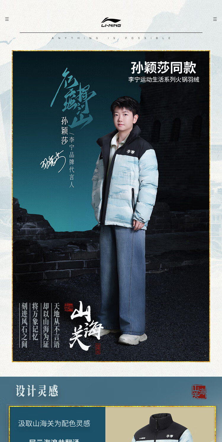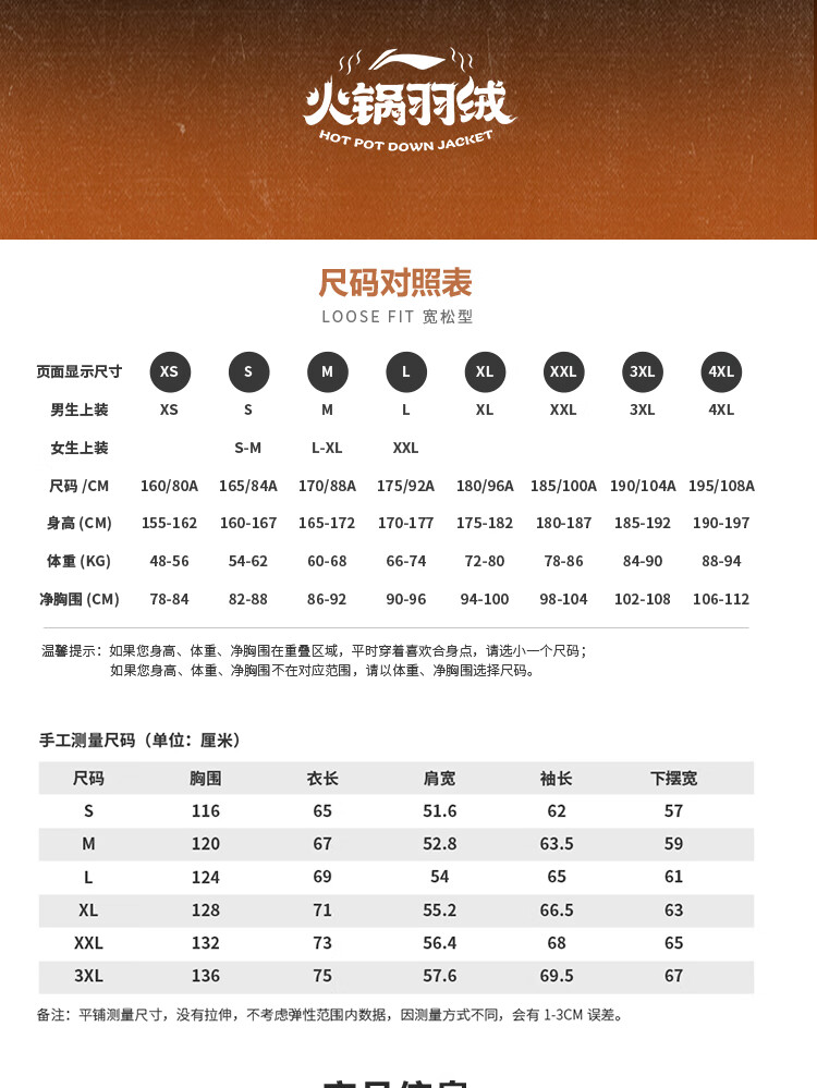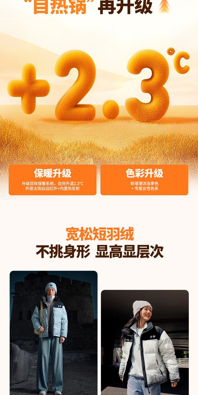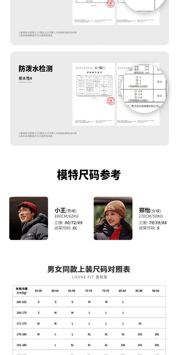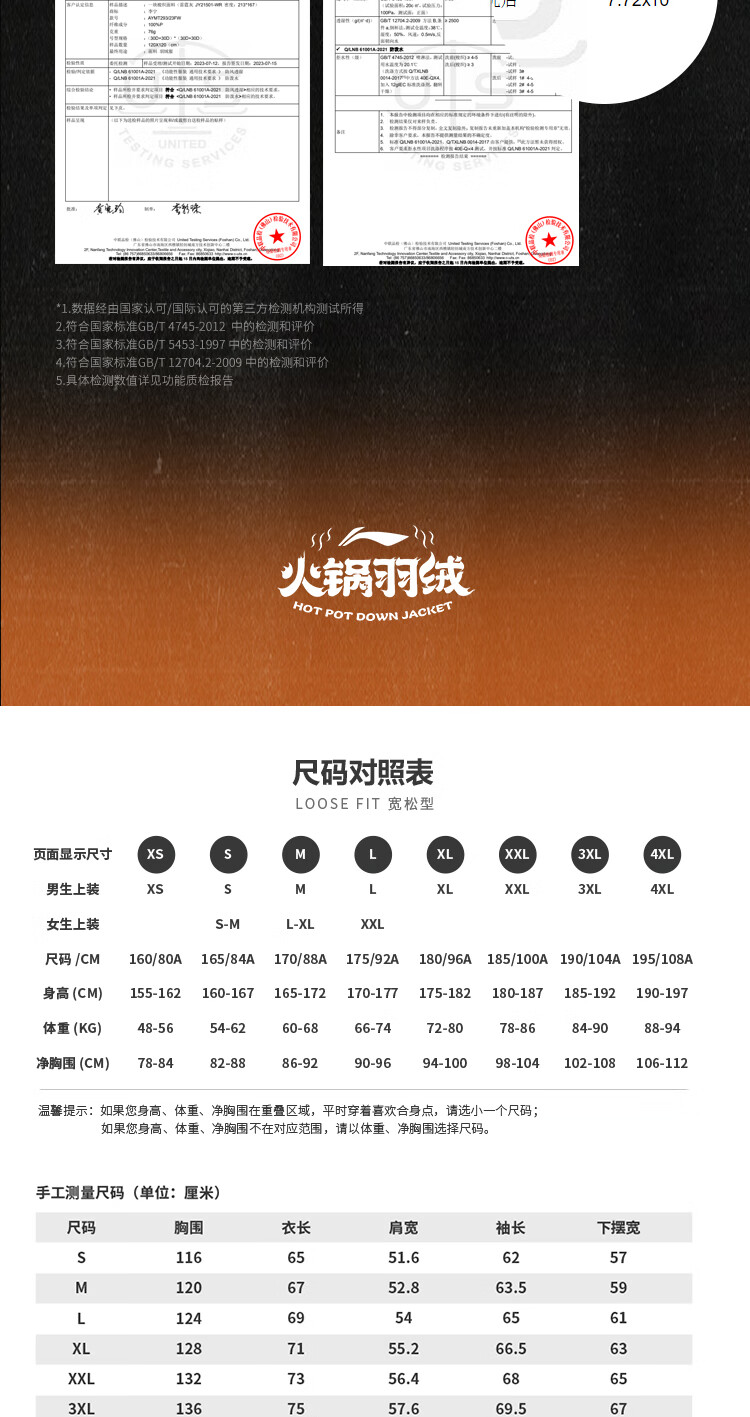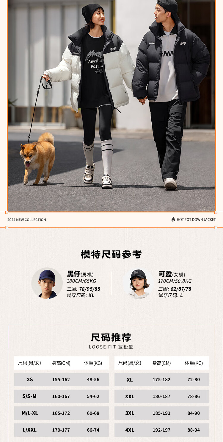 李宁溯之东方羽绒服男女防风透湿科技宽松80%鸭绒保暖外套AYMU239