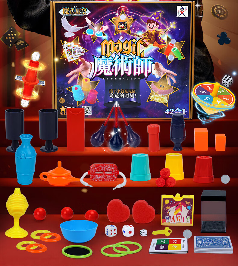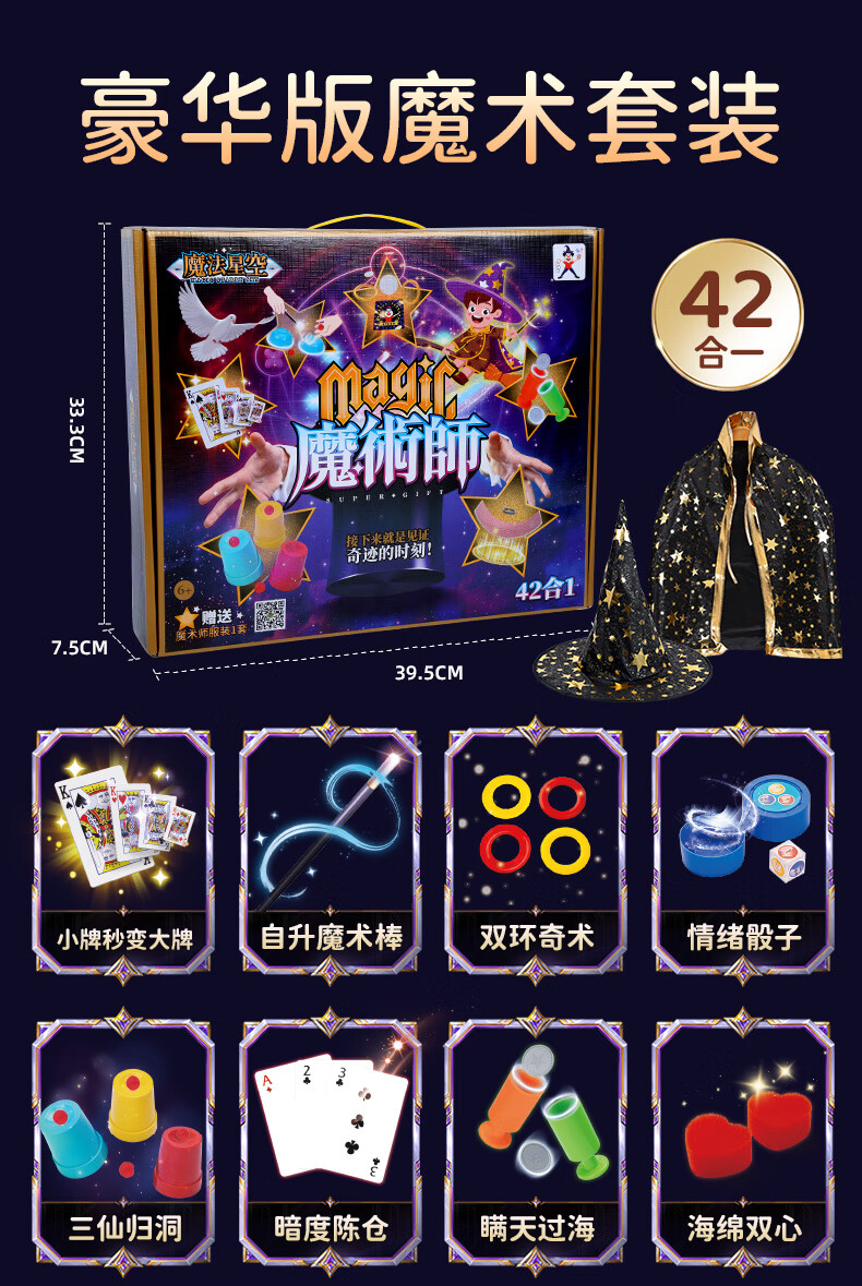 DEERC儿童魔术道具套装礼盒圣诞节礼物6-7-10岁男孩玩具8-12岁女孩生日 蛇年限定【42道具+135效果】 表演道具2025火的玩具最