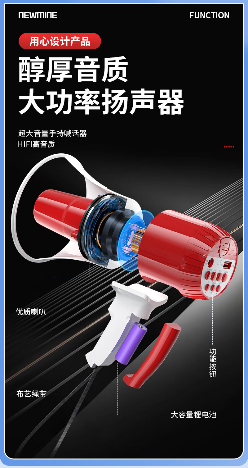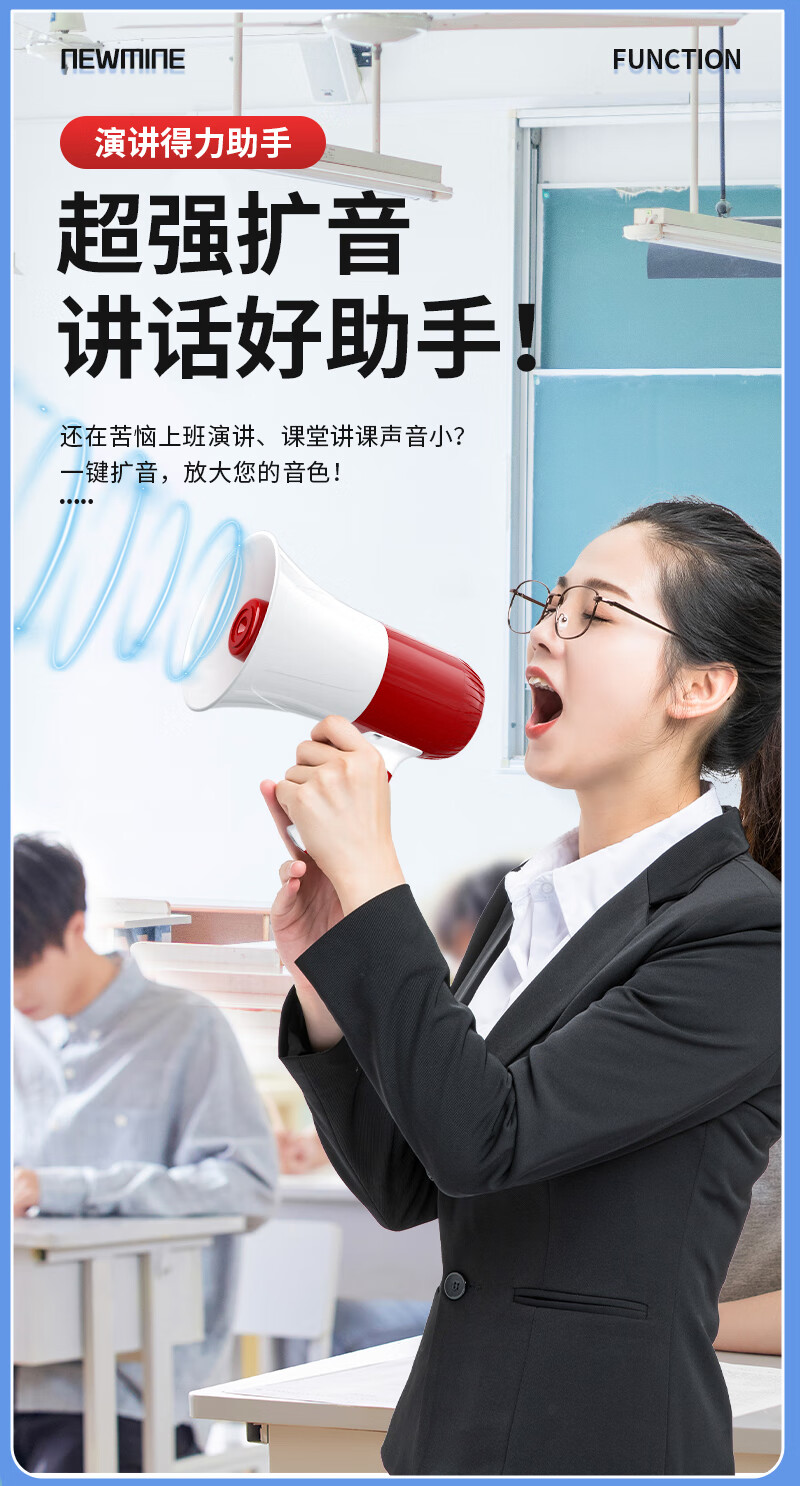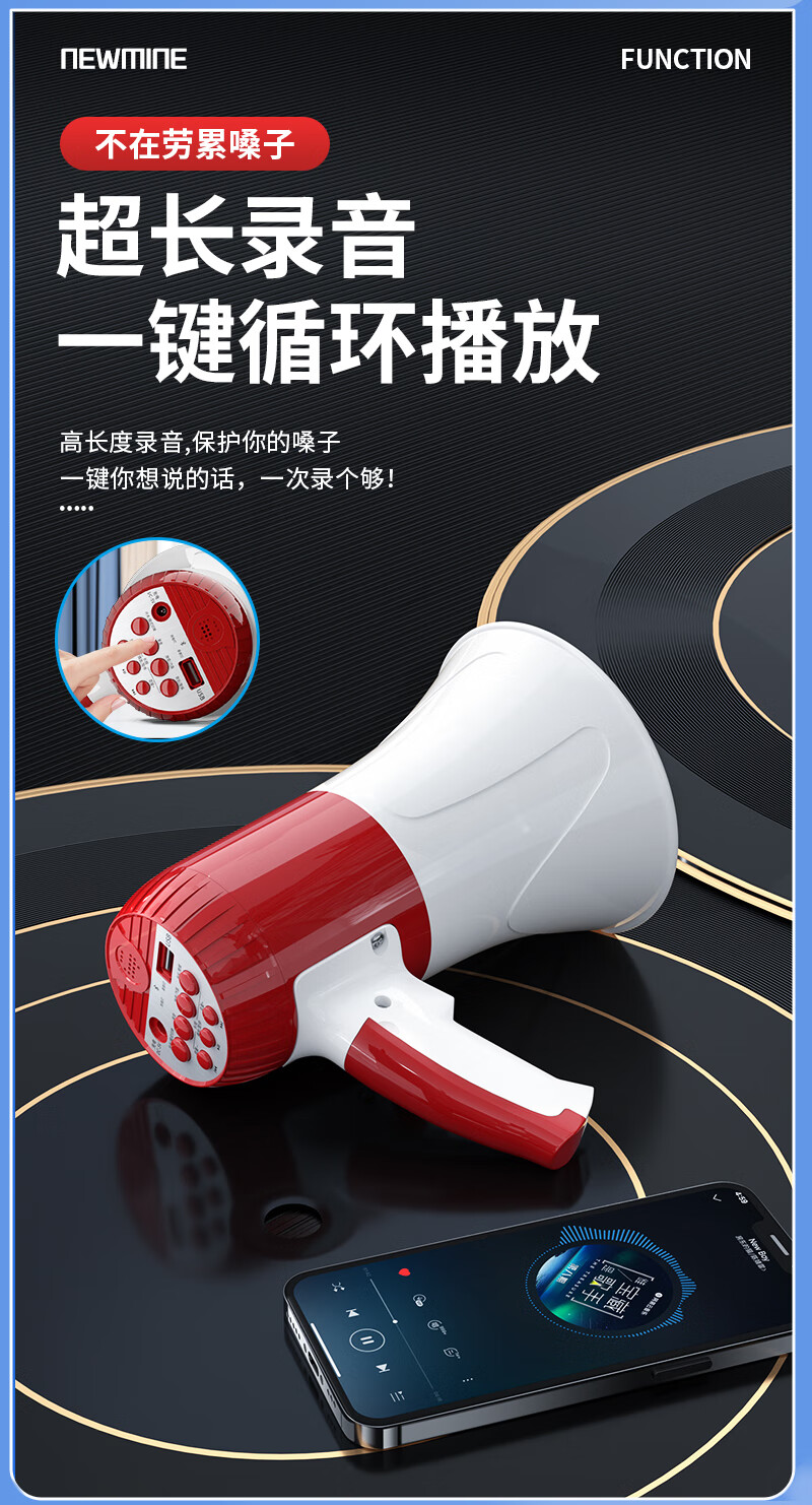 纽曼639U大喇叭扩音器手持喊话器录音扬声器户外宣传摆地摊可充电插卡U盘大声公便携式高音蓝牙叫卖器
