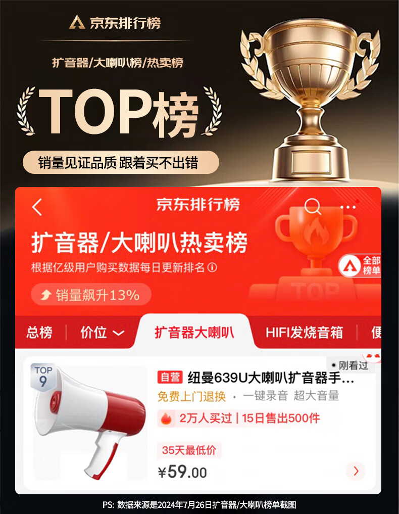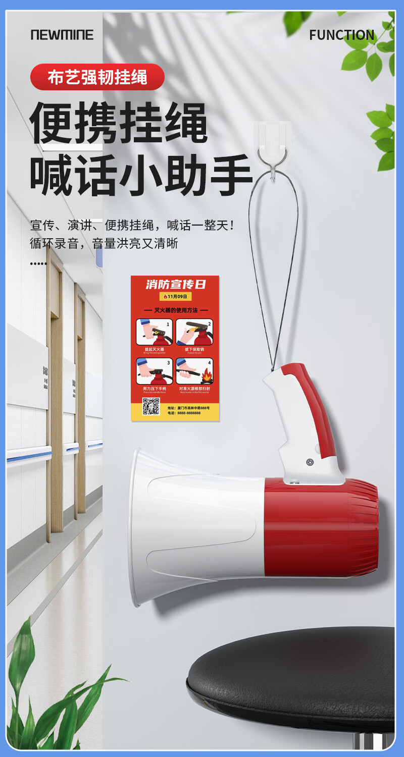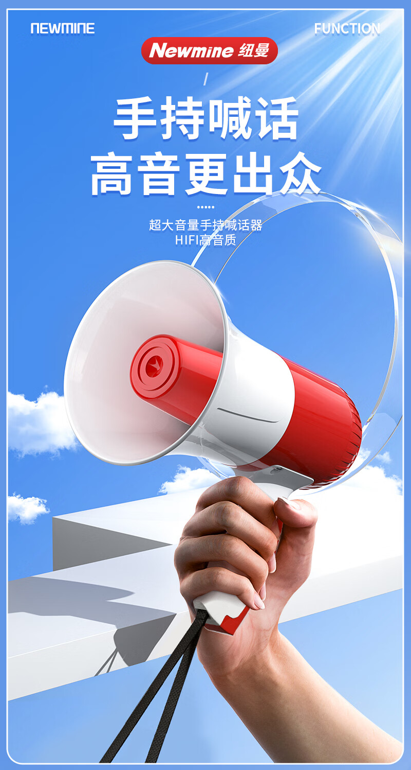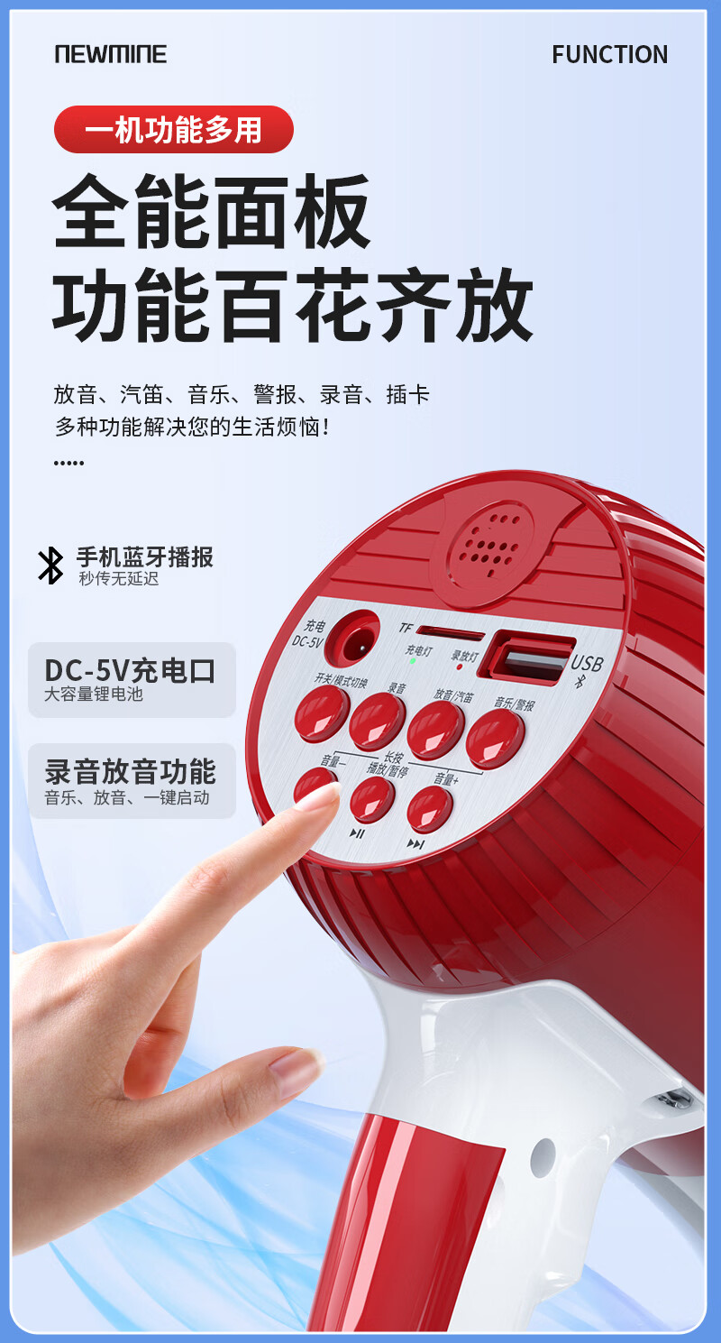 纽曼639U大喇叭扩音器手持喊话器录音扬声器户外宣传摆地摊可充电插卡U盘大声公便携式高音蓝牙叫卖器