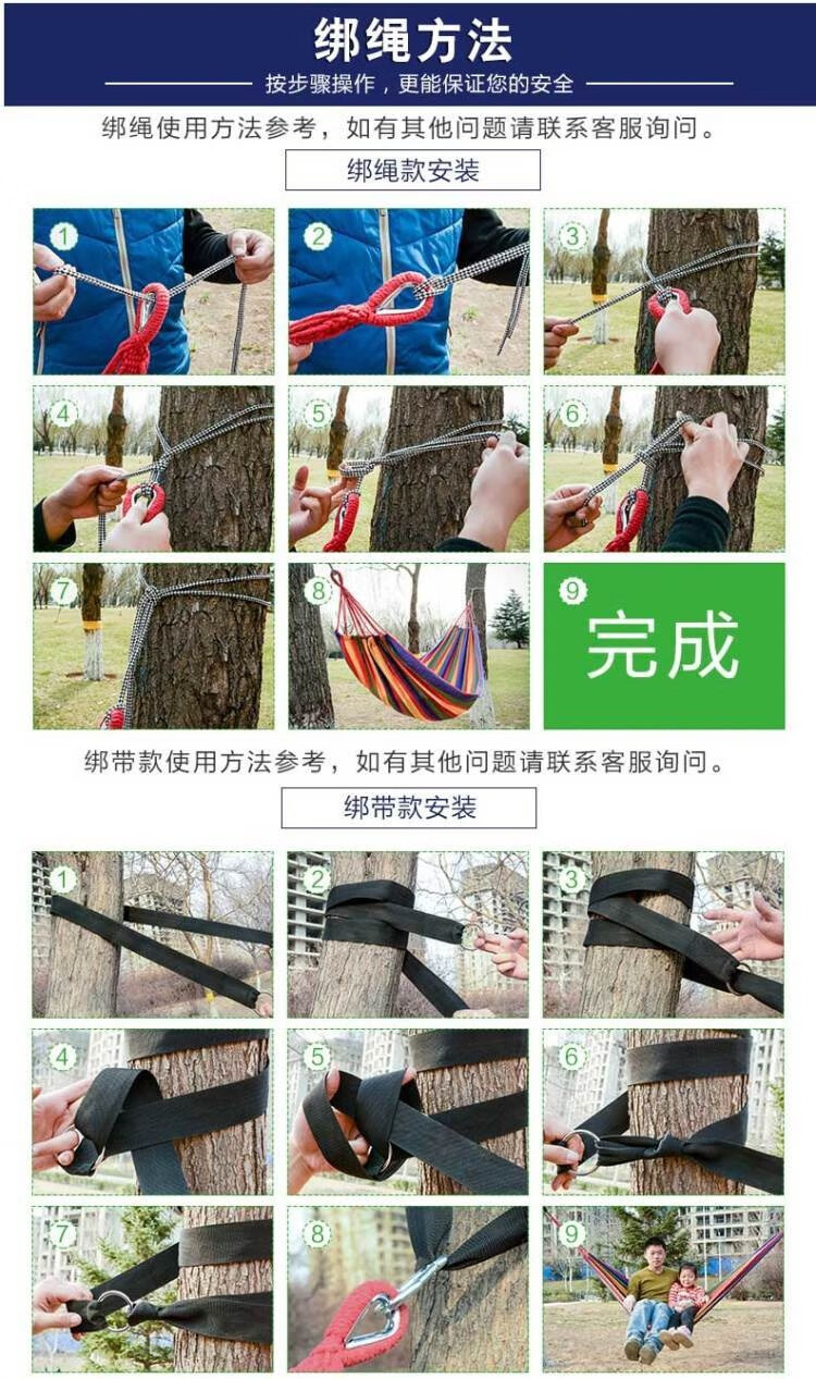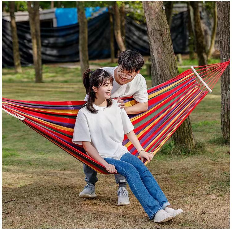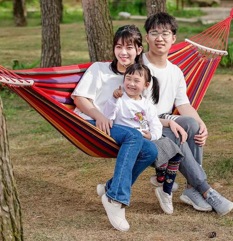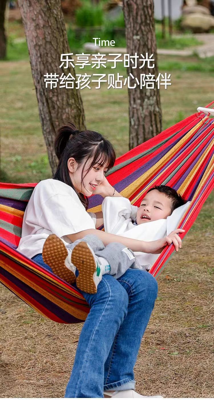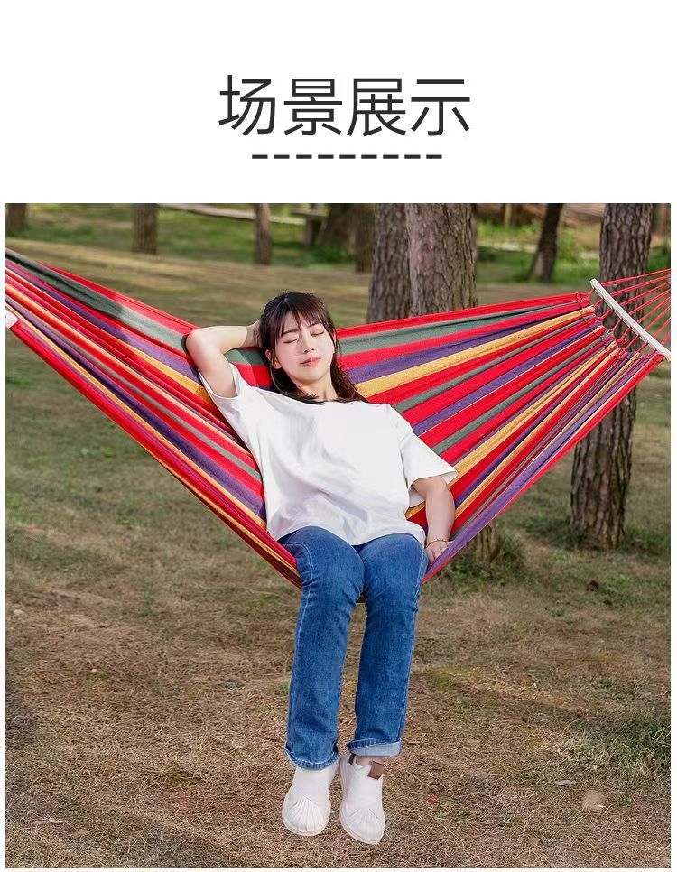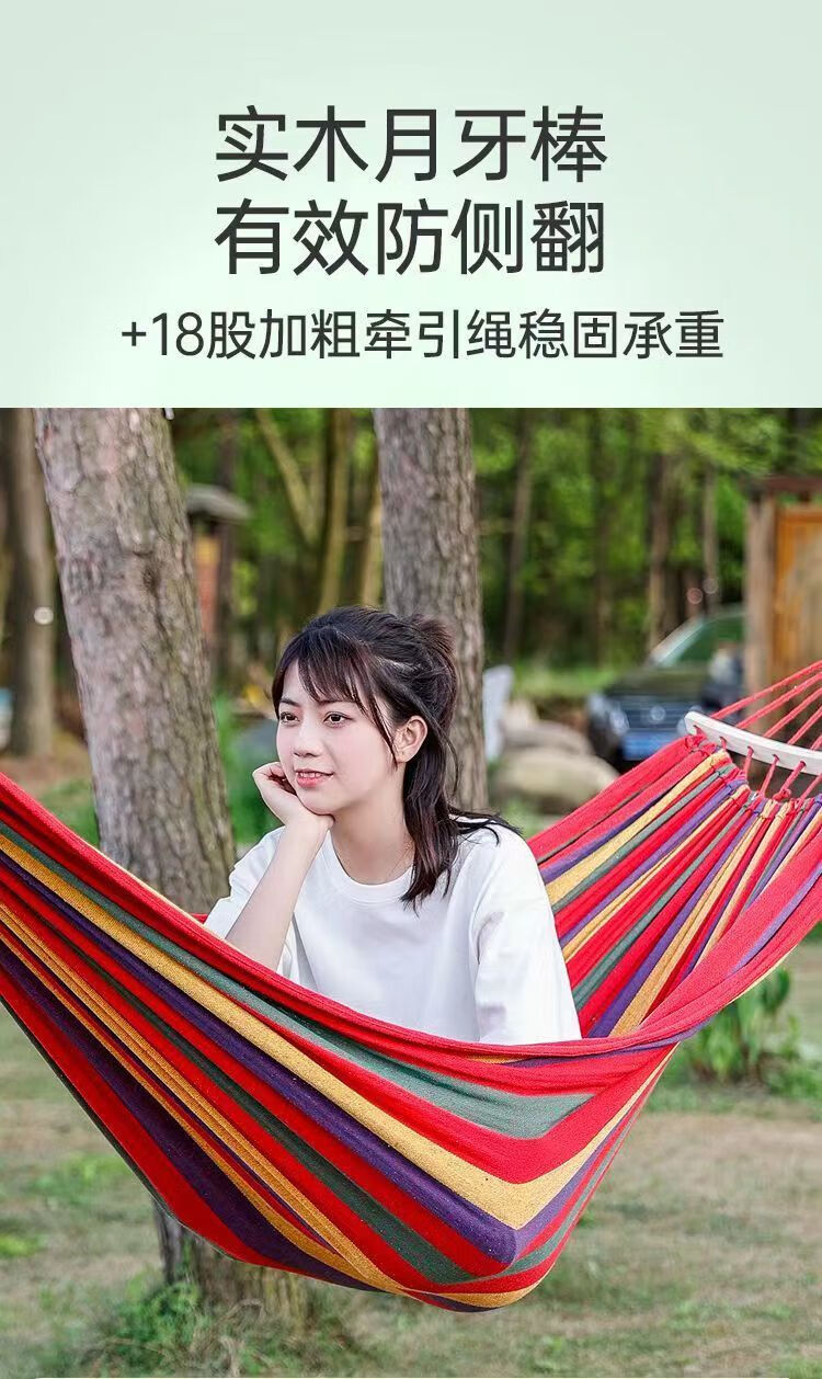 OIMG吊床户外防侧翻野外露营摇床秋千成人儿童单双人宿舍挂树睡觉吊椅 【带弯木】绑绳收纳袋鸭嘴扣S扣+ 红色单人260*100厘米