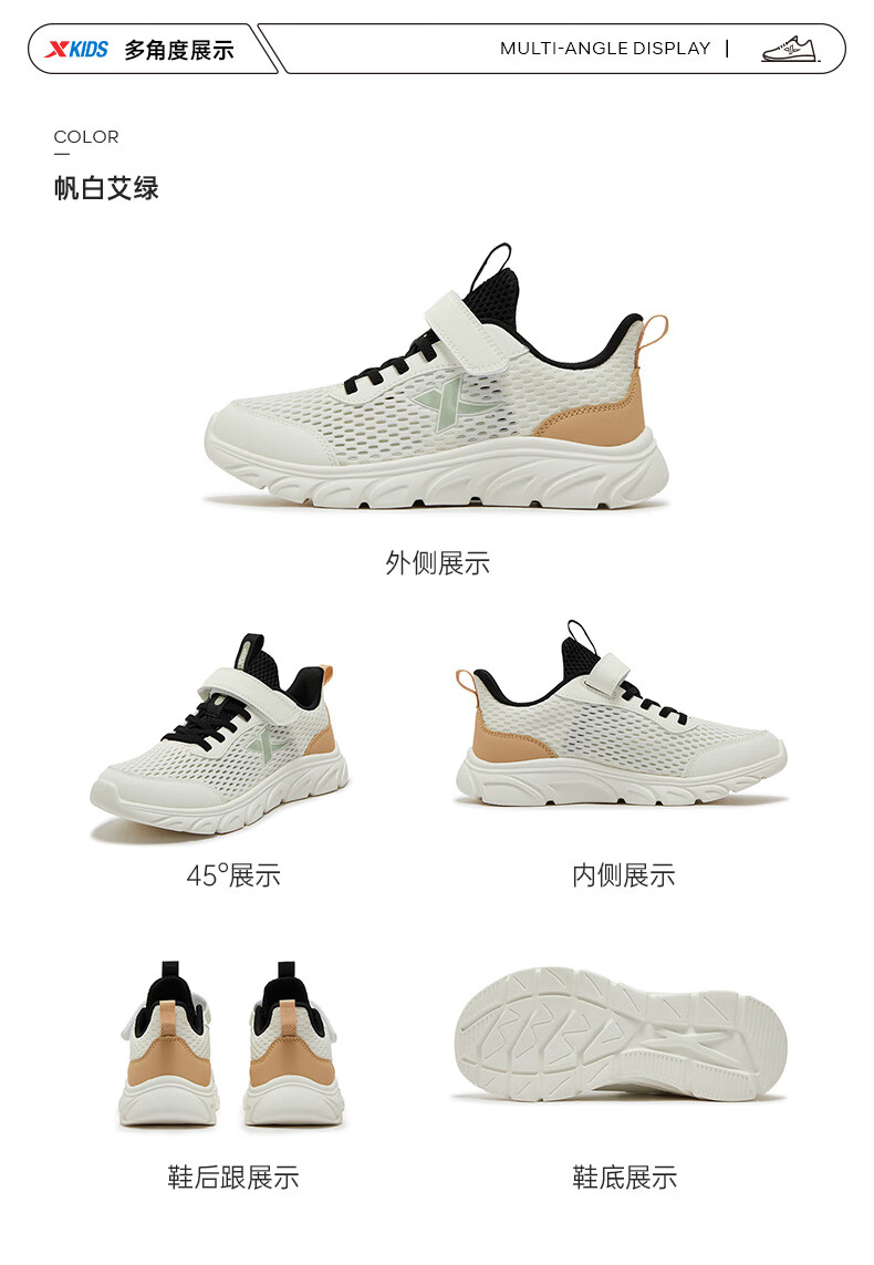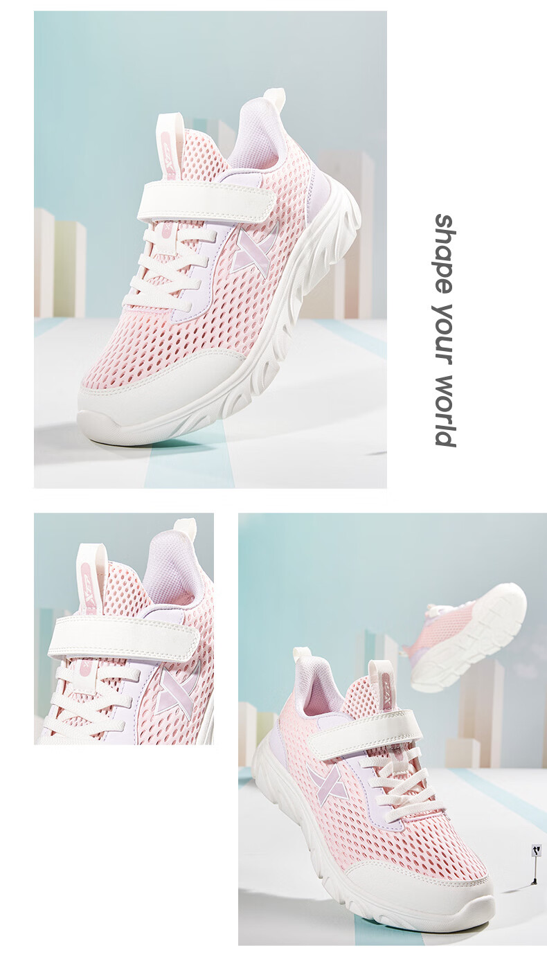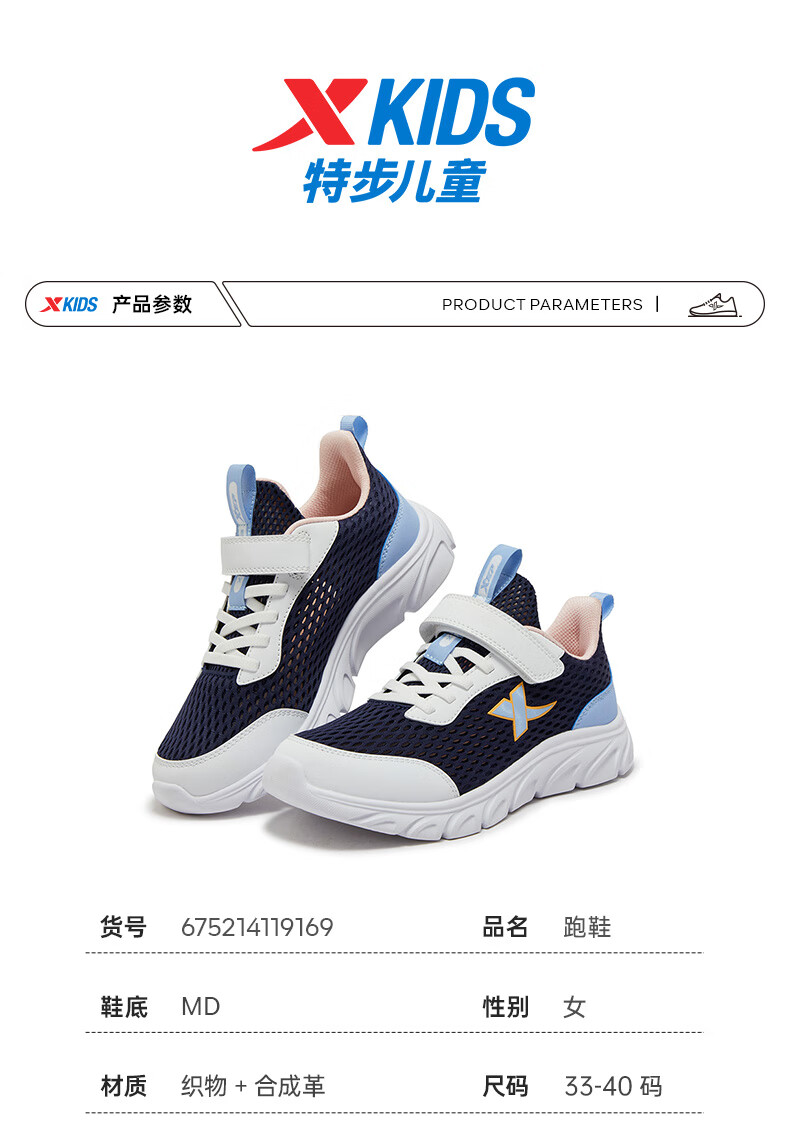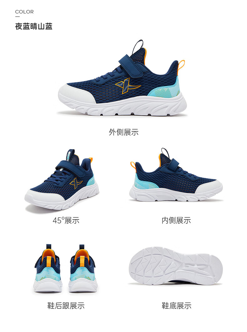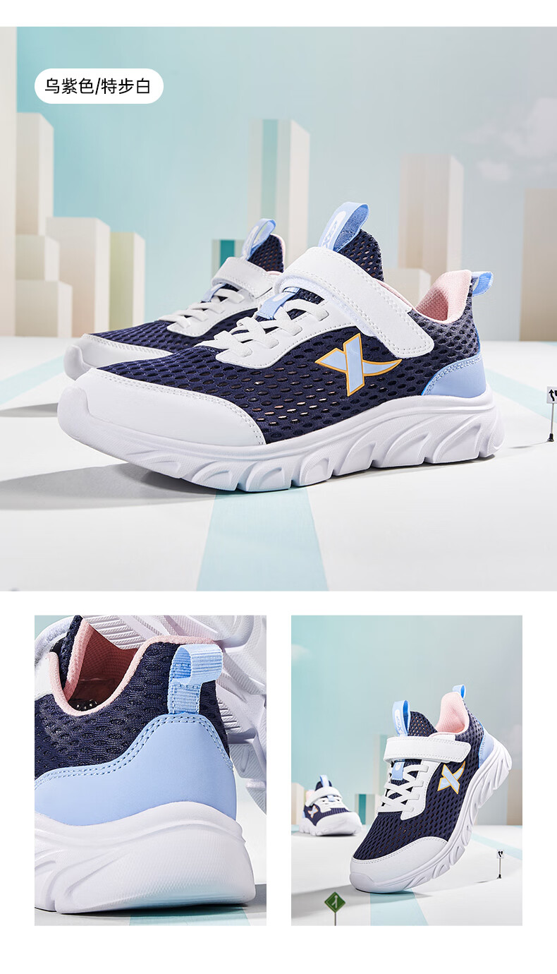 特步儿童童鞋男童中大童防滑缓震支撑轻便舒适四季百搭网革魔术贴跑鞋 夜蓝/晴山蓝 【密网款】 38 码