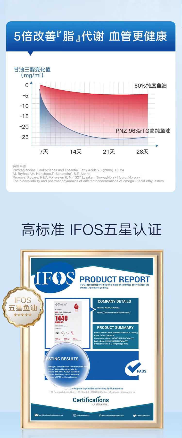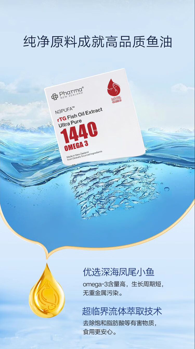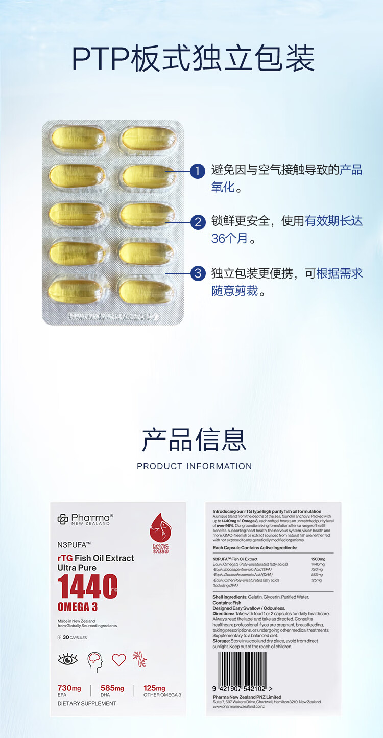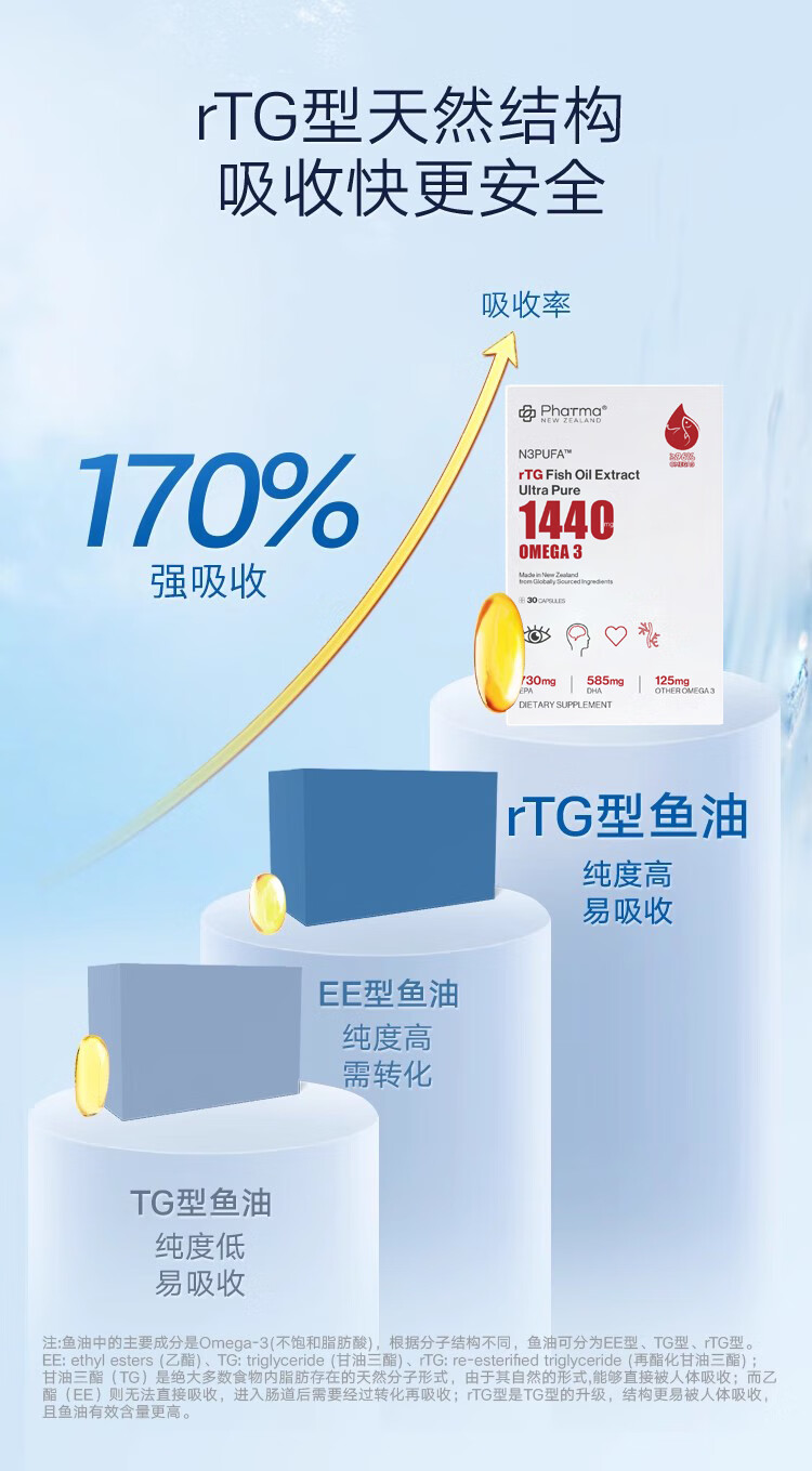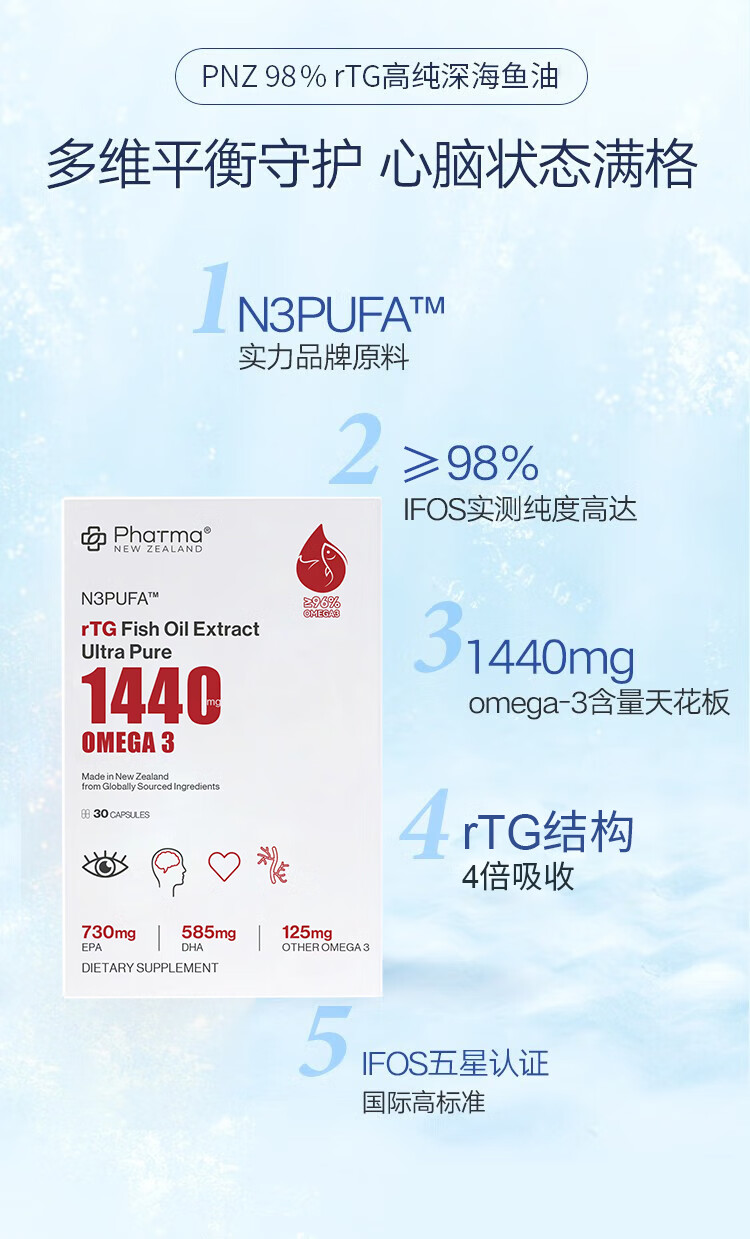 PhatmaPNZ98%高纯度深海鱼油胶囊1440mg备考Omega-3呵护心脑rTG结构DHA