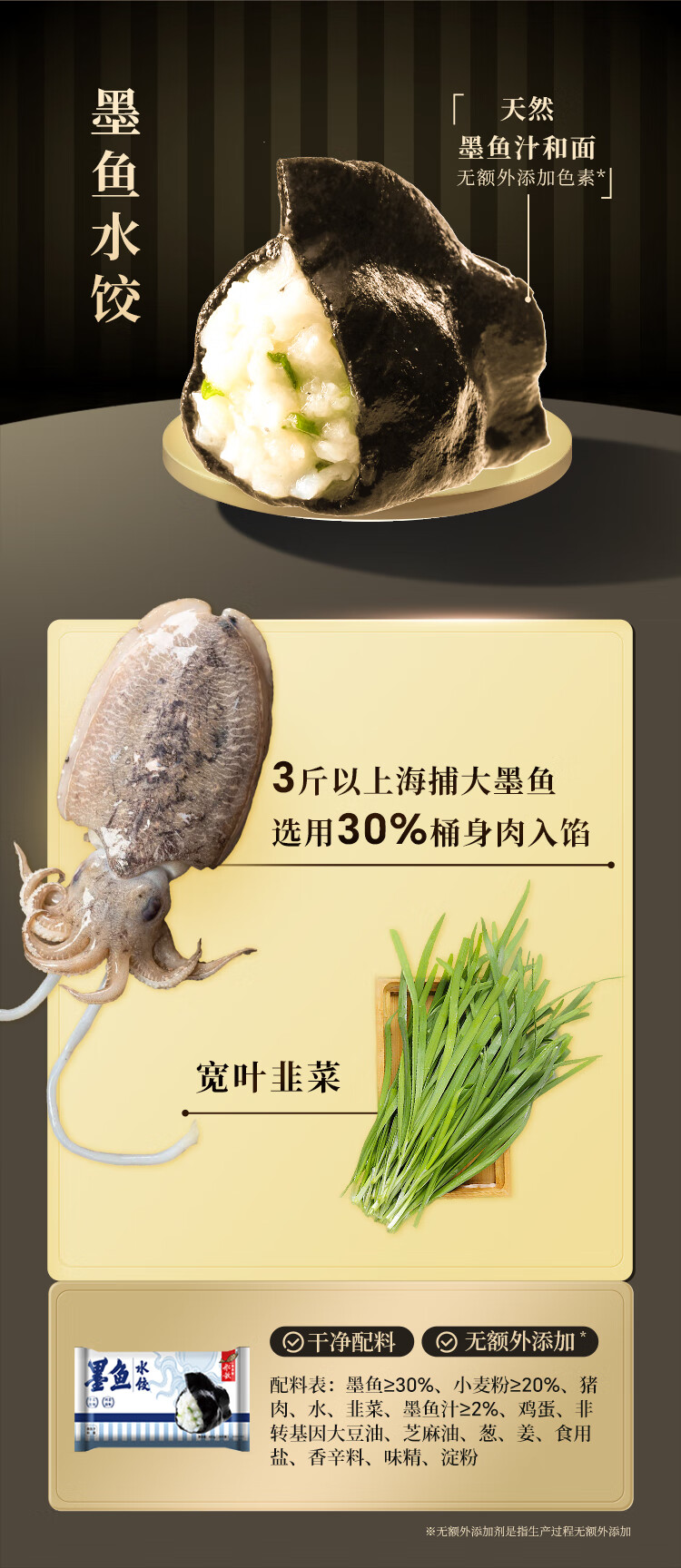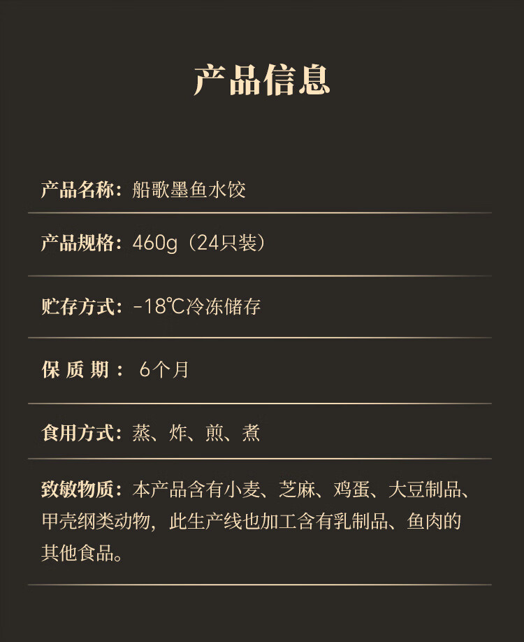 船歌鱼水饺 墨鱼水饺460g/袋 24只 健康早餐夜宵 海鲜手工速冻饺子 生鲜速食