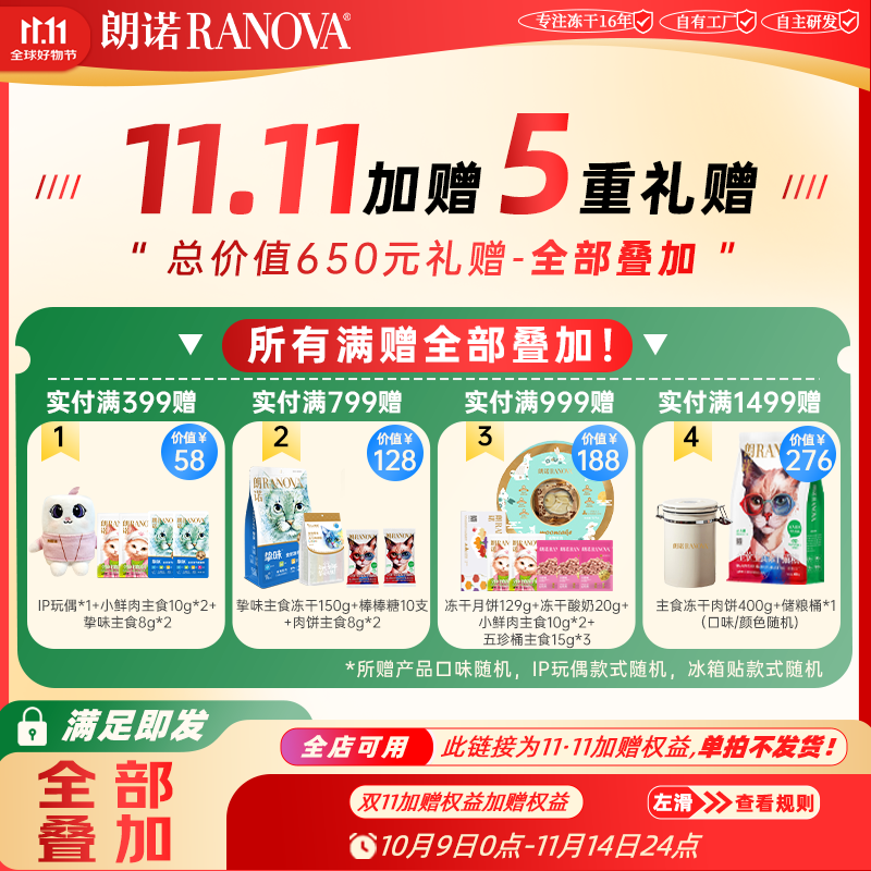 朗诺(RANOVA)朗诺冻干主粮150g猫粮冻干生骨肉主食冻干 鸡肉150g*3袋 成猫