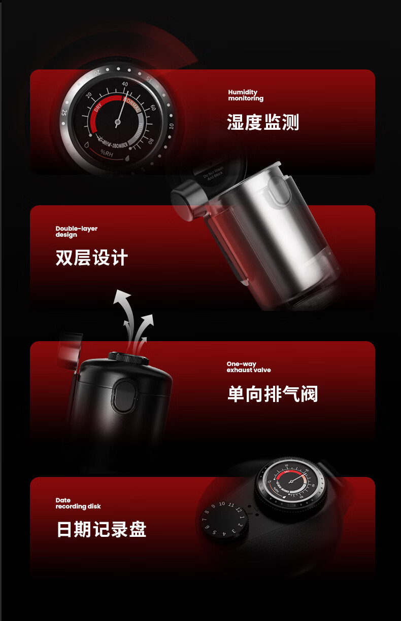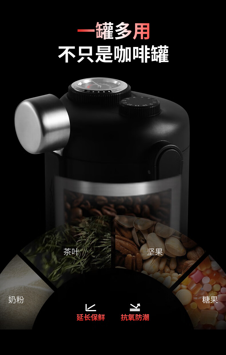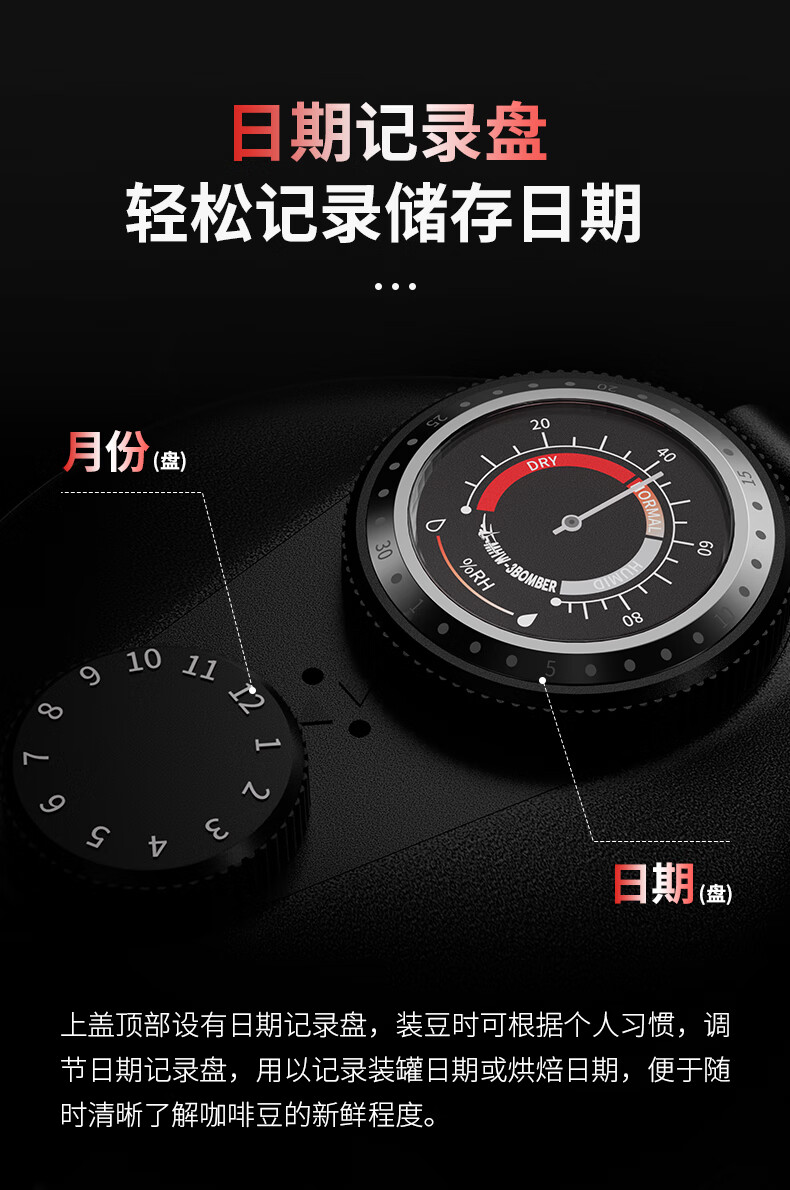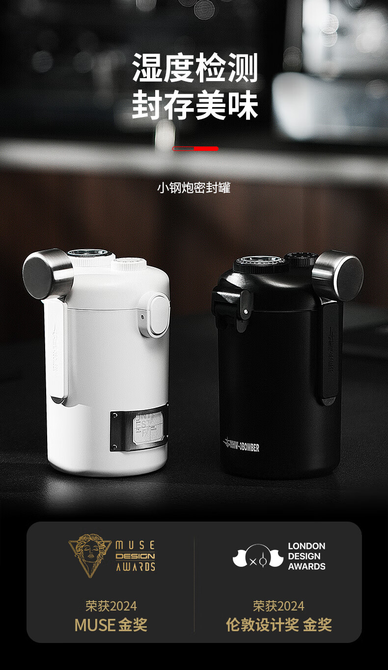 MHW-3BOMBER轰炸机小钢炮咖啡豆养豆密封罐 湿度监测双层储物罐 搭不锈钢量勺