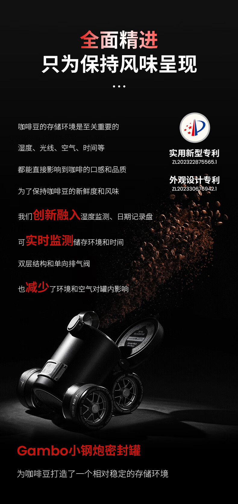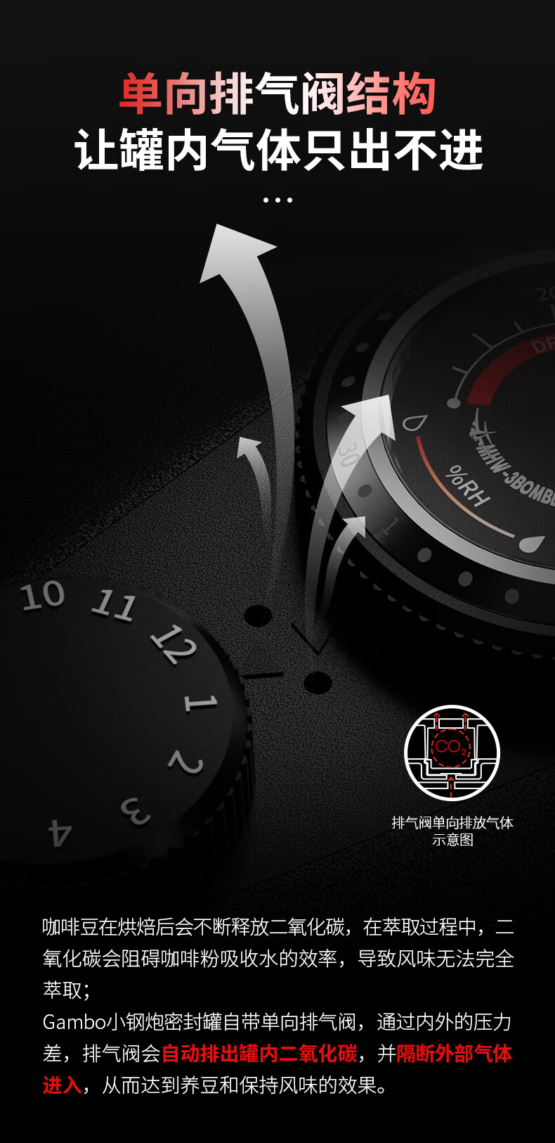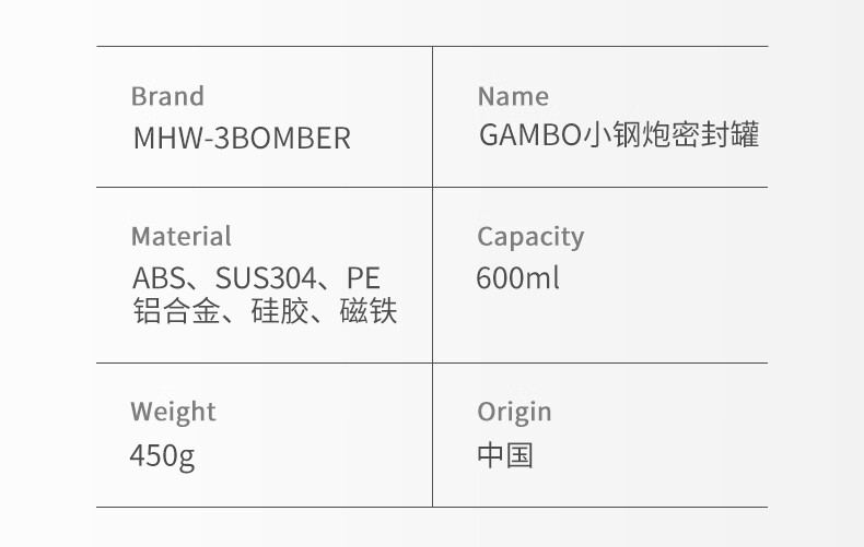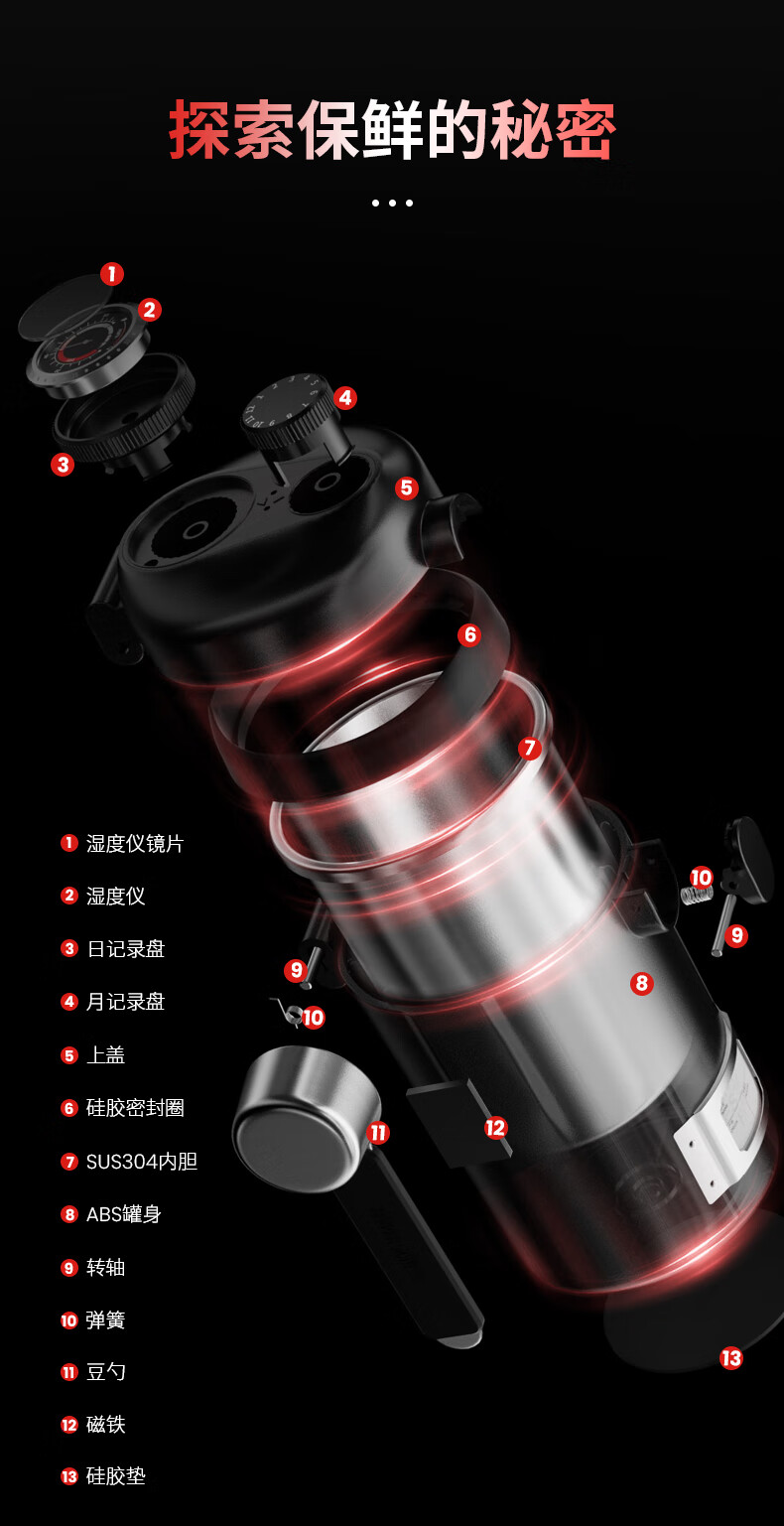 MHW-3BOMBER轰炸机小钢炮咖啡豆养豆密封罐 湿度监测双层储物罐 搭不锈钢量勺