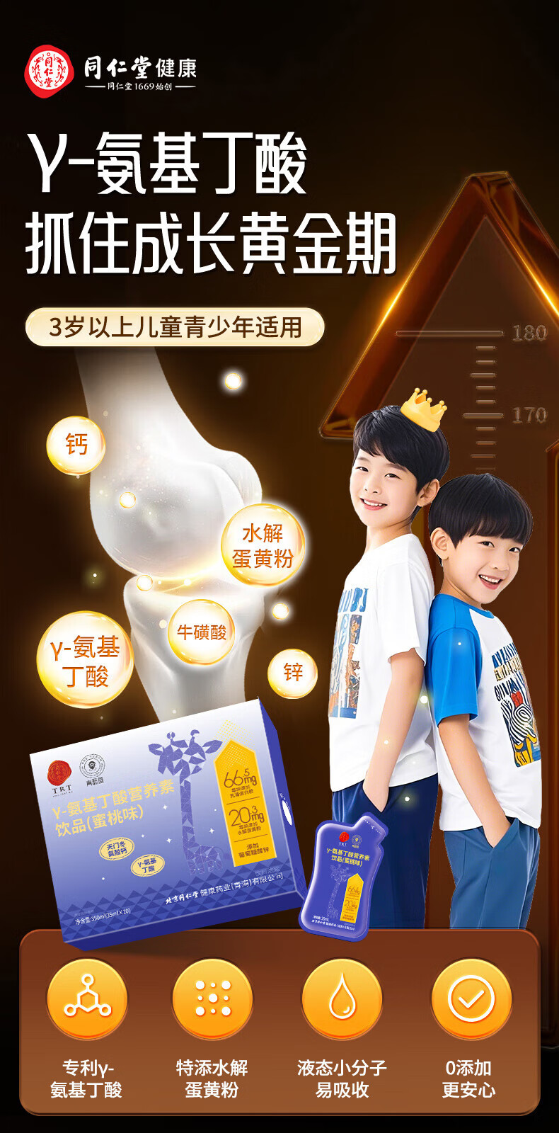 同仁堂(TRT)伽马氨基丁酸γ儿童青少年生长素gaba钙铁锌y氨基丁酸液体钙