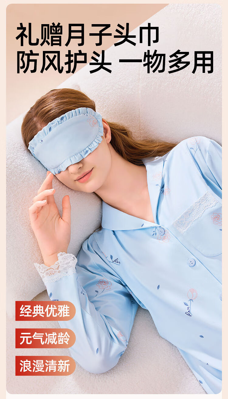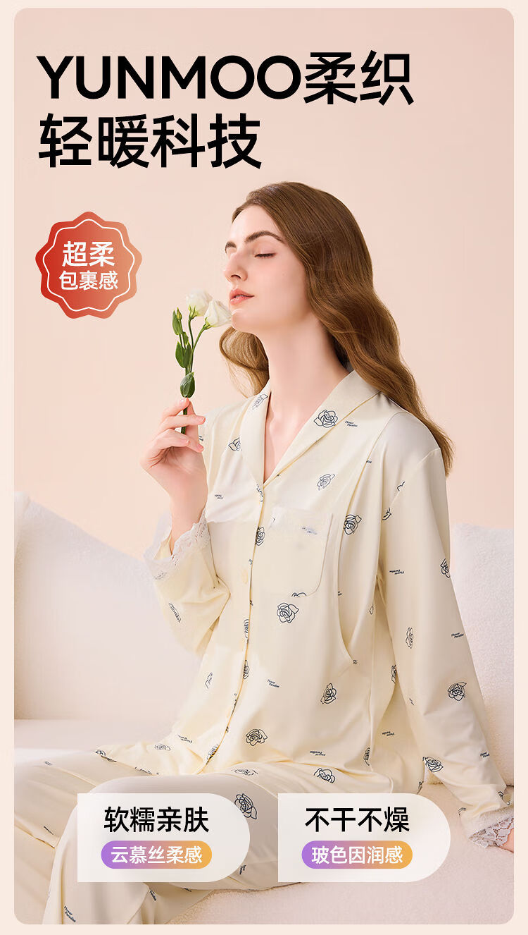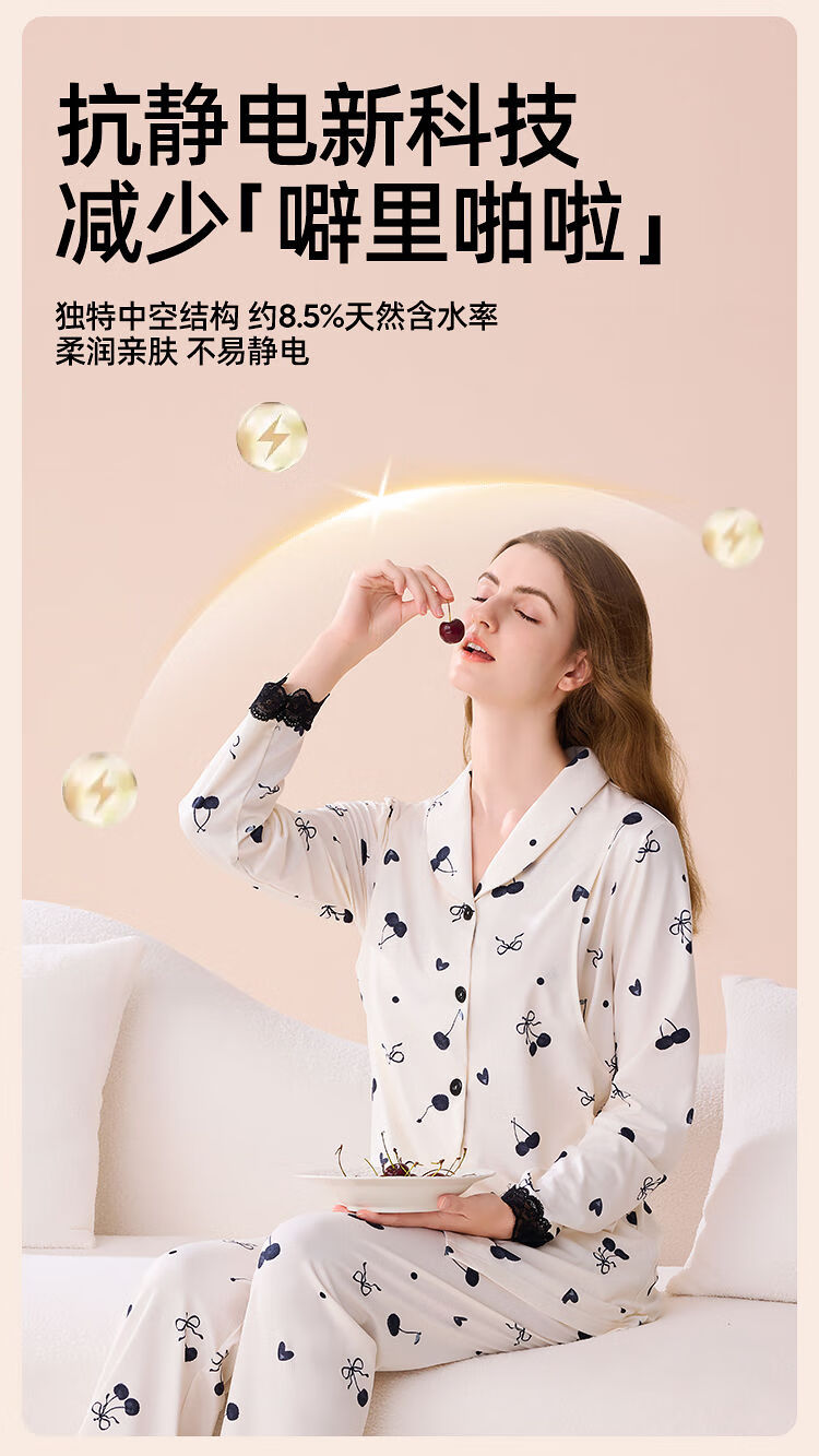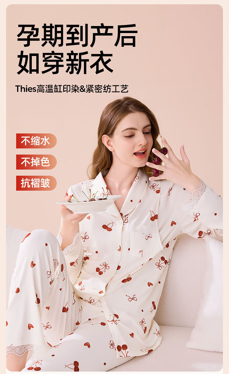 婧麒(JOYNCLEON)【玻色因云慕丝】月子服春秋产后孕妇睡衣哺乳喂奶家居服套装 甜心樱桃280g【适用0-20°】 M