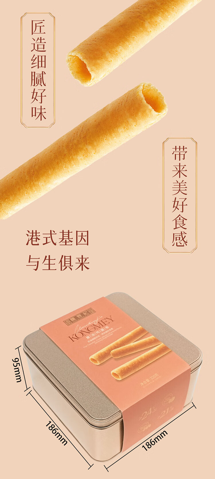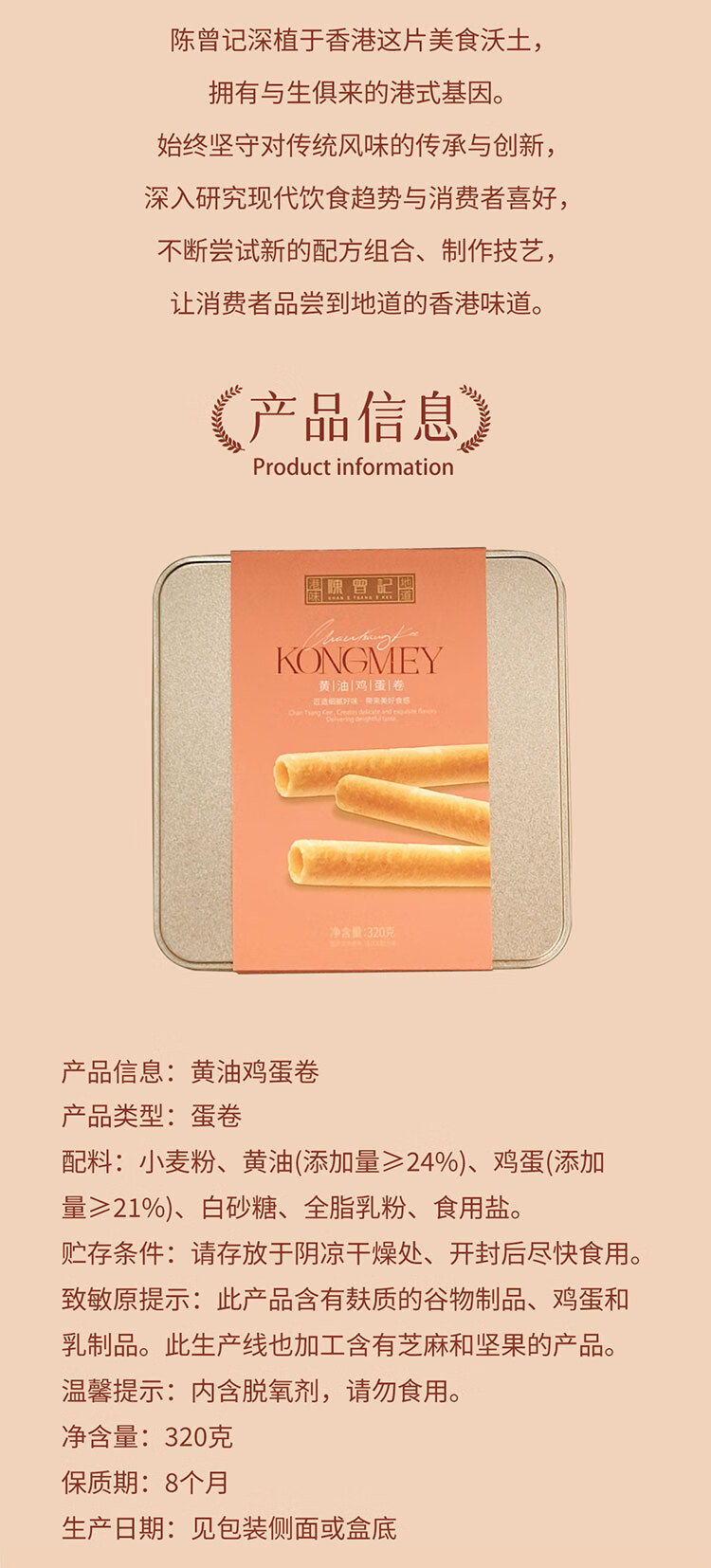 陈曾记黄油蛋卷礼盒装320g香港品牌无人工添加食品孕妇儿童休闲零食特产 经典铁罐装