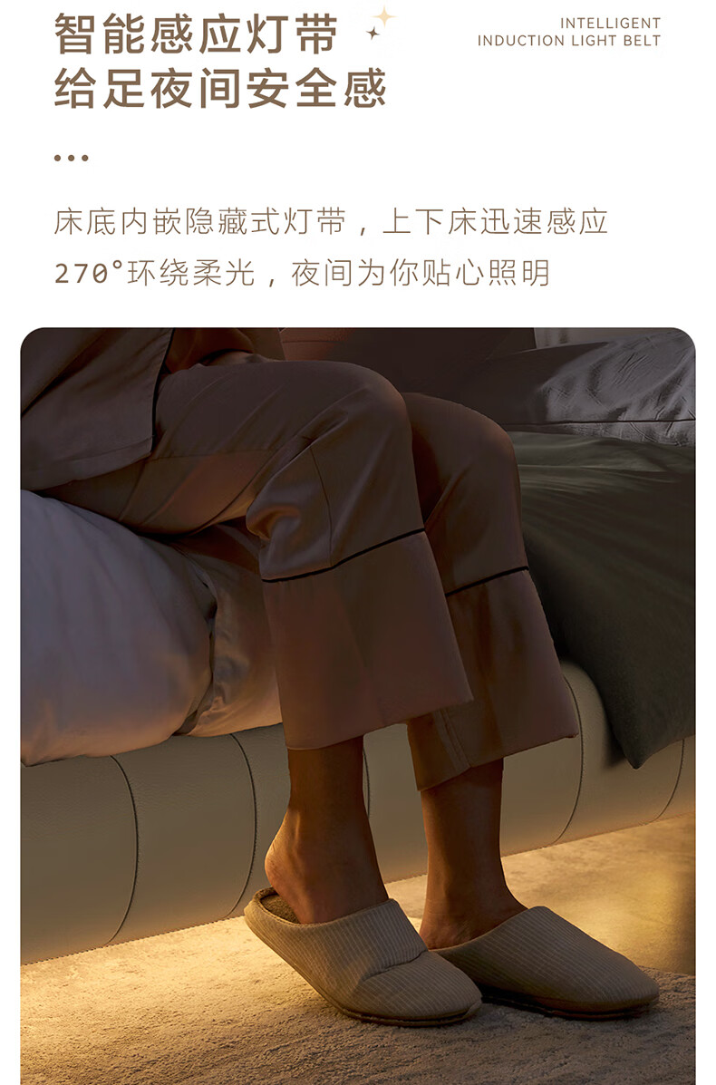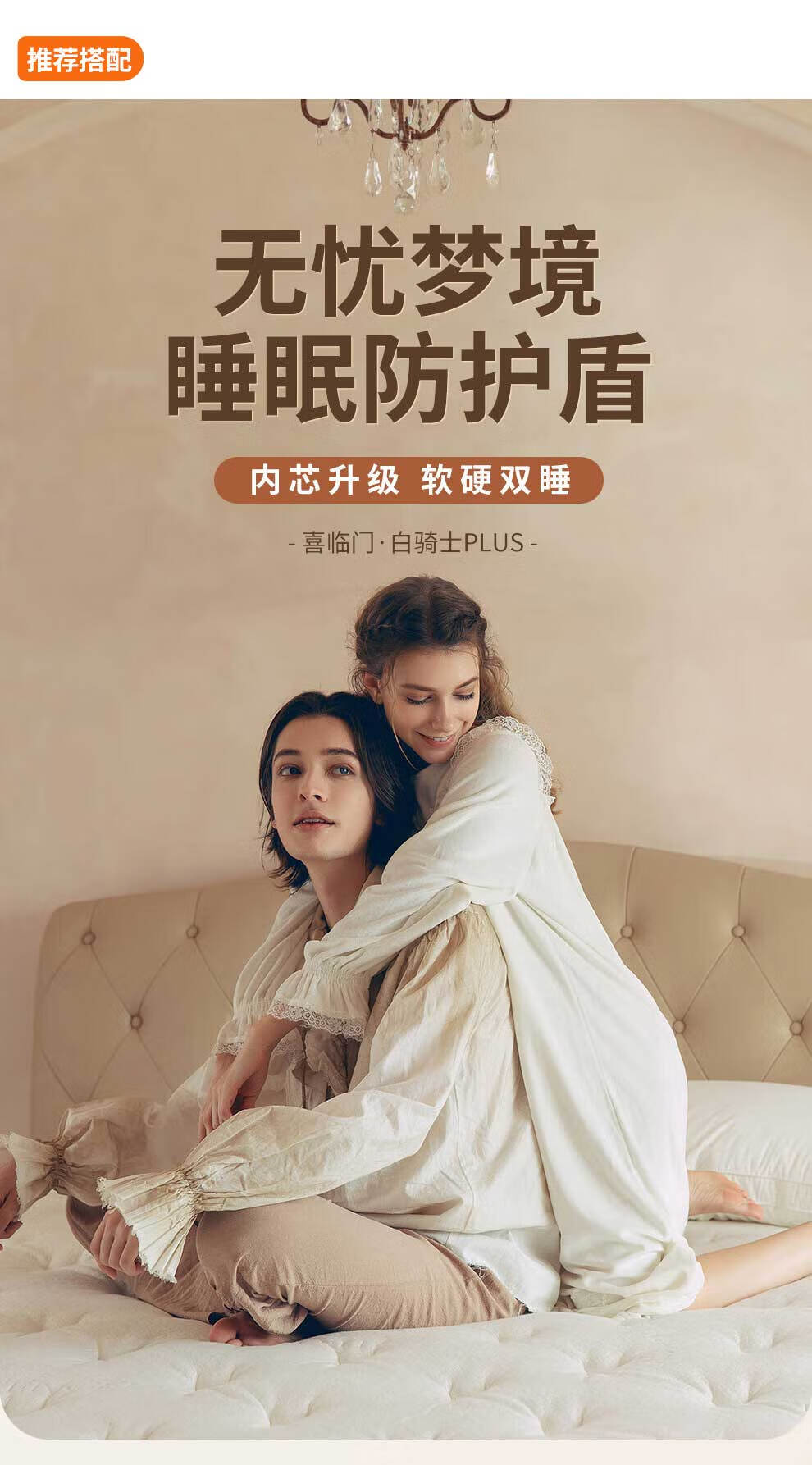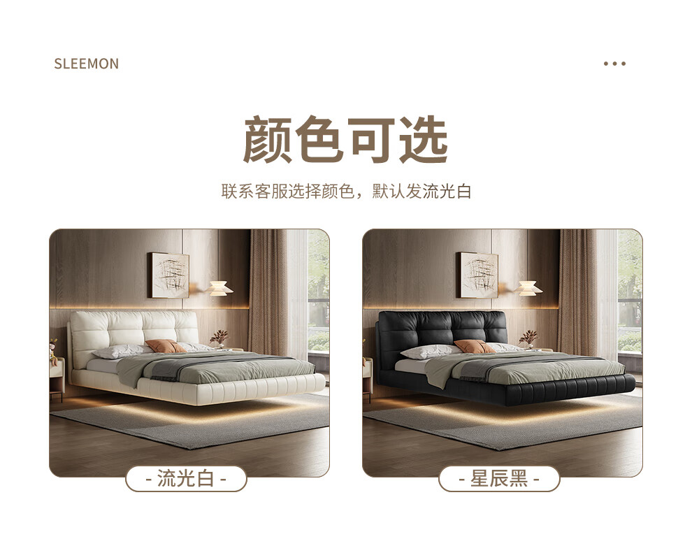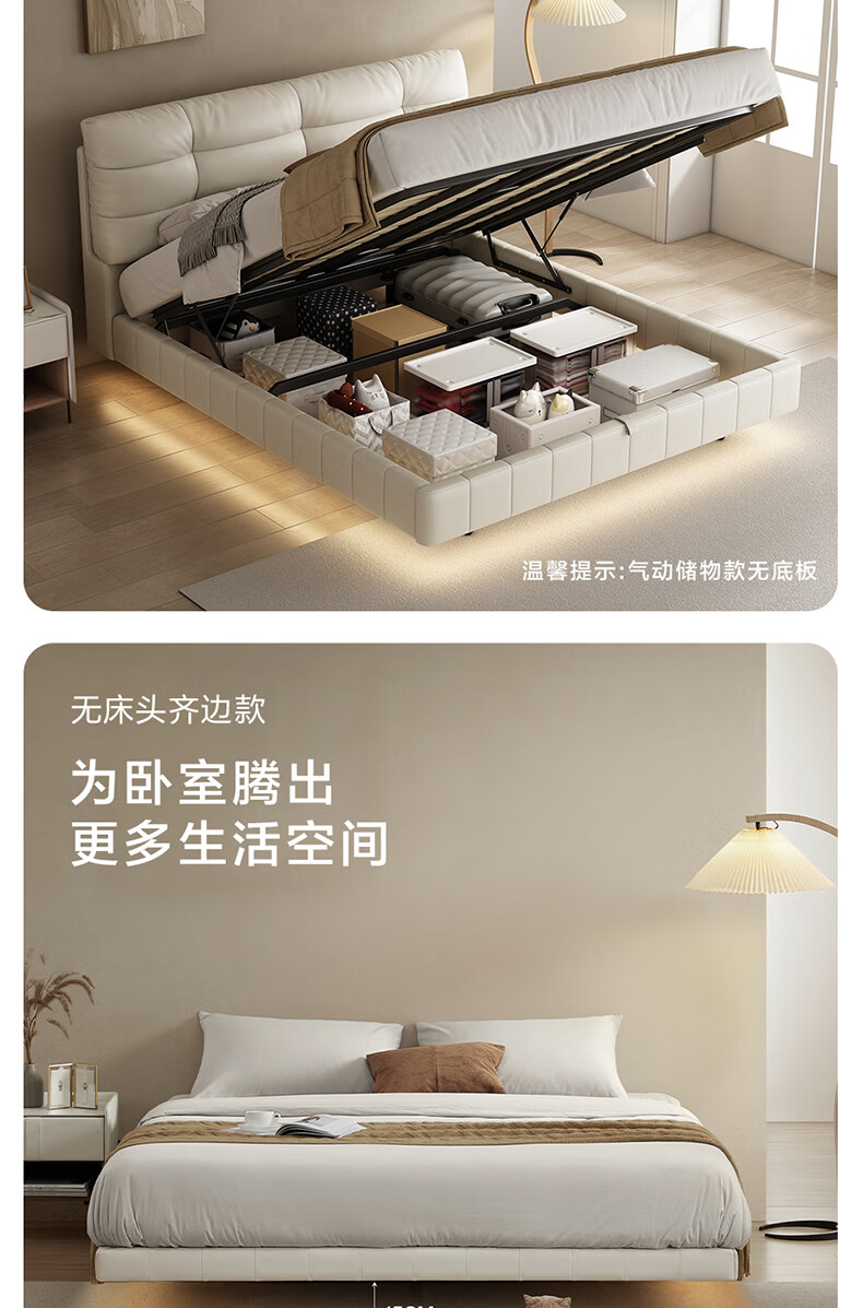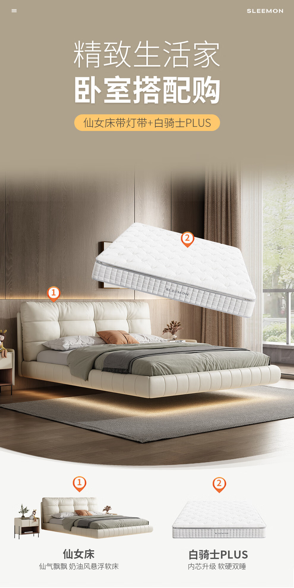 喜临门奶油风悬浮双人大床 白骑士plus 仙女床带灯带皮床1.8*2米