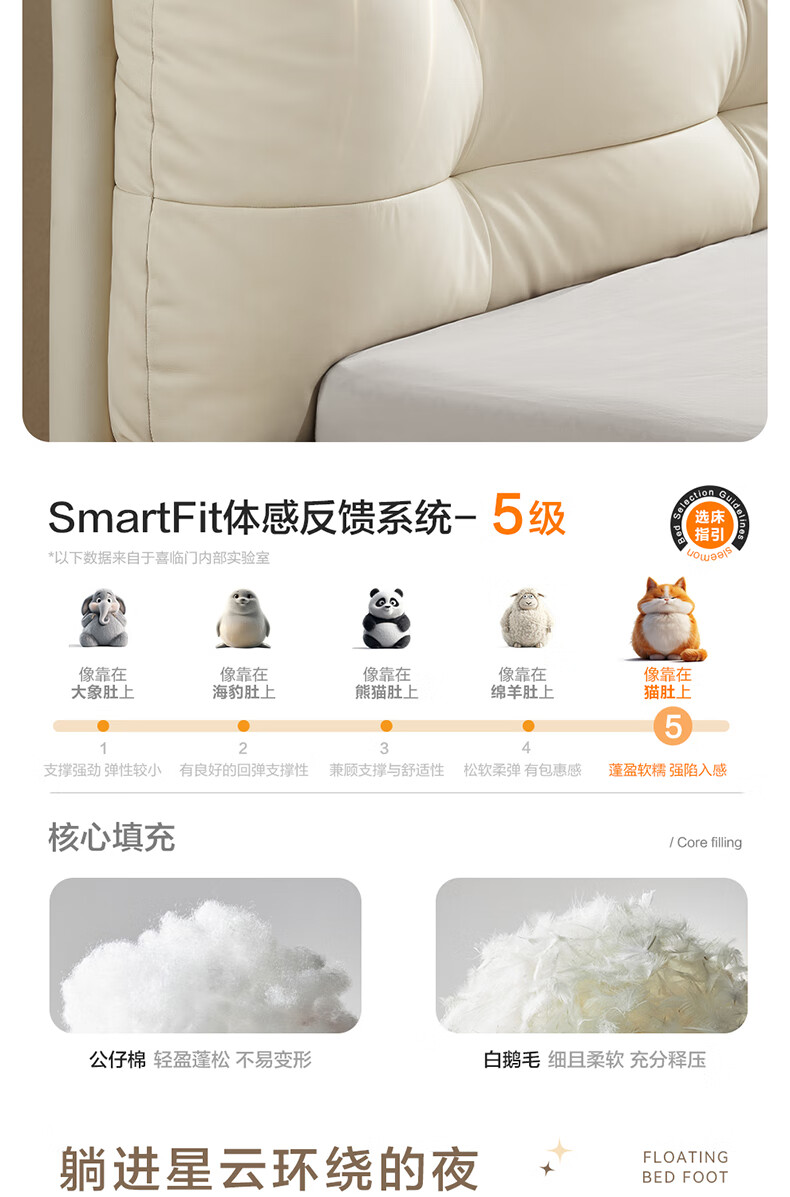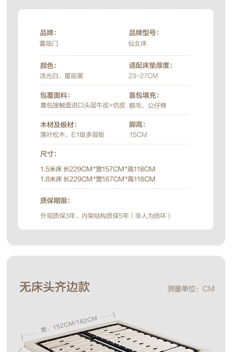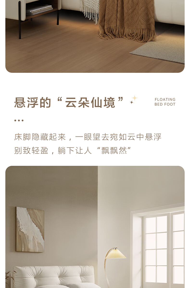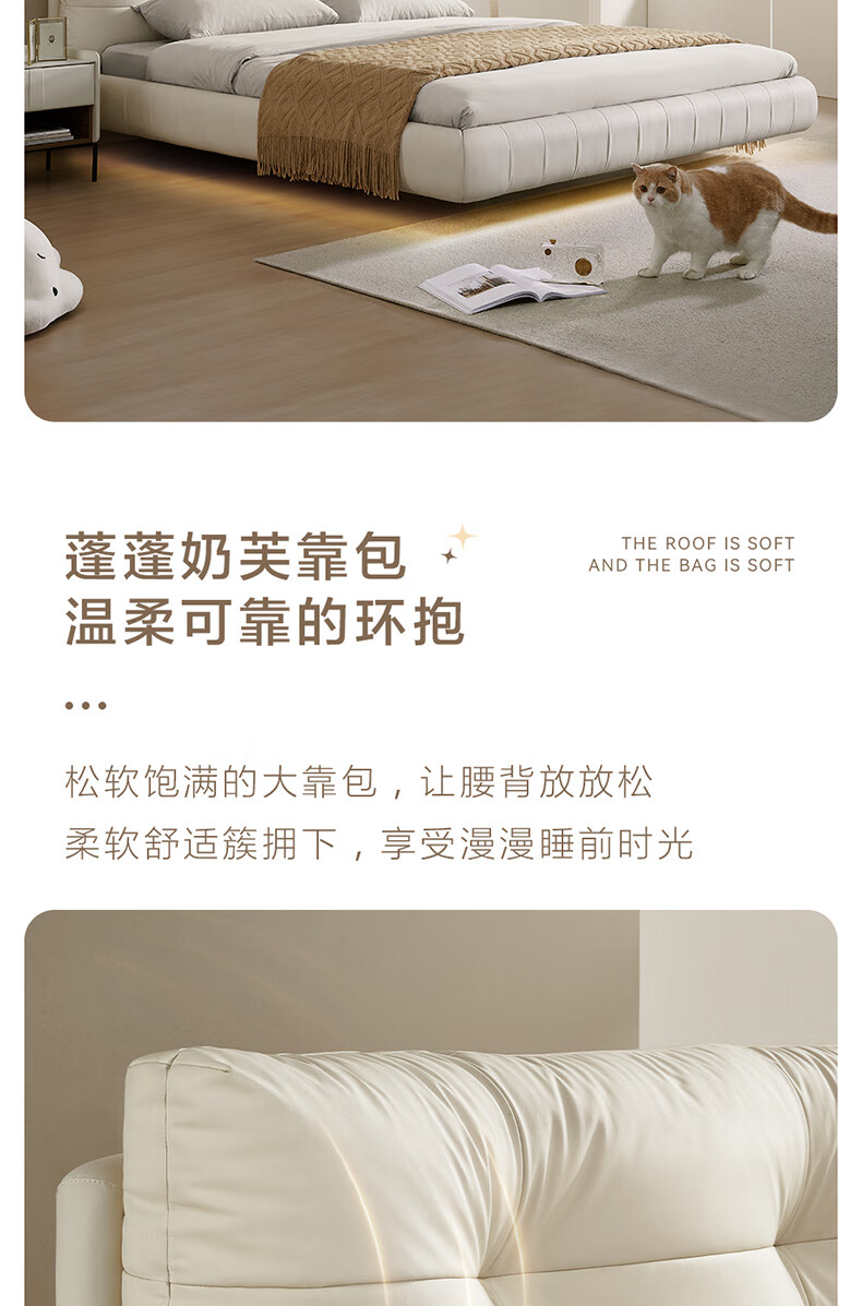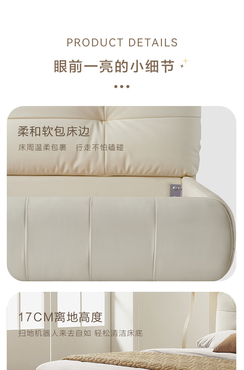 喜临门奶油风悬浮双人大床 白骑士plus 仙女床带灯带皮床1.8*2米