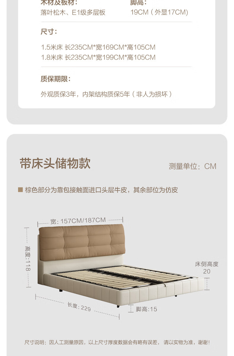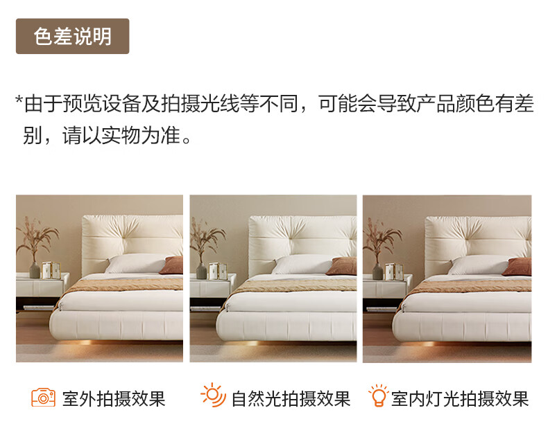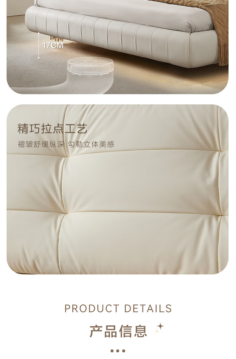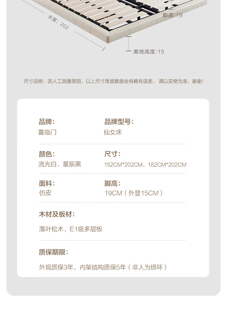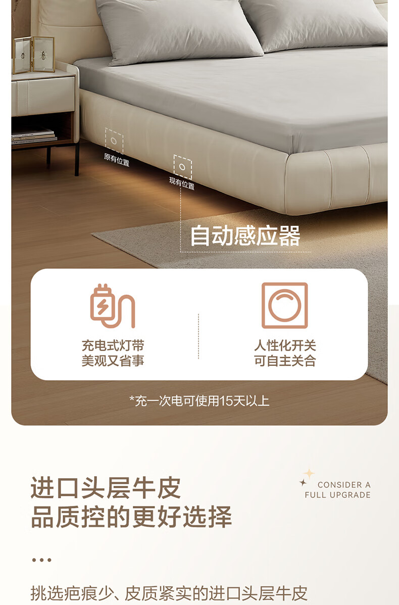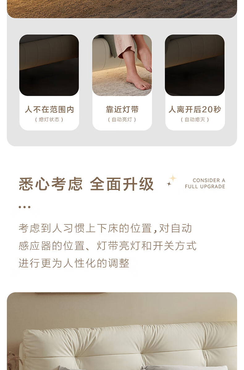 喜临门奶油风悬浮双人大床 白骑士plus 仙女床带灯带皮床1.8*2米