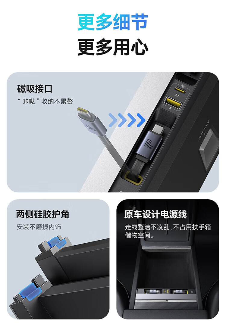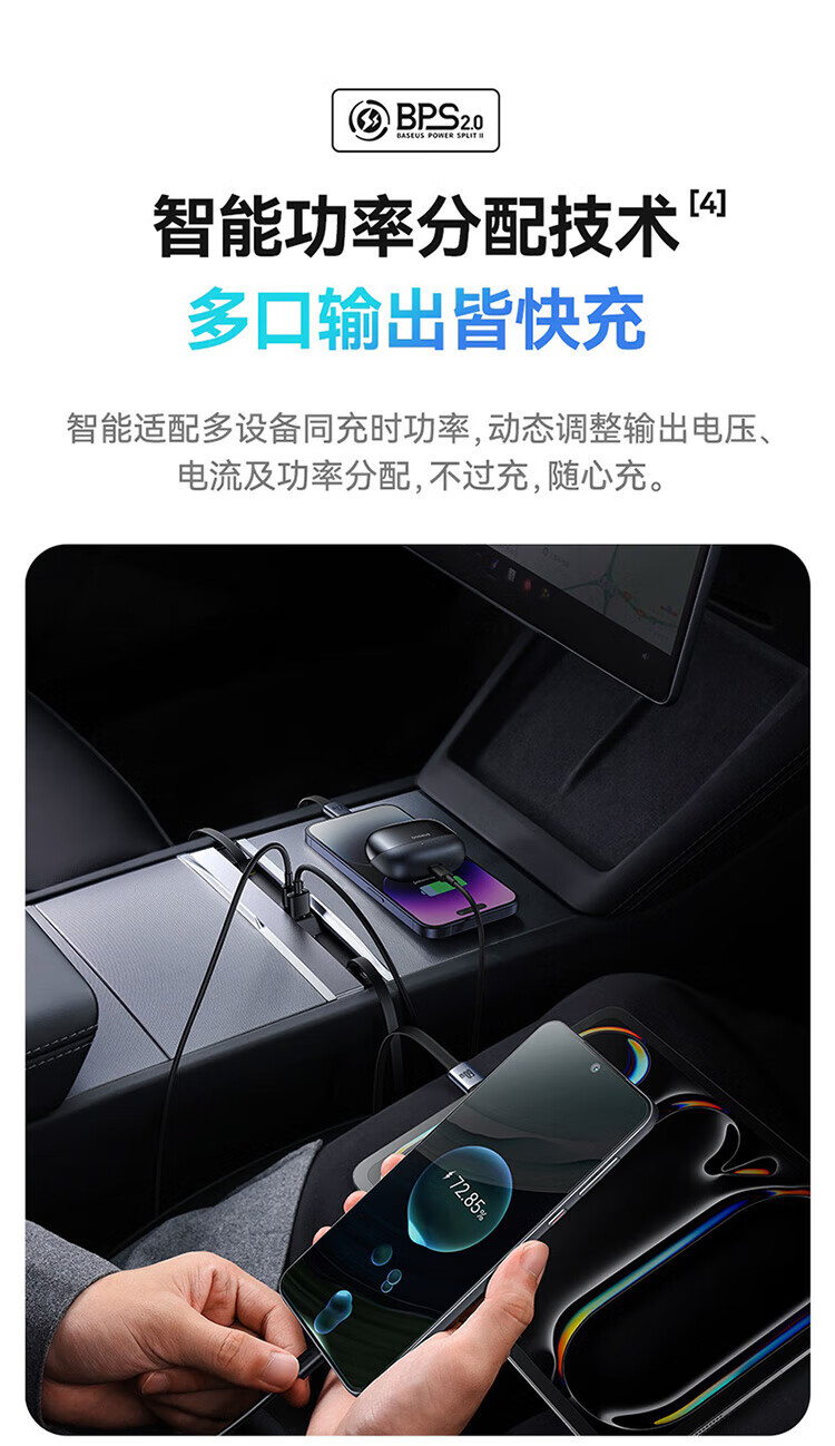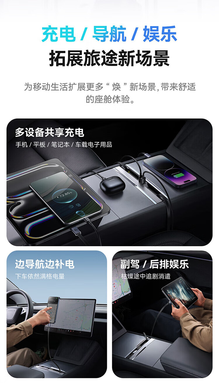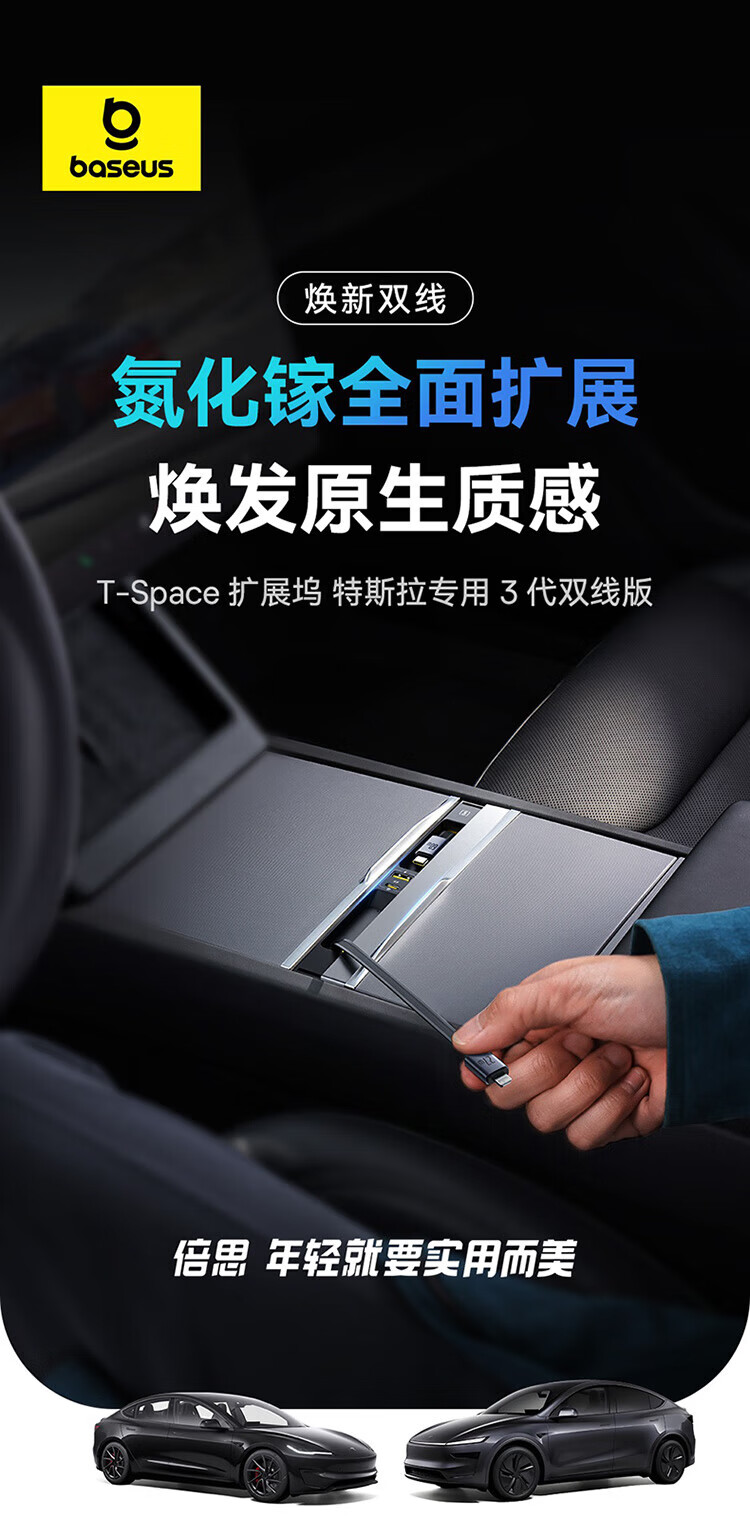 倍思特斯拉拓展坞车载充电器Hub氮化镓超级快充焕新版model Y/YL专用适用苹果16/17华为小米