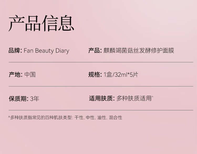 FAN BEAUTY DIARY麒麟竭菌菇丝发酵修护面膜保湿补水舒缓修护5片
