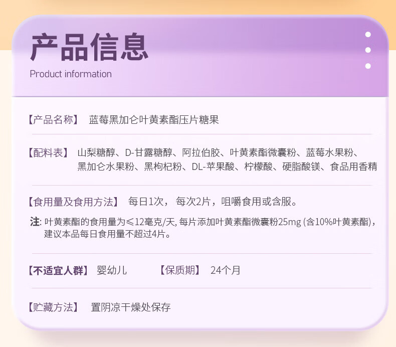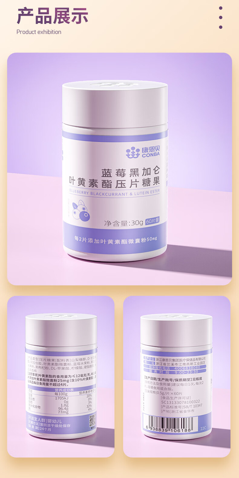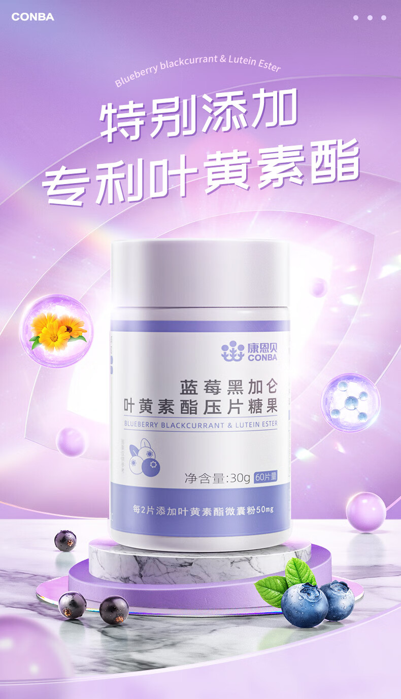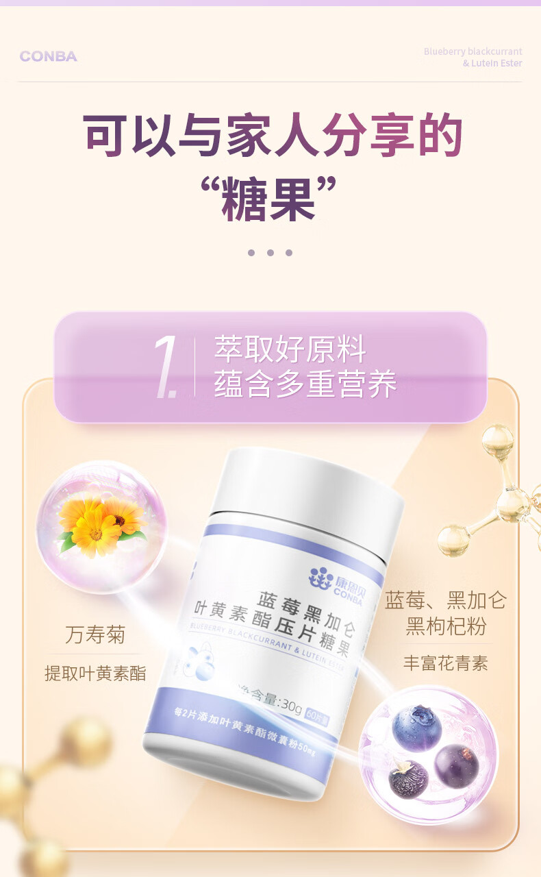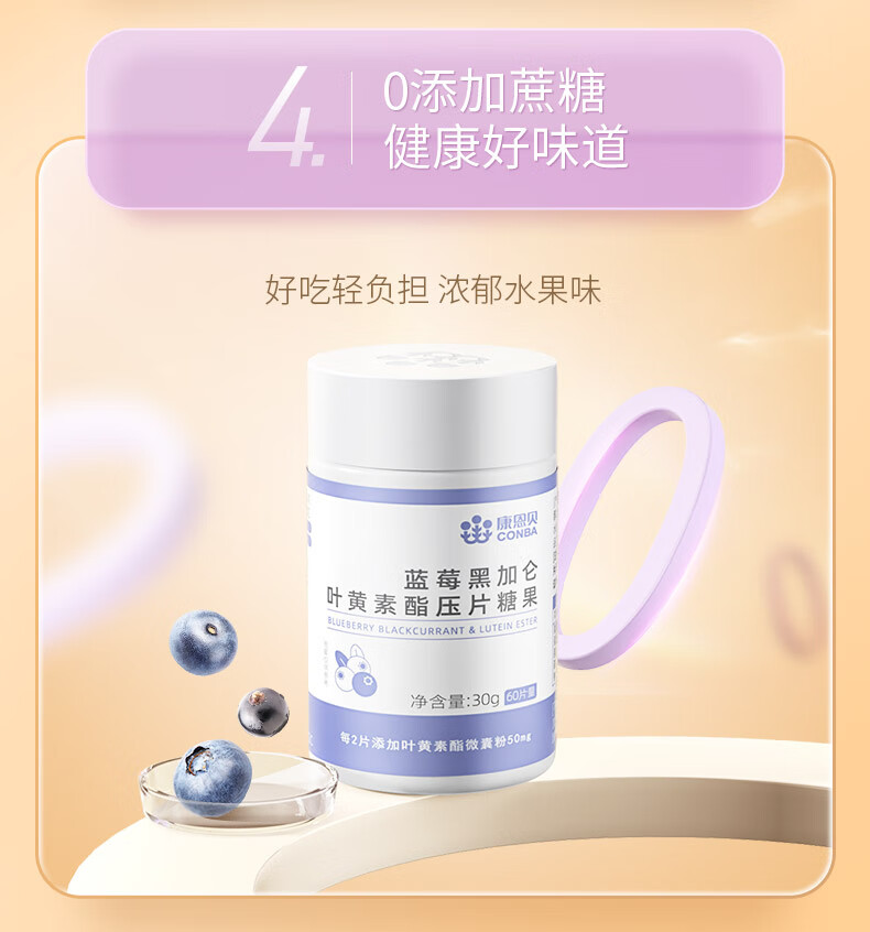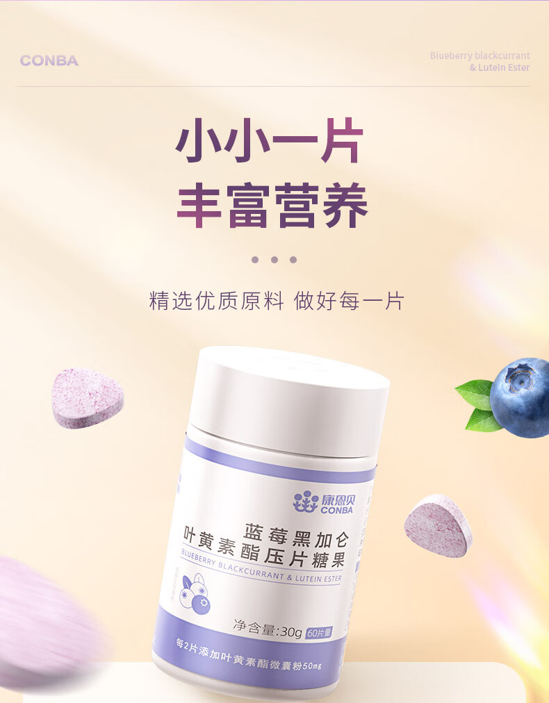 康恩贝蓝莓 叶黄素酯压片糖果 男女成人儿童青少年叶黄素酯0.5g/片*60片