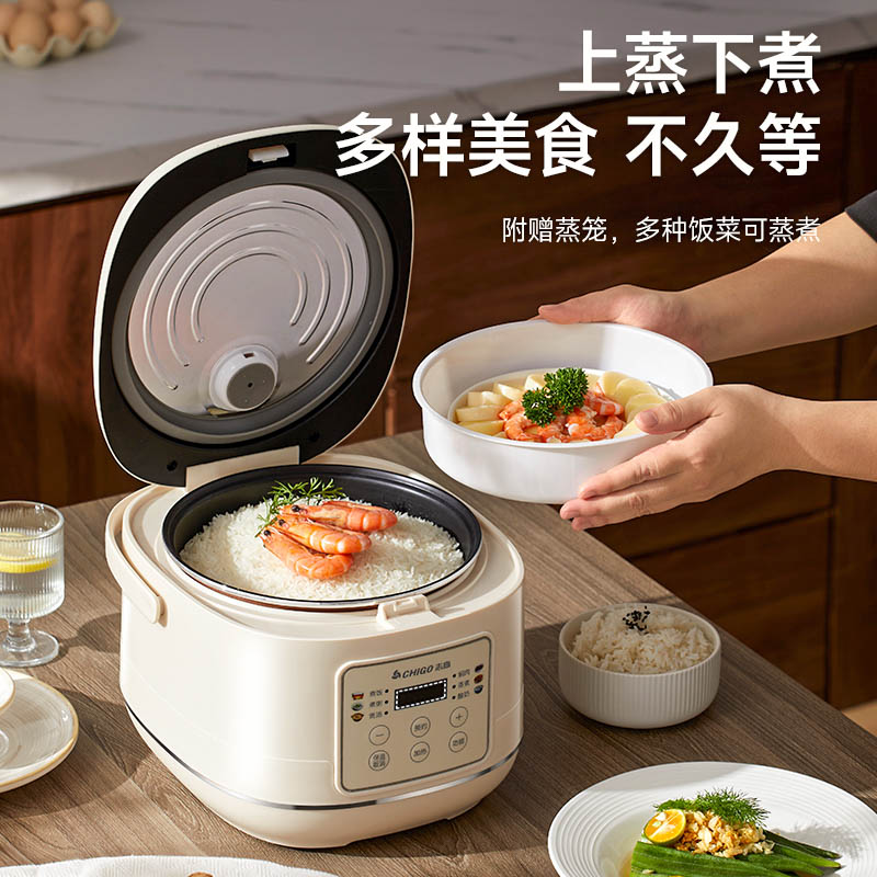一锅多用,简单、省时、方便!!2L黄金容量:2-4人家庭/宿舍党完美适配!还可以隔层使用,下煮上蒸两不误~一台【志高智能电饭煲】=煮锅+焖锅+蒸锅