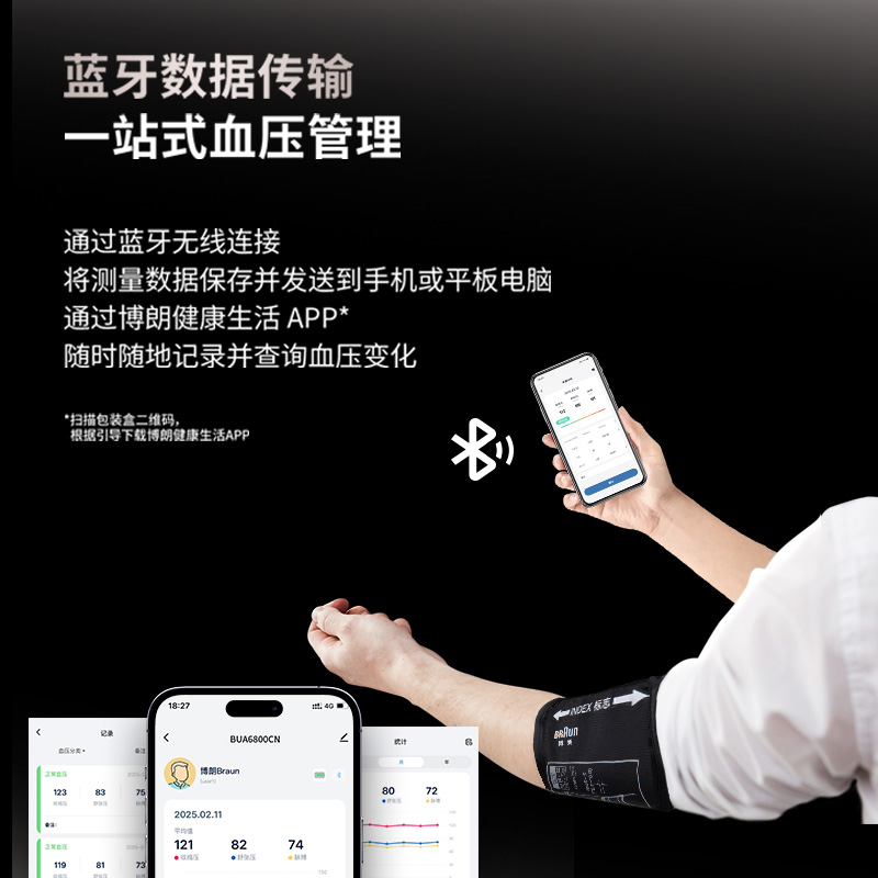 Braun博朗蓝牙电子血压计BUA6800BWCN臂式家用大屏测量仪