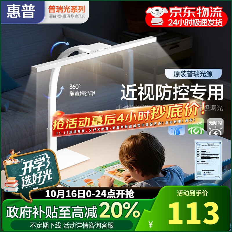 惠普台灯护眼学习灯专用国aa级学生专用防蓝光长条led两用触控阅读灯 60CM-普瑞光源-触控调光调色-定时提醒