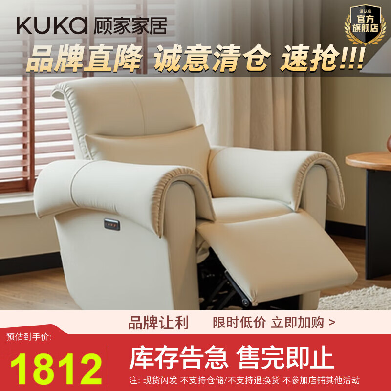 顾家家居现代真皮电动单椅多功能单人沙发/清仓不支持延期发货【达人】 【柔空白】1双电动带摇转