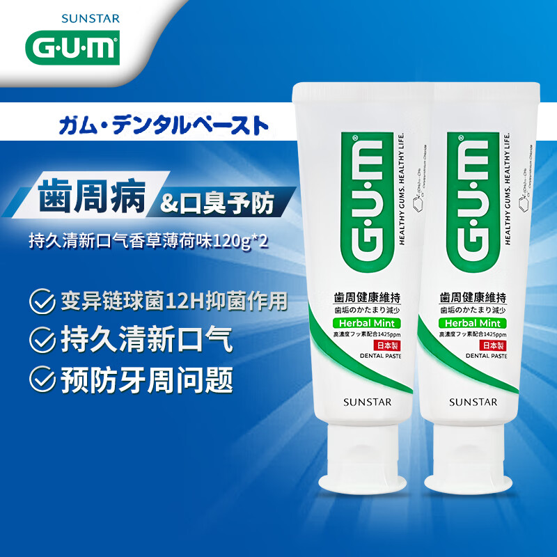 G·U·M康齿家减缓预防口臭牙膏采销优选 抑菌清新口气香草薄荷味2支240g