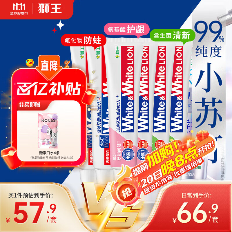 狮王(Lion)WhiteWhite牙膏美白护龈含氟套装120g*6抑菌去黄去牙渍自营