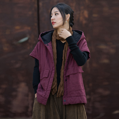 棉麻夹棉马甲女苎麻炒色做旧外套